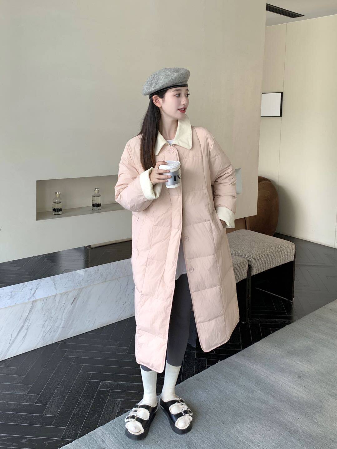 Зимний длинный вельветовый бархатный пуховик, 2023, средней длины, увеличенная толщина, в корейском стиле, свободный крой, утиный пух