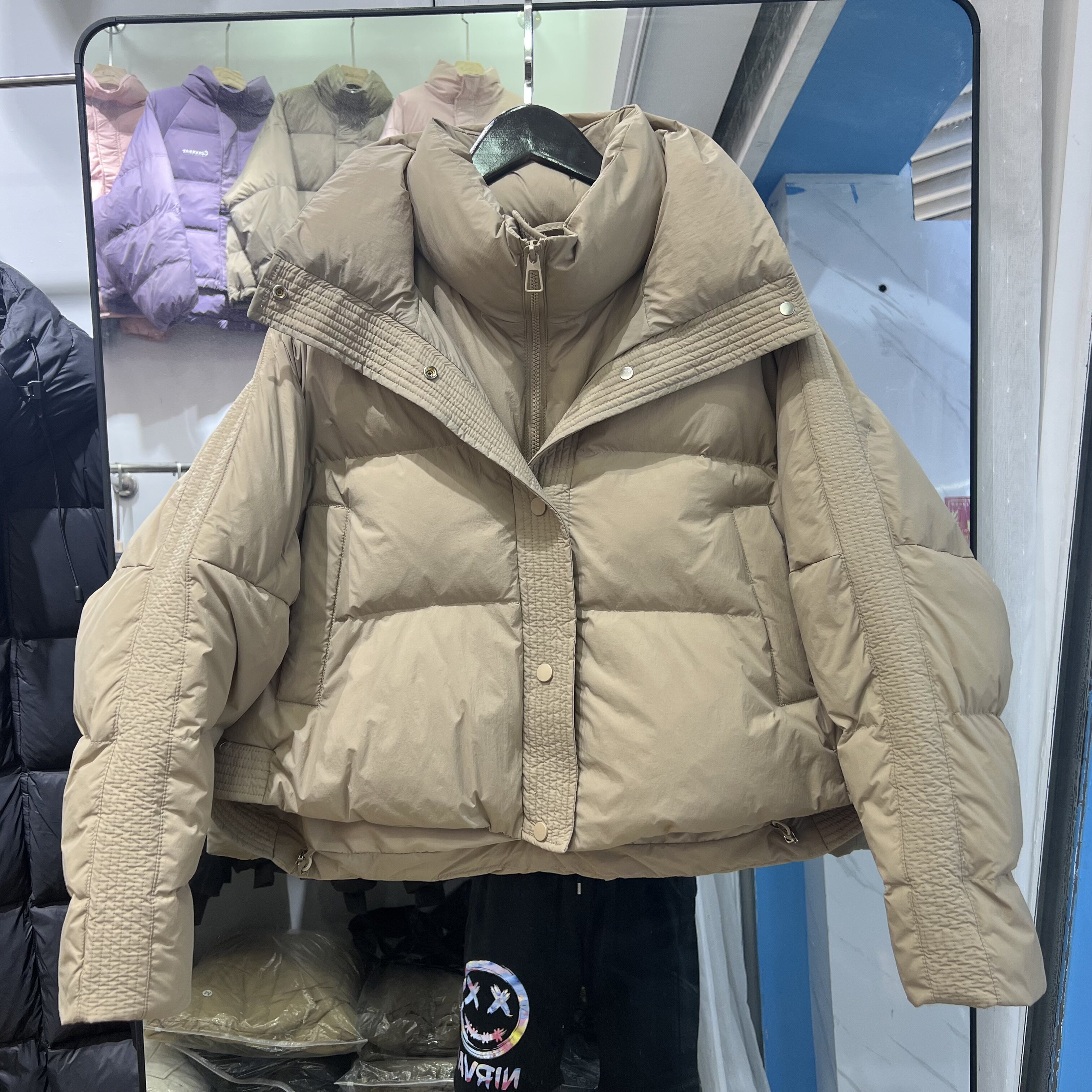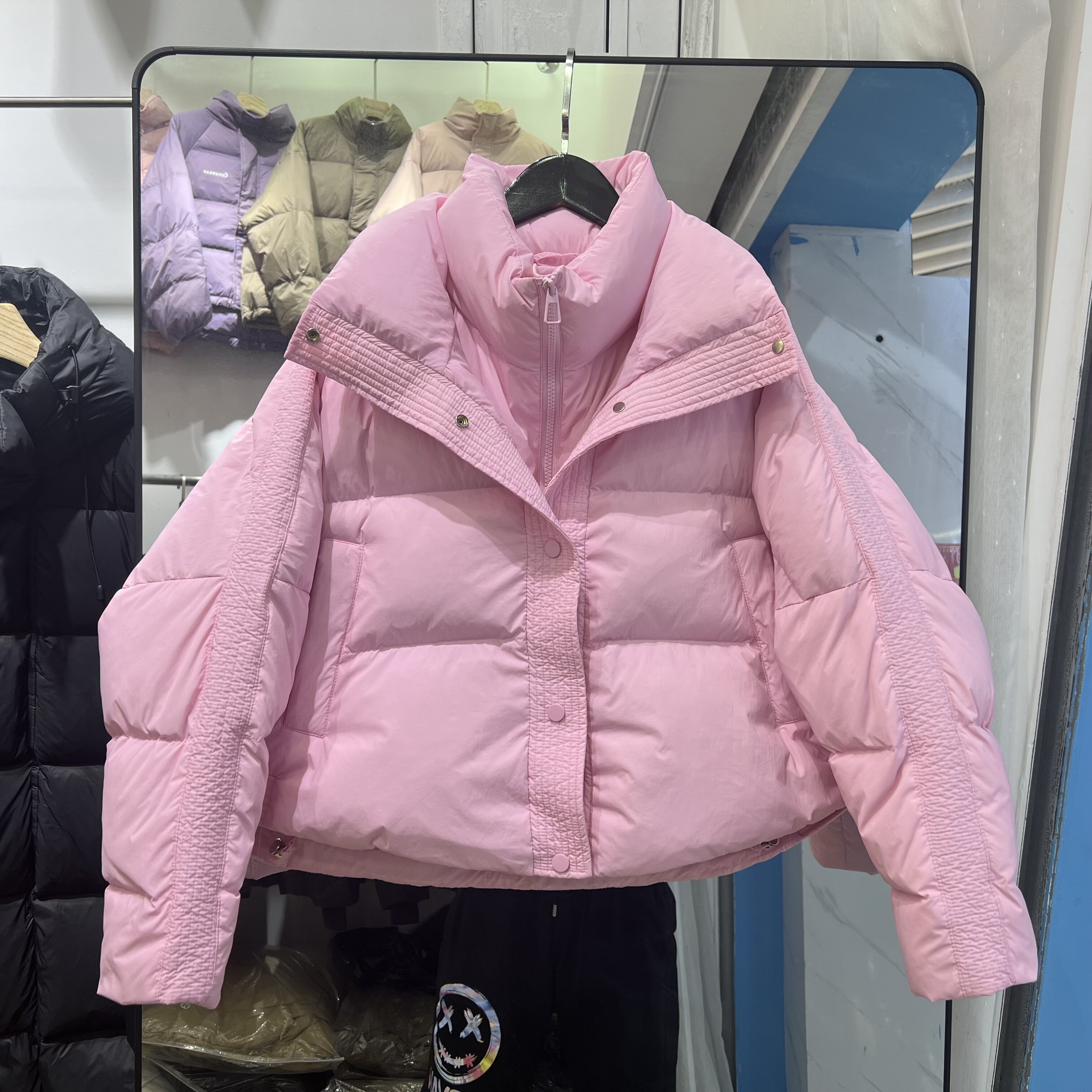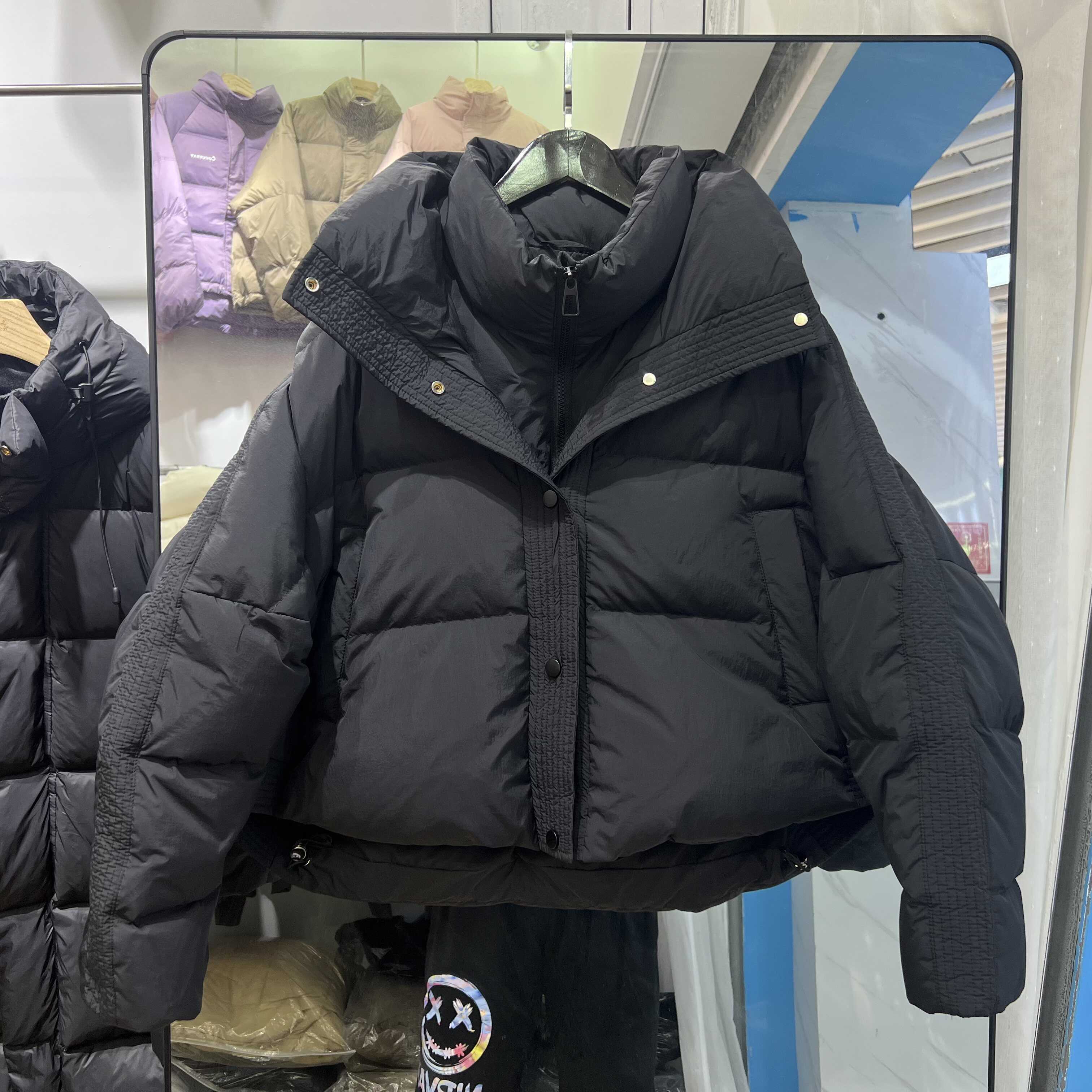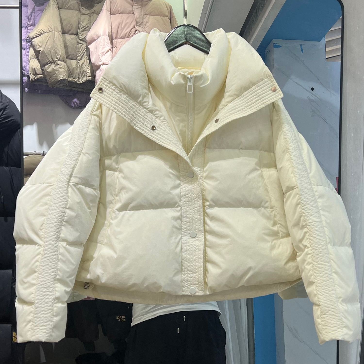 Зимний короткий пуховик, джинсы с начесом, бархатная куртка, утиный пух