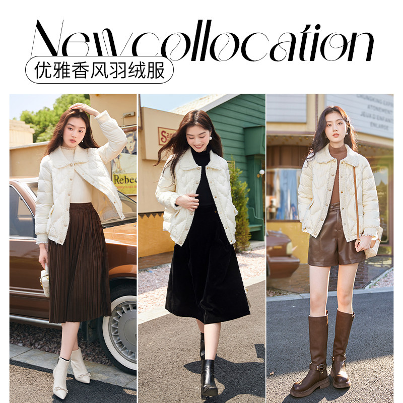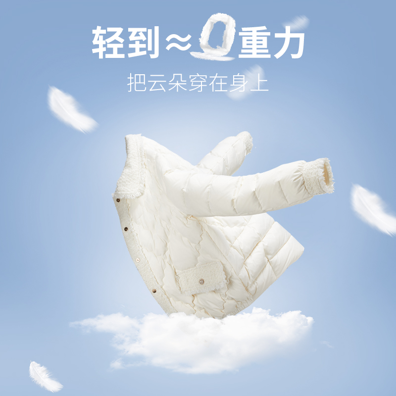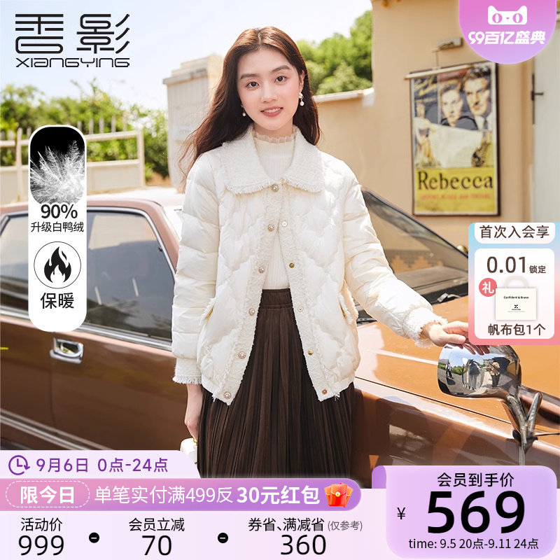 香影 Демисезонный пуховик, бархатная куртка, в стиле Шанель, утиный пух