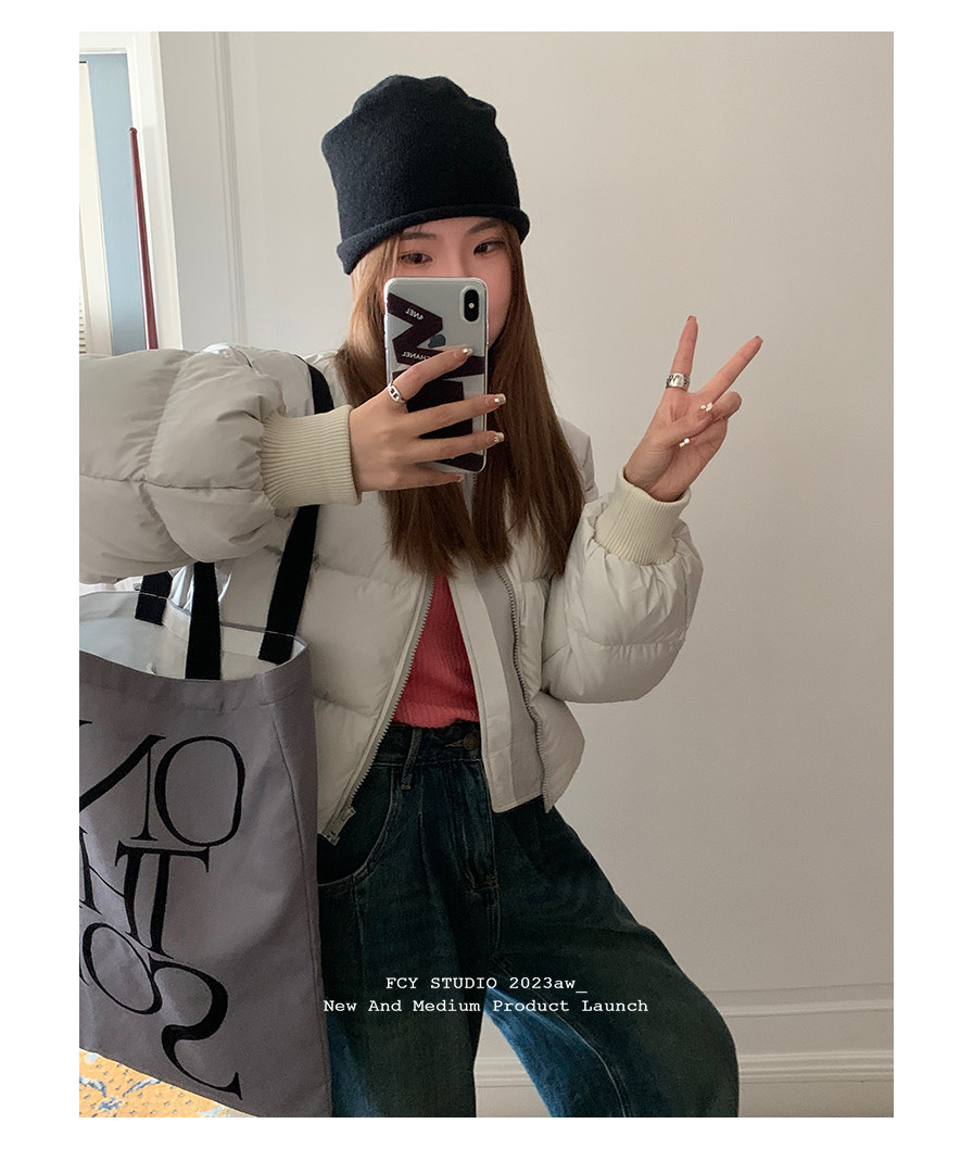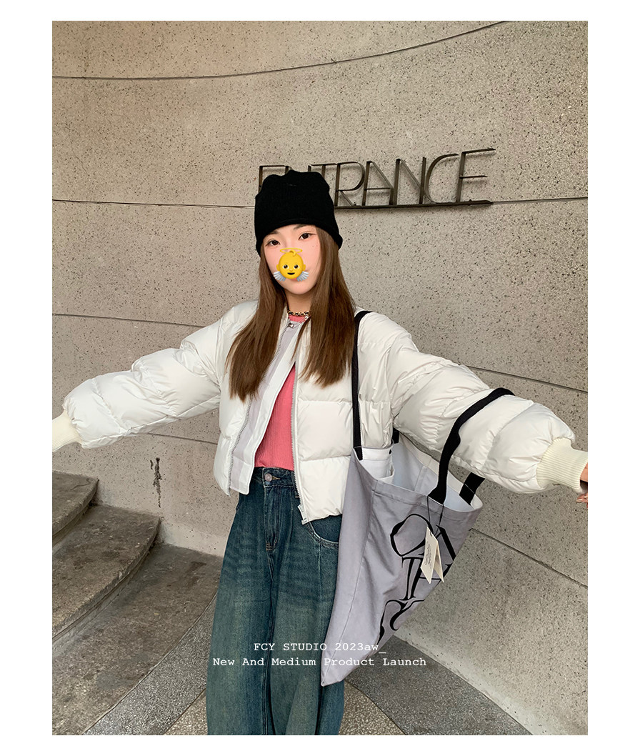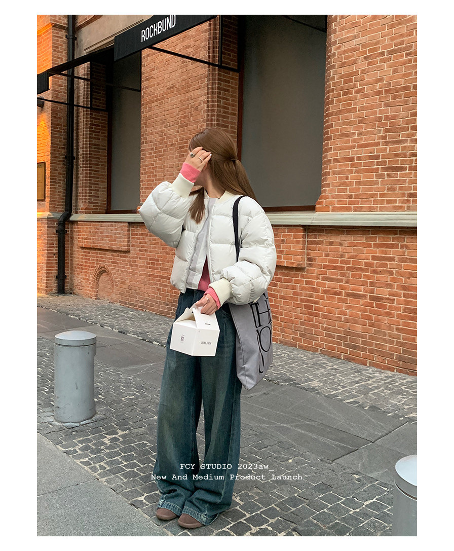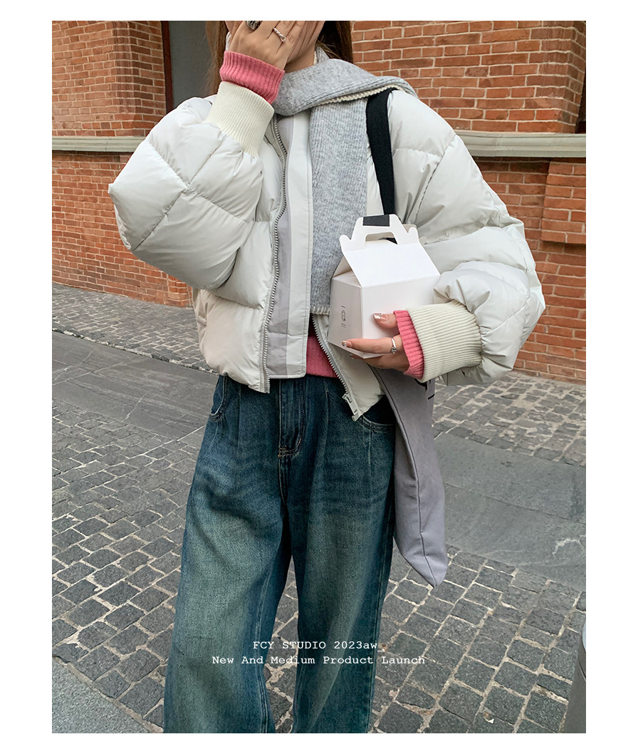 Fcy studio белый и серый короткий пуховик с бейсбольным воротником 2025 осень и зима свободная зимняя одежда k-типа