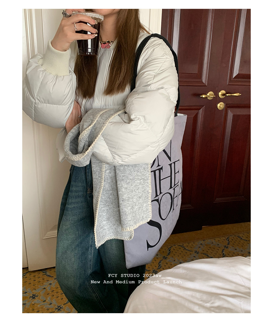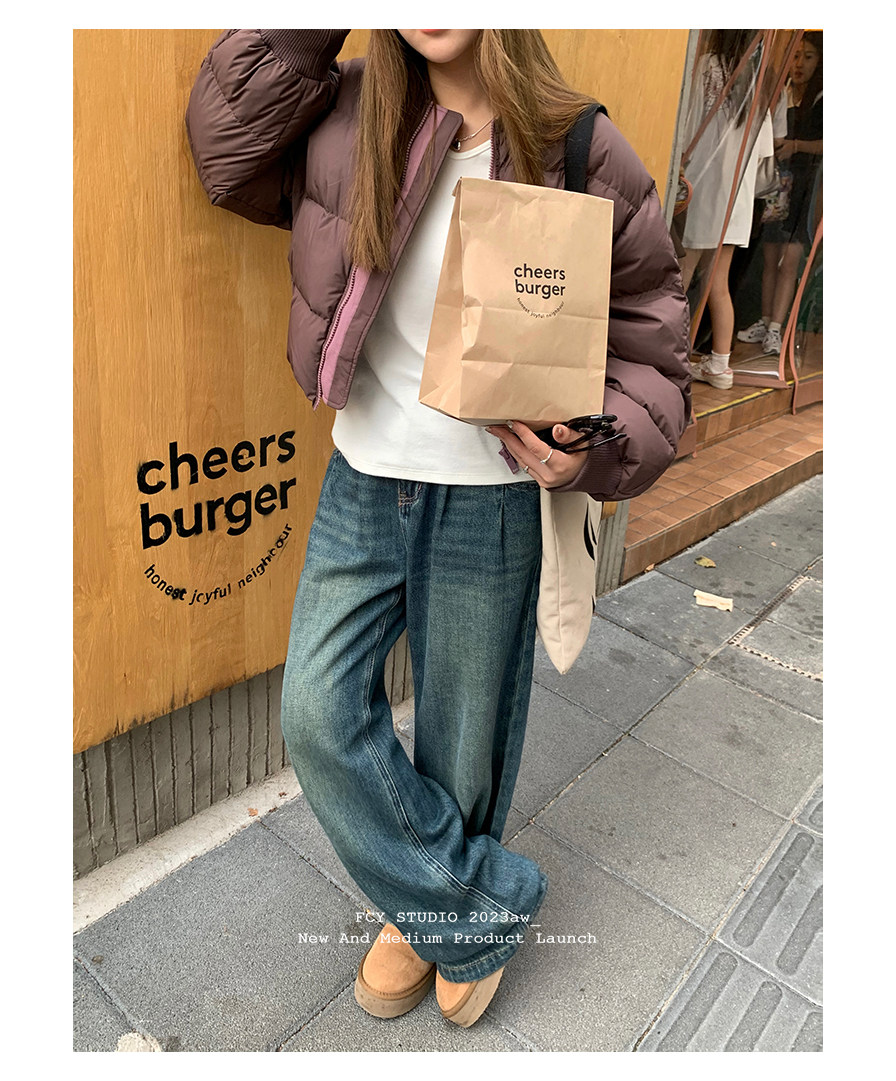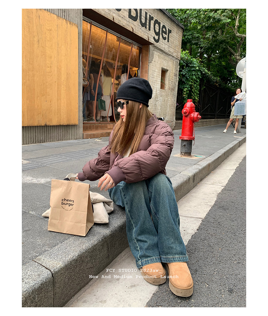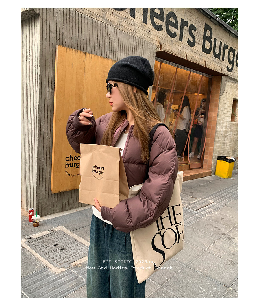 Fcy studio белый и серый короткий пуховик с бейсбольным воротником 2025 осень и зима свободная зимняя одежда k-типа