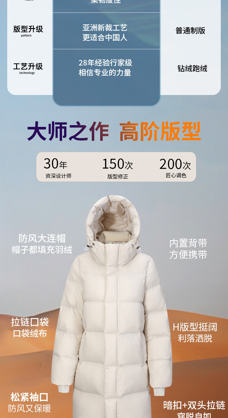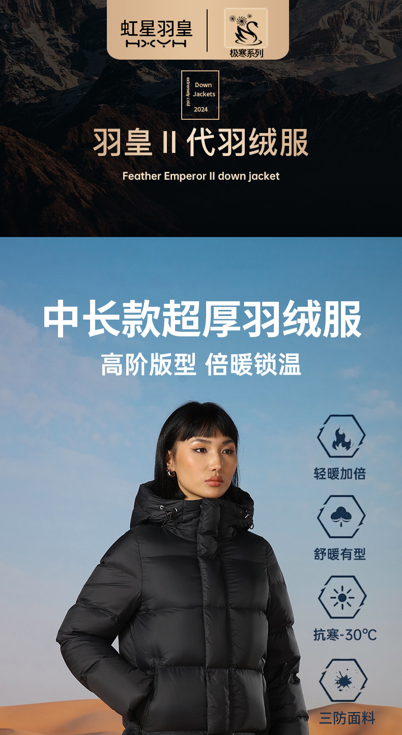 虹星羽皇 Зимний пуховик, средней длины, увеличенная толщина