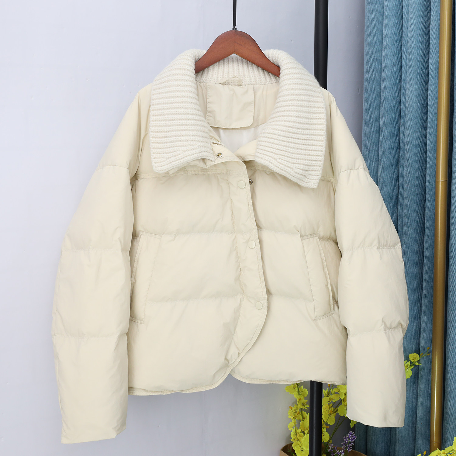 Трикотажный зимний пуховик, бархатная куртка для отдыха, 2023, в корейском стиле, оверсайз, свободный крой, утиный пух
