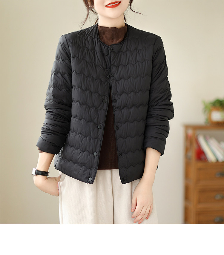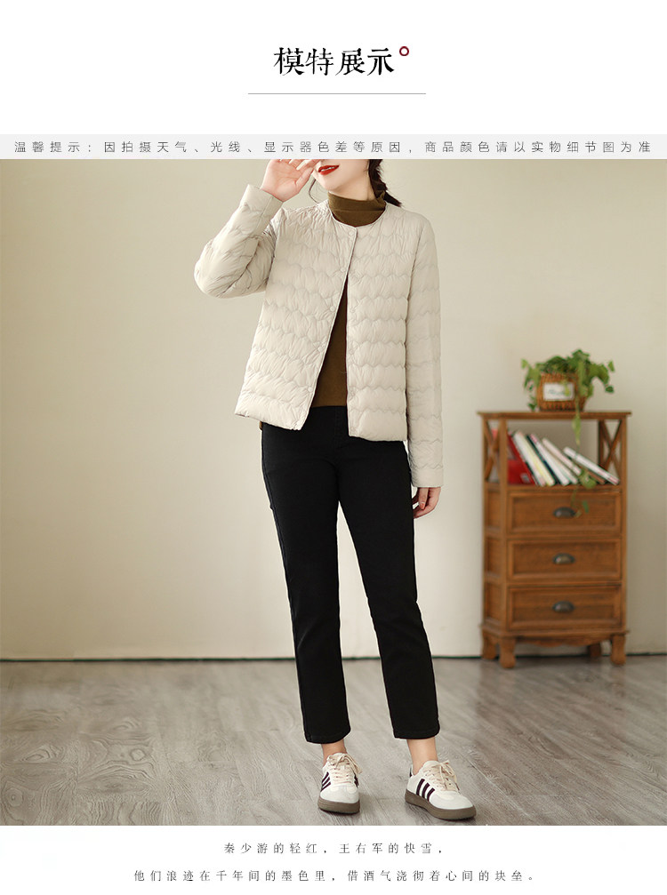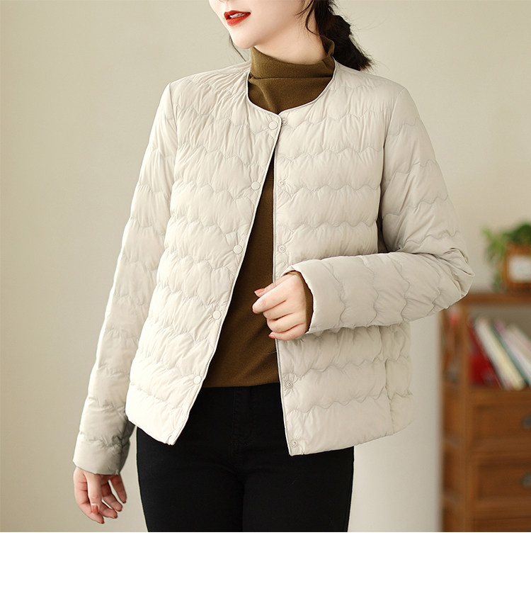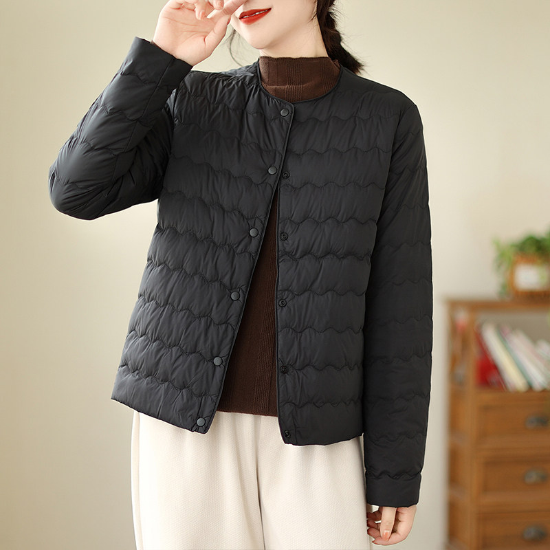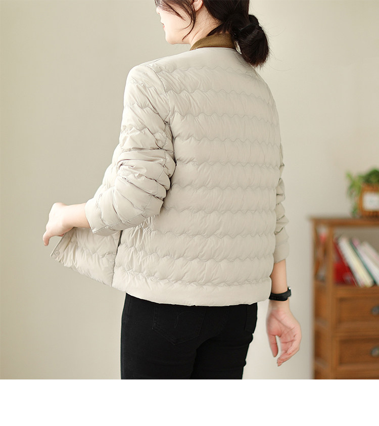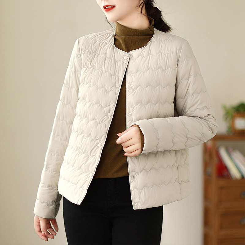 Демисезонный легкий и тонкий короткий пуховик с круглым воротником с пухом, стеганая куртка