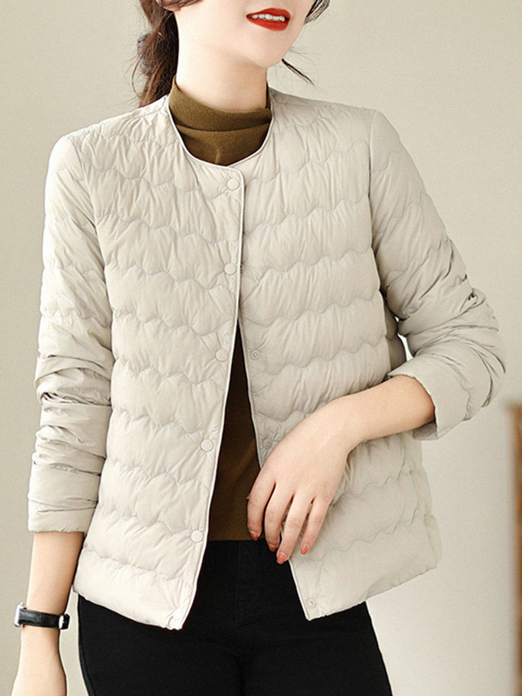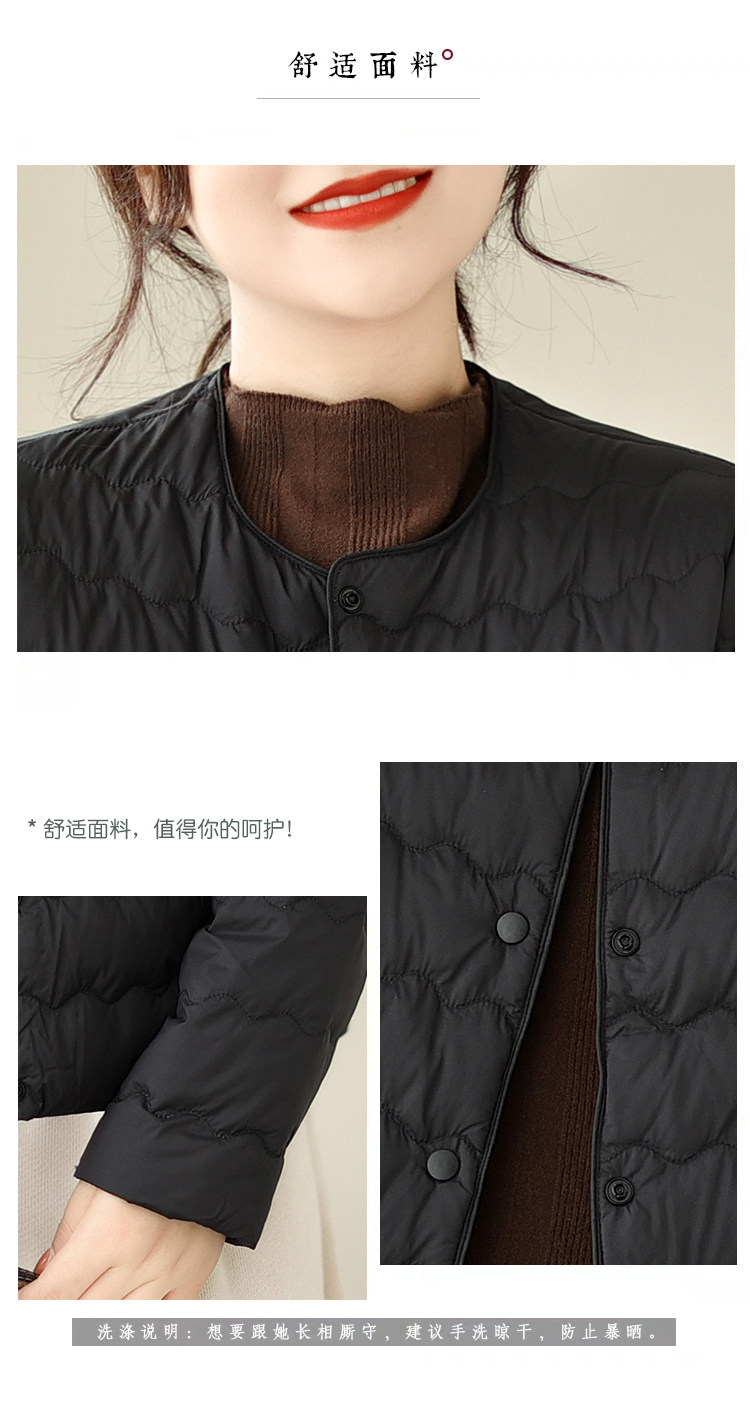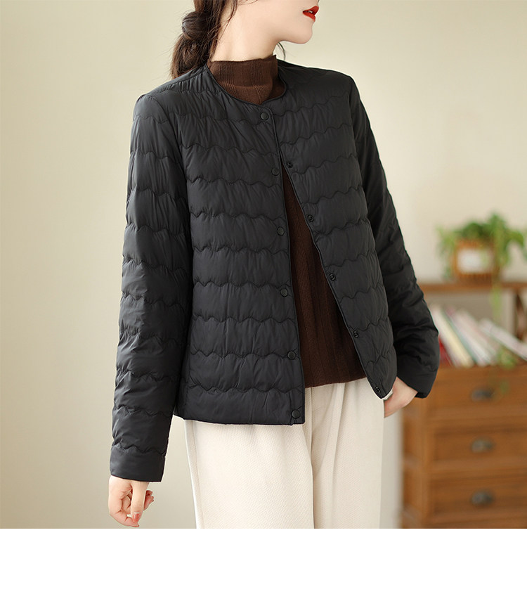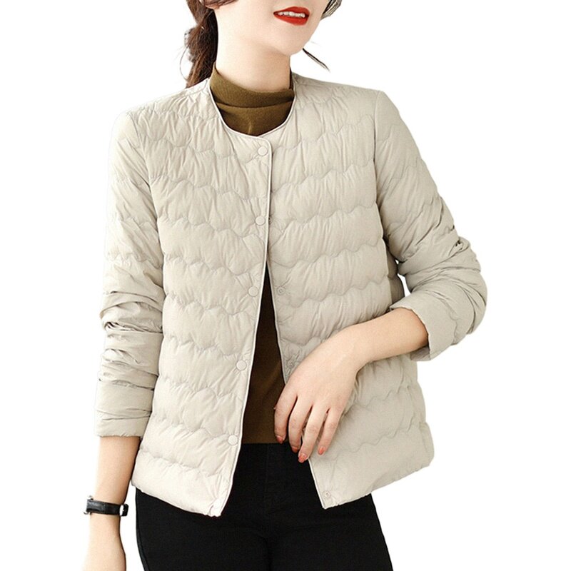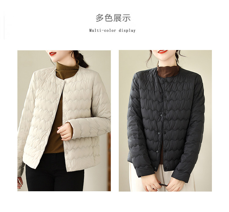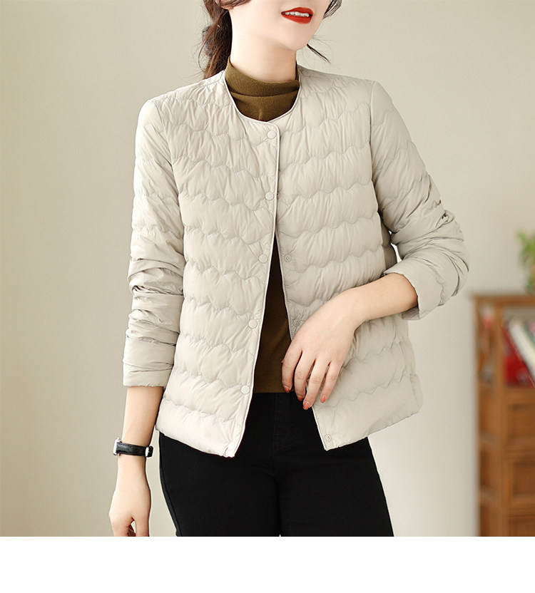 Демисезонный легкий и тонкий короткий пуховик с круглым воротником с пухом, стеганая куртка
