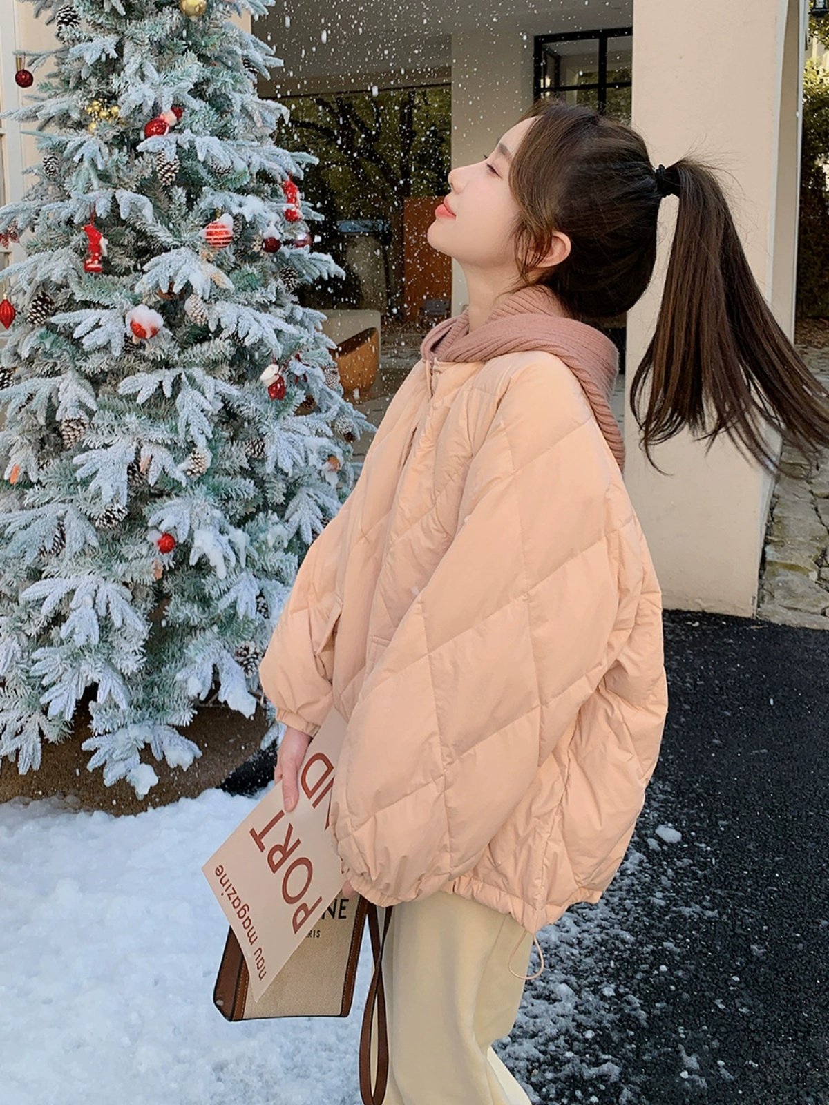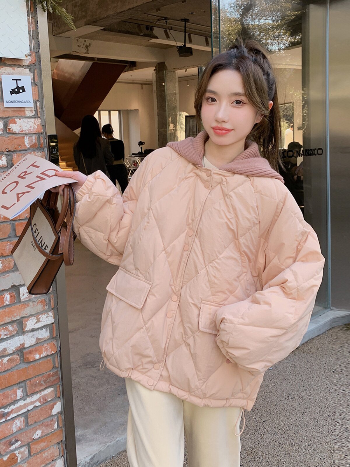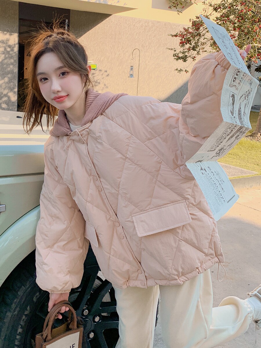 Розовый зимний пуховик с ромбовидным узором, милая куртка, подходит для подростков