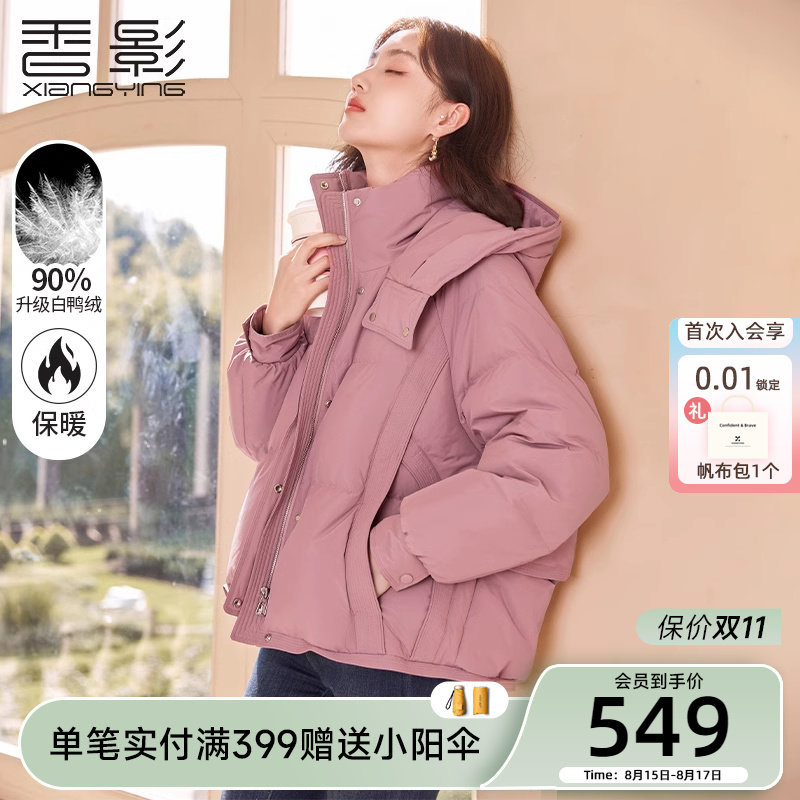 香影 Розовый зимний пуховик, бархатная куртка, подходит для подростков, белая одежда, утиный пух