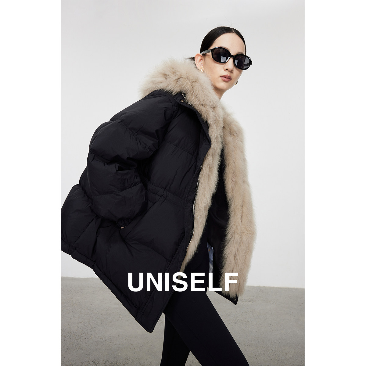 Легкий роскошный и модный женский пуховик UNISELF с большим меховым воротником, новинка 2024 года, зимняя универсальная шуба из лисьего меха