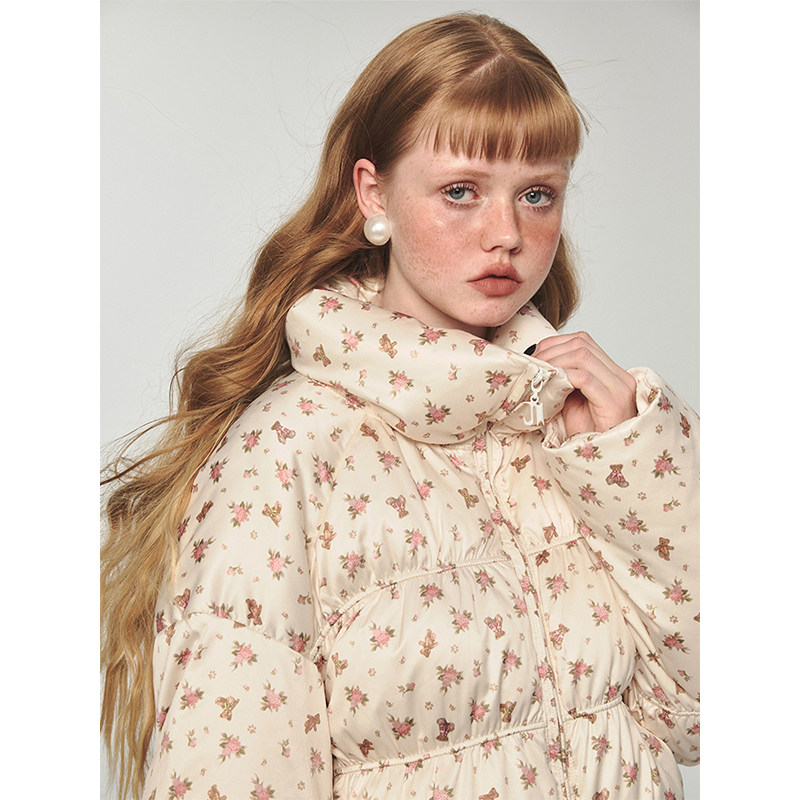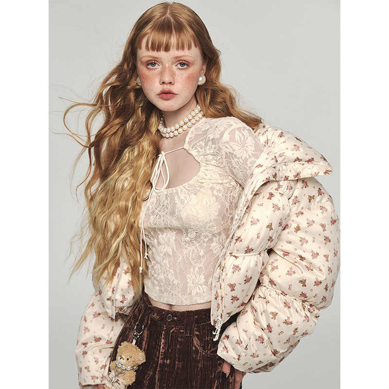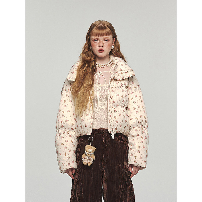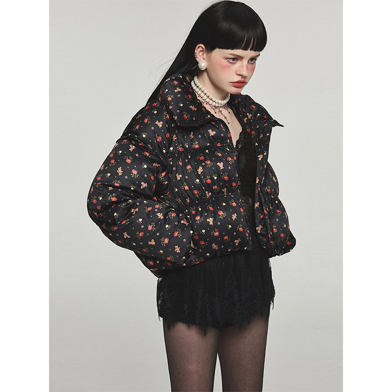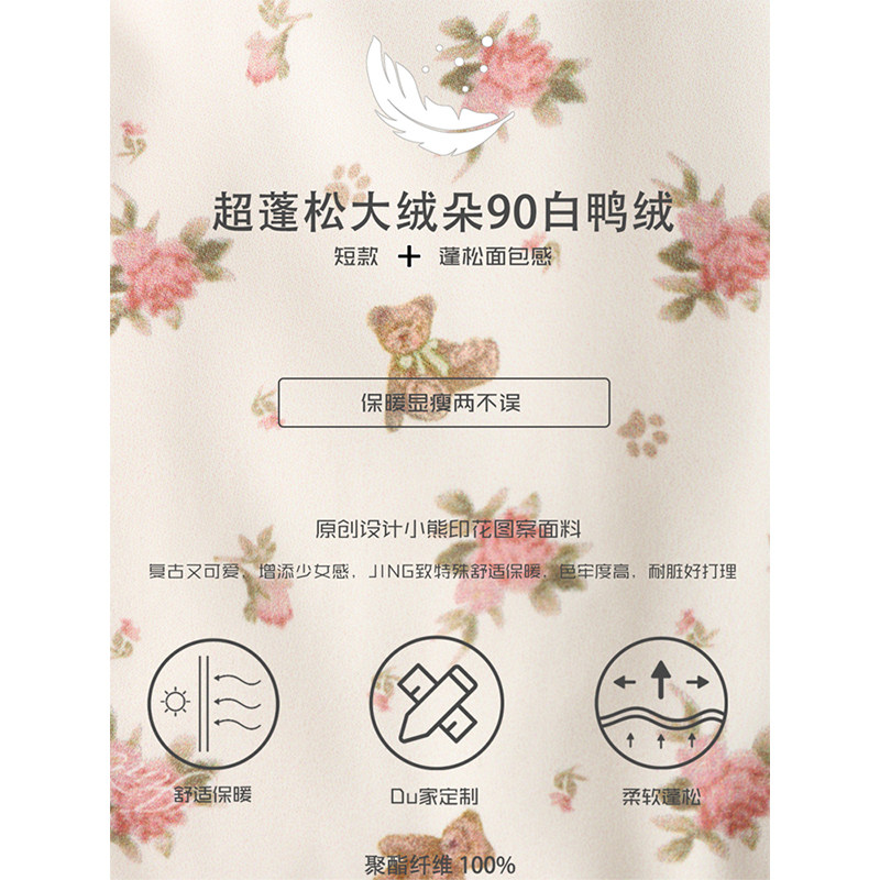Удерживающая тепло портупея, бархатный короткий пуховик, куртка, утиный пух, цветочный принт