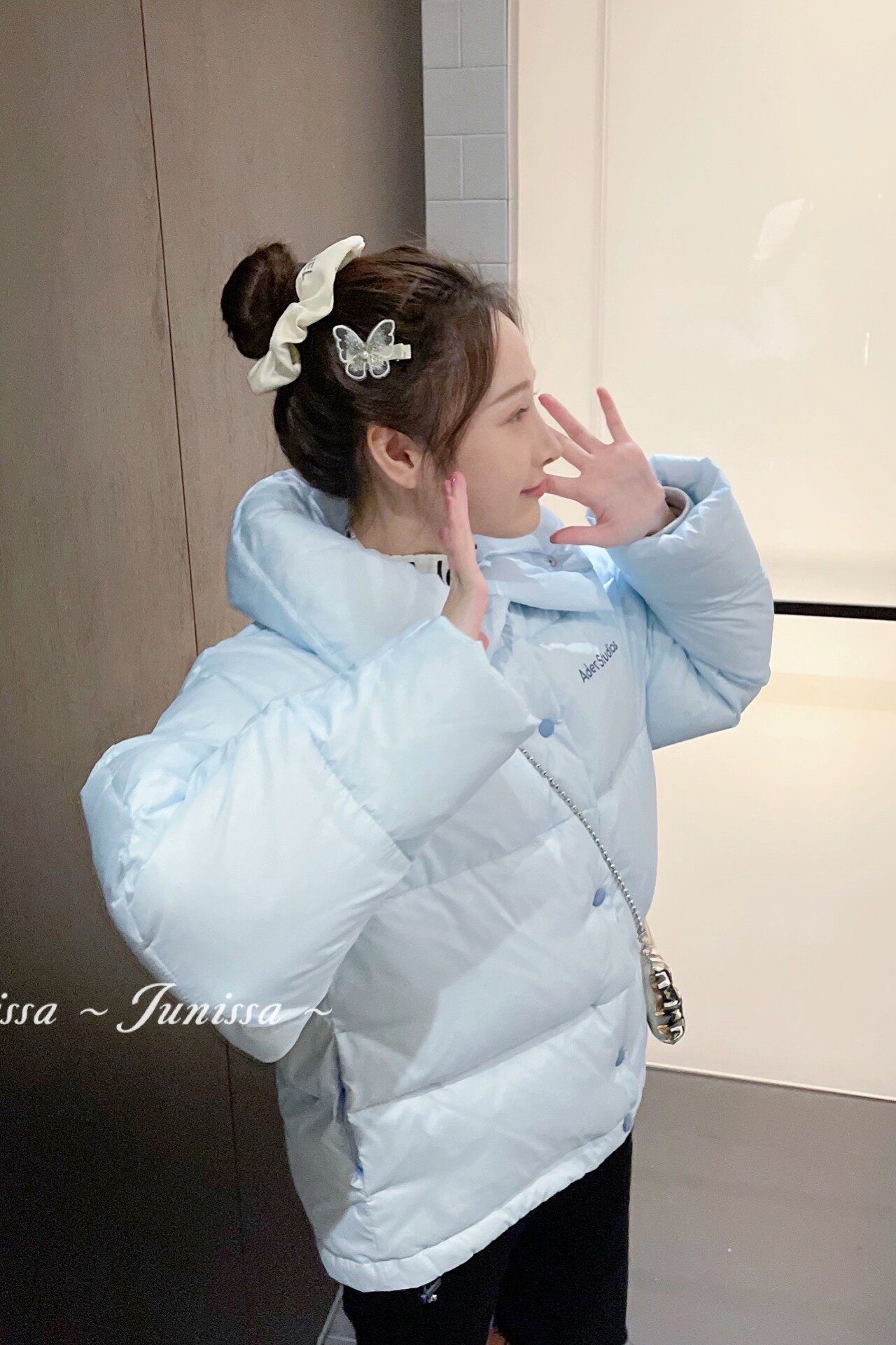 Цвет кнопок выбран из конфет синего цвета глубже, чем куртка, чтобы добавить девчачьего смысла