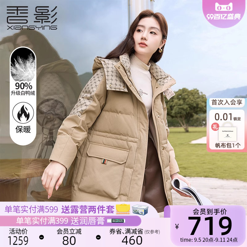 香影 Модный пуховик, бархатная куртка, городской стиль, утиный пух, длина миди