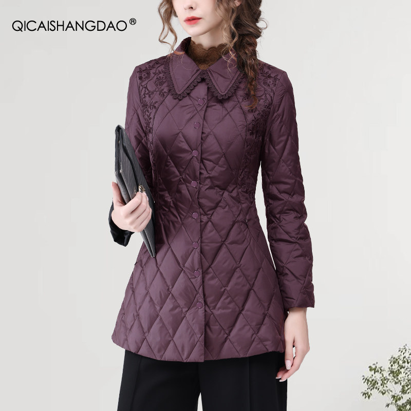 Зимний пуховик, приталенный бархатный корсет, удерживающая тепло куртка, китайский стиль, изысканный стиль, утиный пух, длина миди