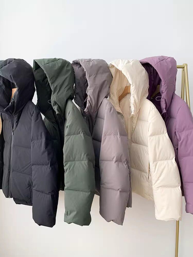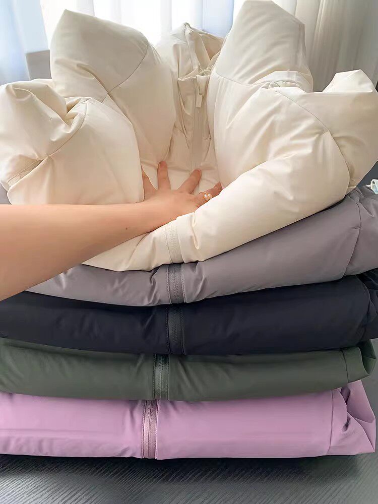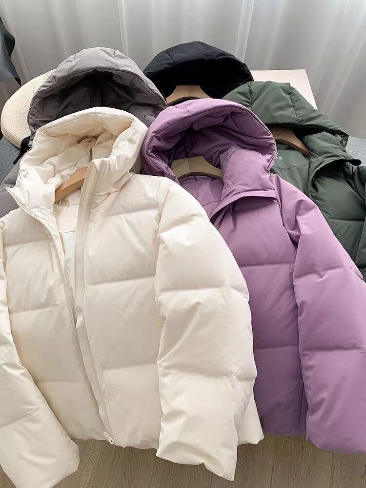 Японский бархатный зимний модный однотонный пуховик, куртка, утиный пух, 2023, свободный крой