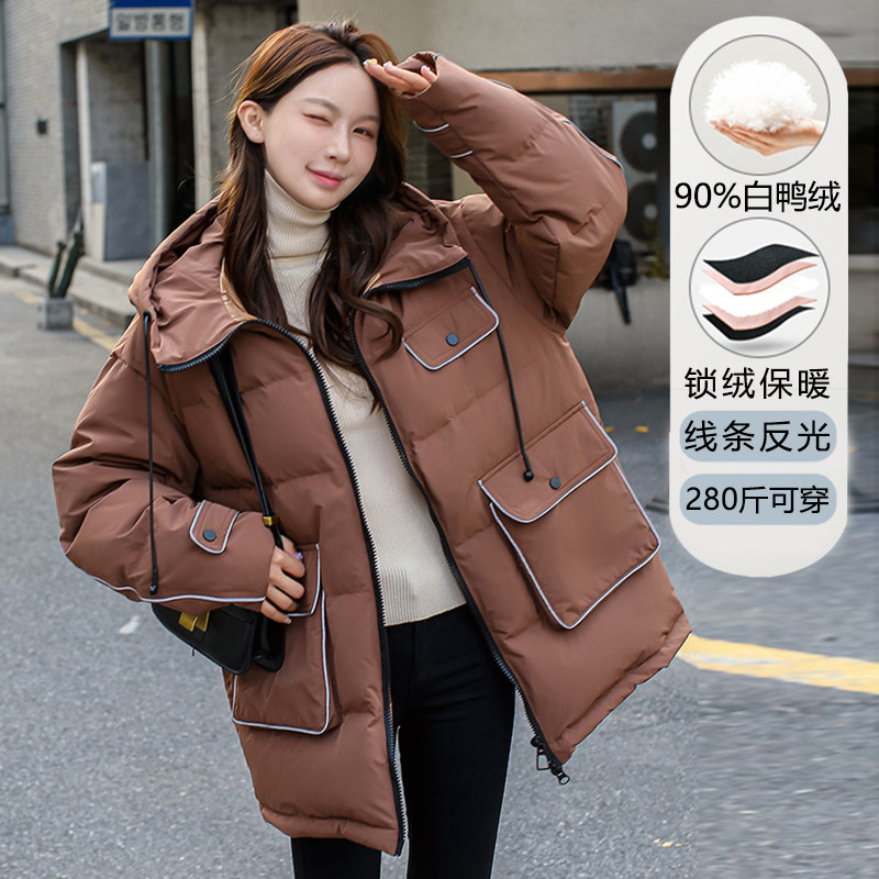 Очень большой бархатный пуховик, светоотражающая куртка, большой размер, утиный пух, свободный крой