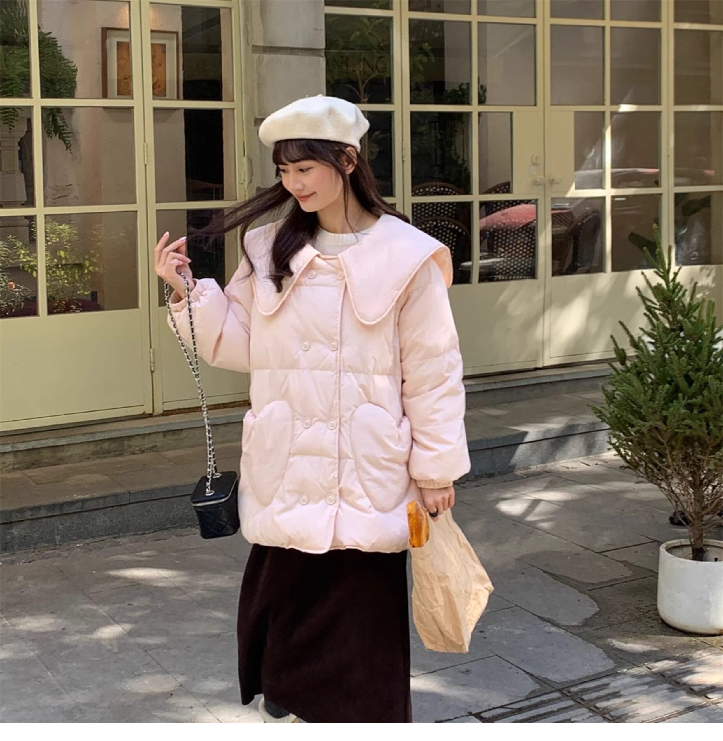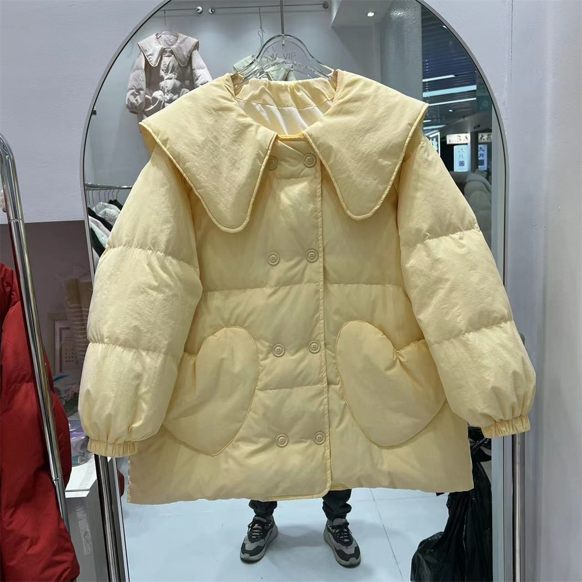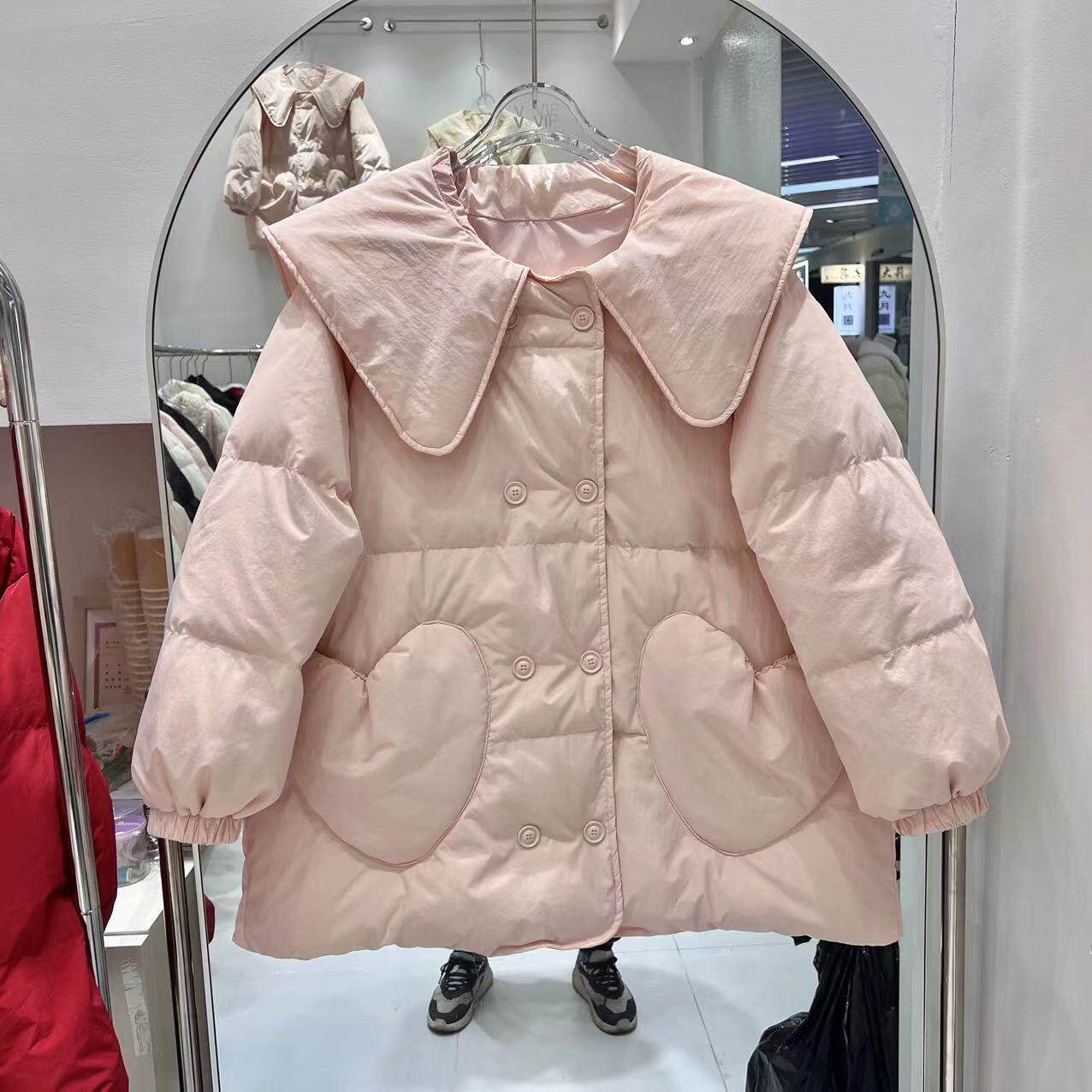 Зимний пуховик, двухрядная кукла, бархатная куртка, средней длины, кукольный воротник, в корейском стиле, утиный пух