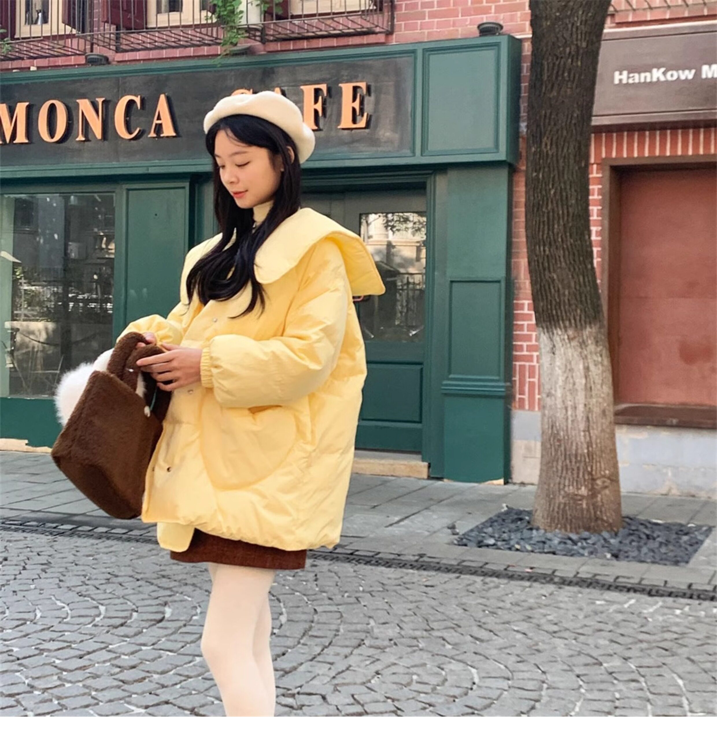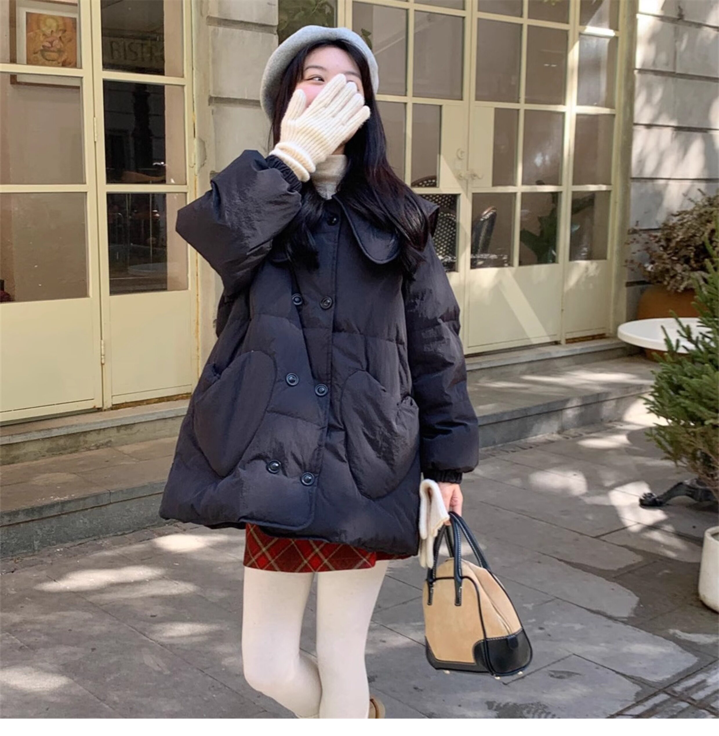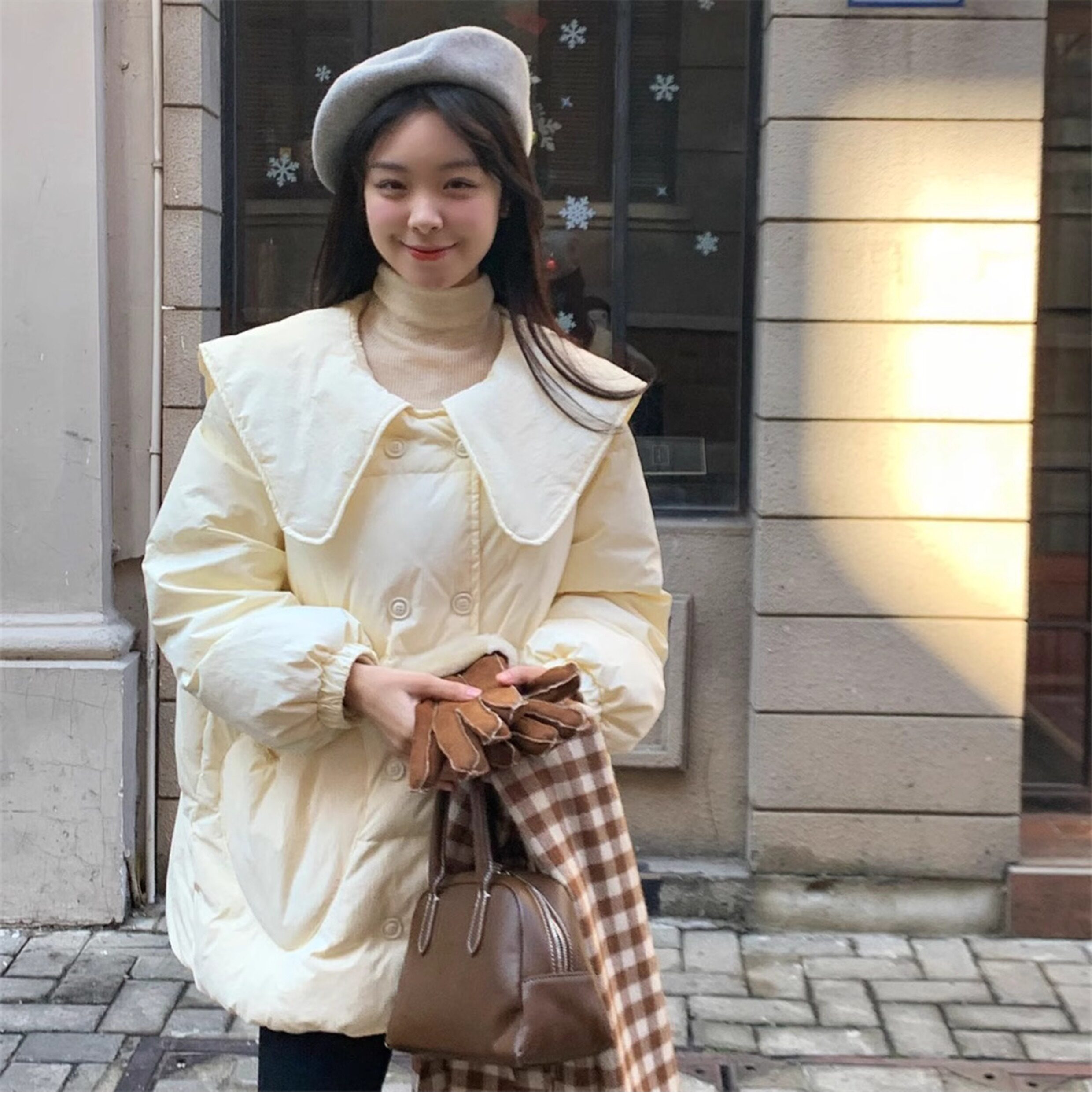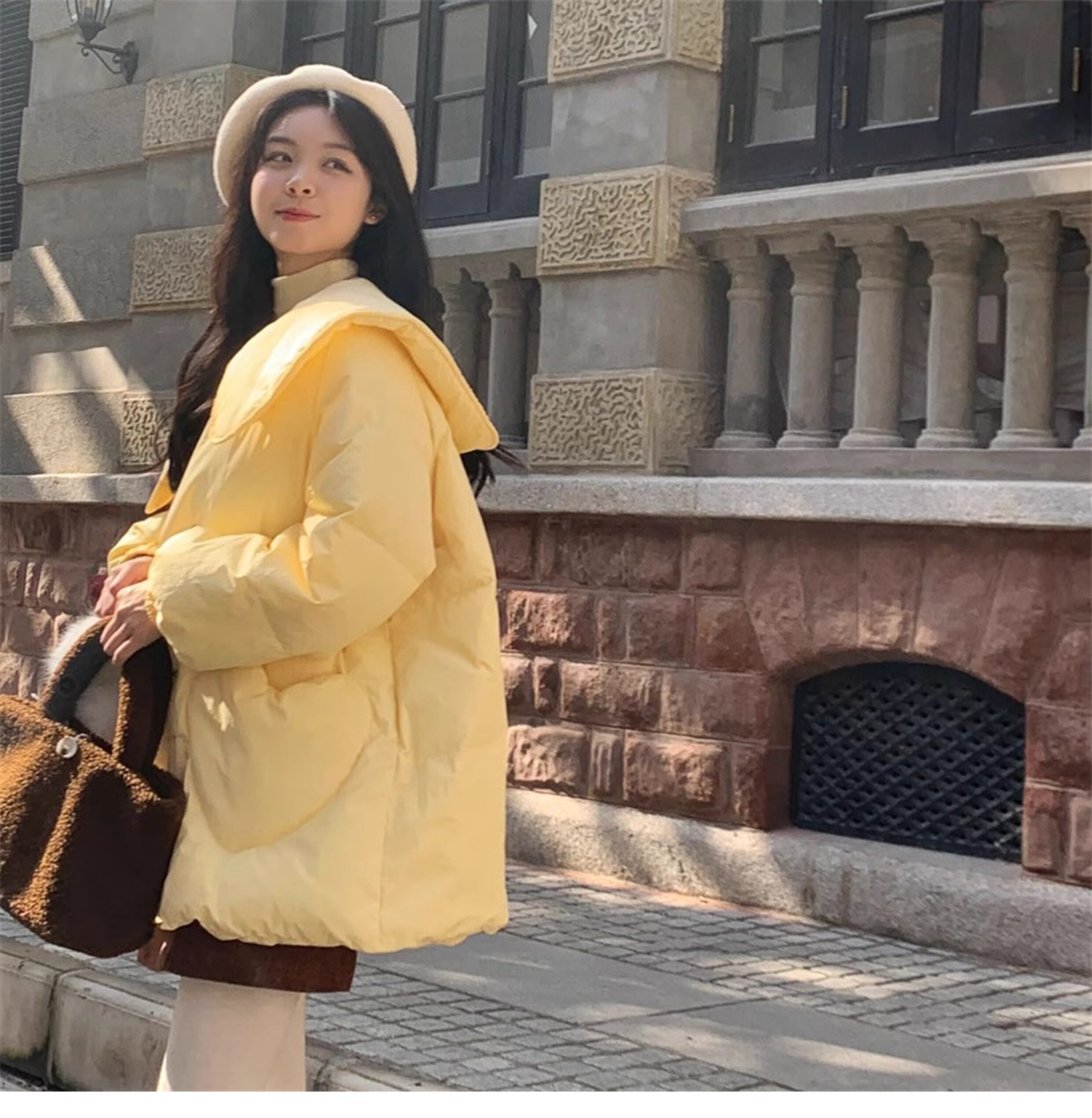 Зимний пуховик, двухрядная кукла, бархатная куртка, средней длины, кукольный воротник, в корейском стиле, утиный пух