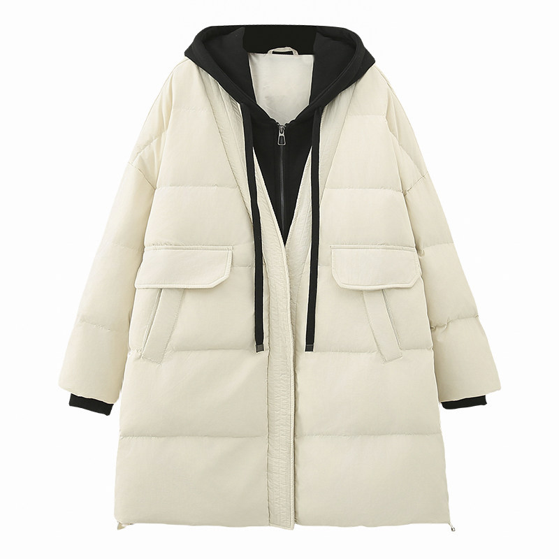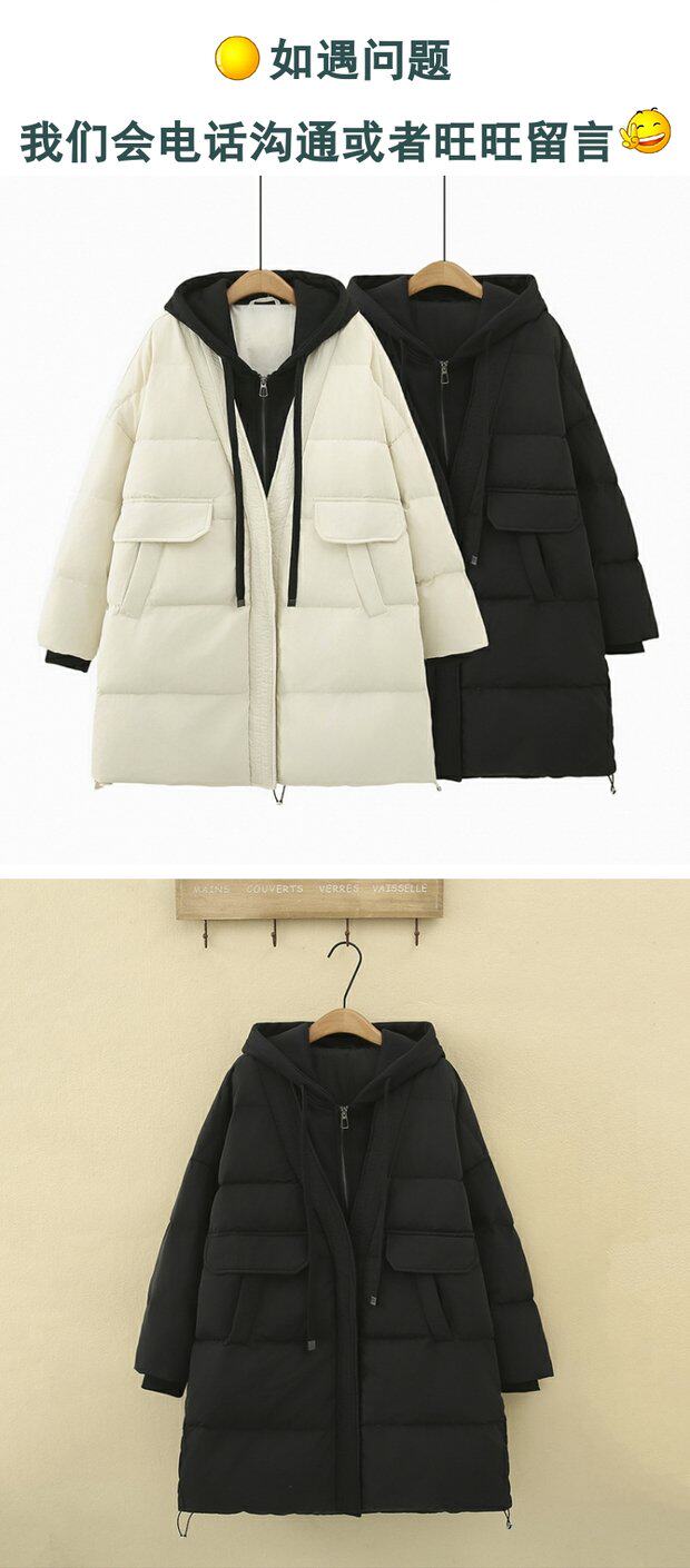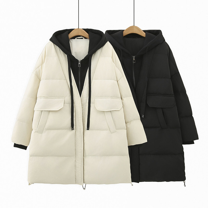Комплект, длинный пуховик, толстовка с капюшоном, куртка, большой размер, средней длины, подходит для полных девушек