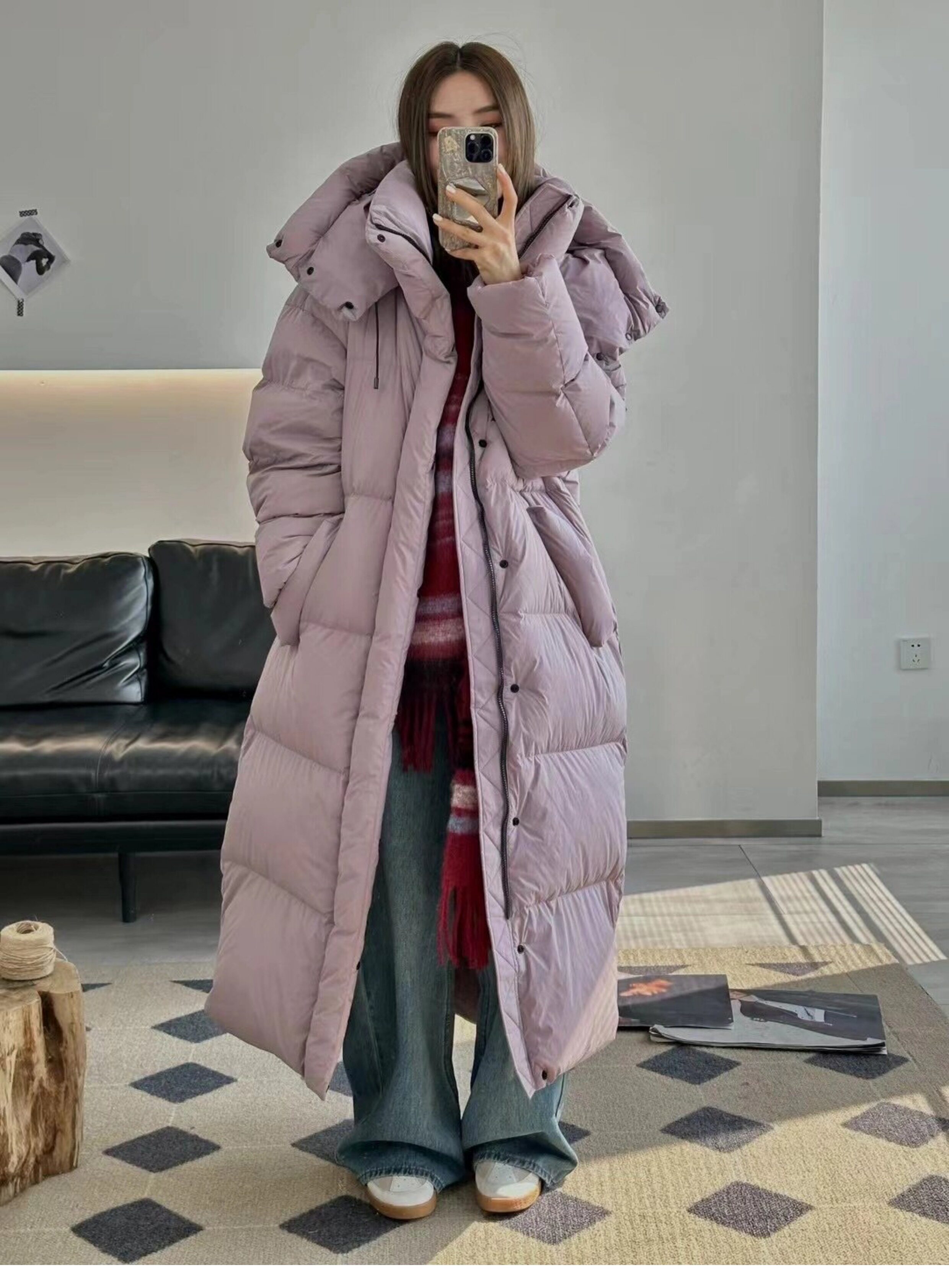 Пуховик, демисезонные джинсы с начесом, бархатное одеяло, куртка, коллекция 2023, оверсайз, утиный пух