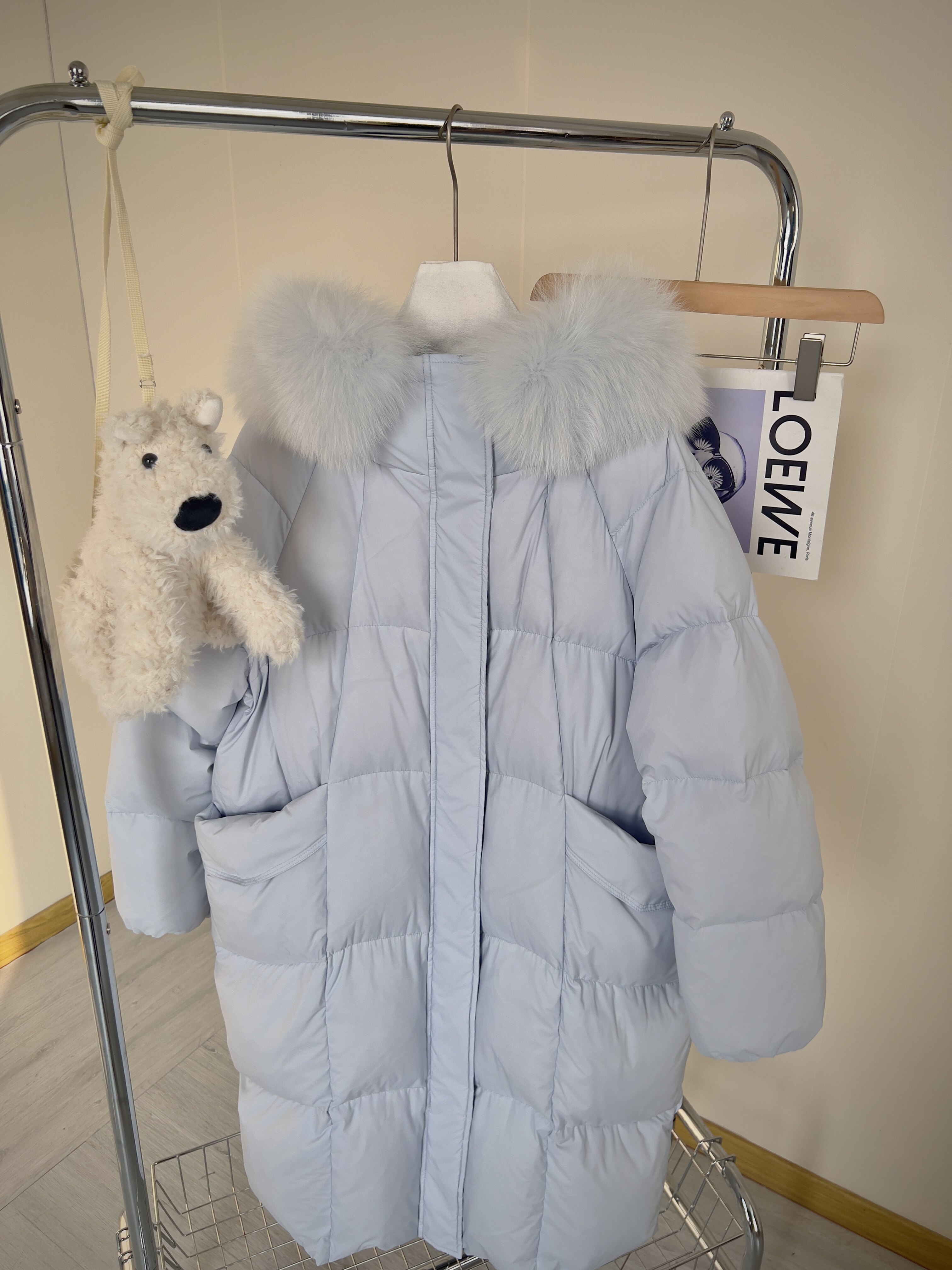 | Цвет: | Нежно-голубой + синий меховой воротник, Белый |
