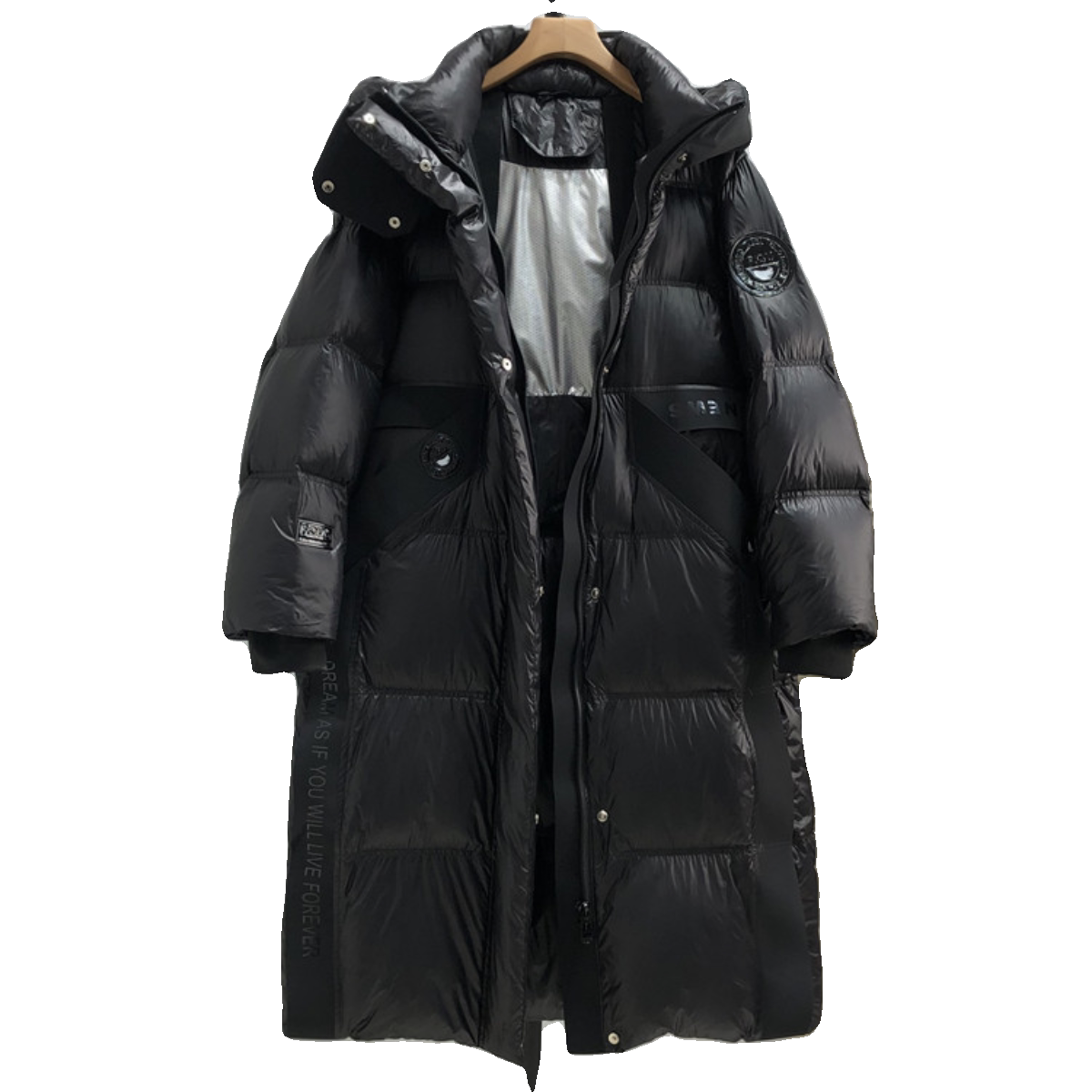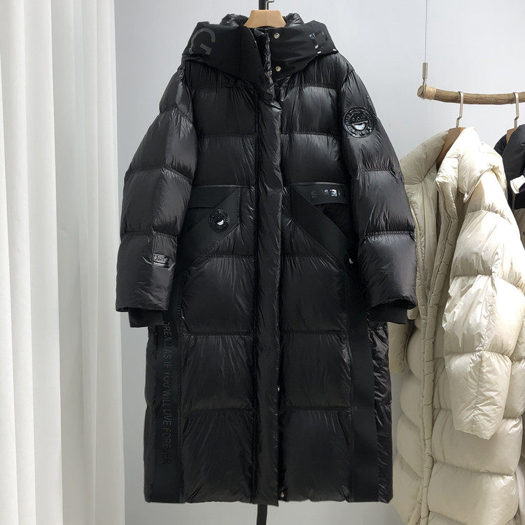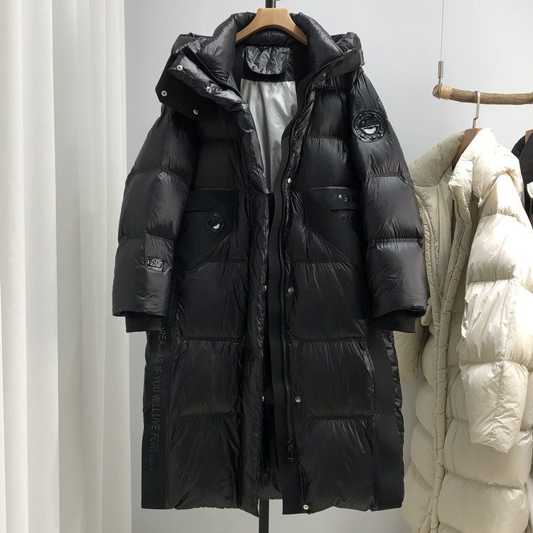 Утепленный пуховик, глянцевая замшевая куртка, длина макси, оверсайз, в корейском стиле, утиный пух