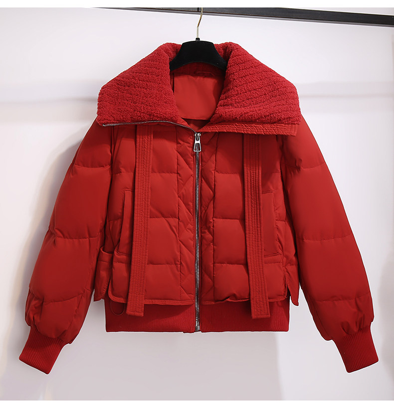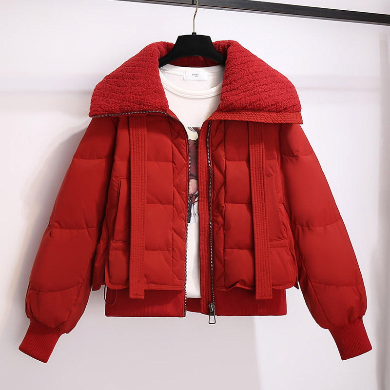 Красный бархатный короткий пуховик, зимняя куртка