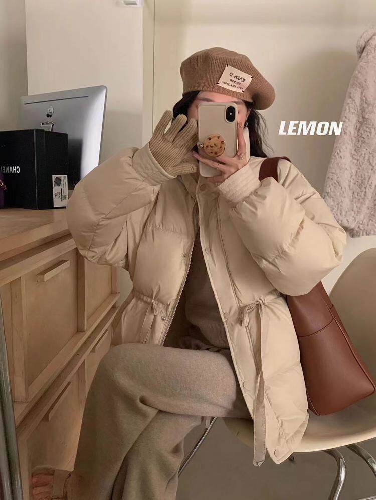 Приталенный корсет, пуховик, в корейском стиле, на шнурках