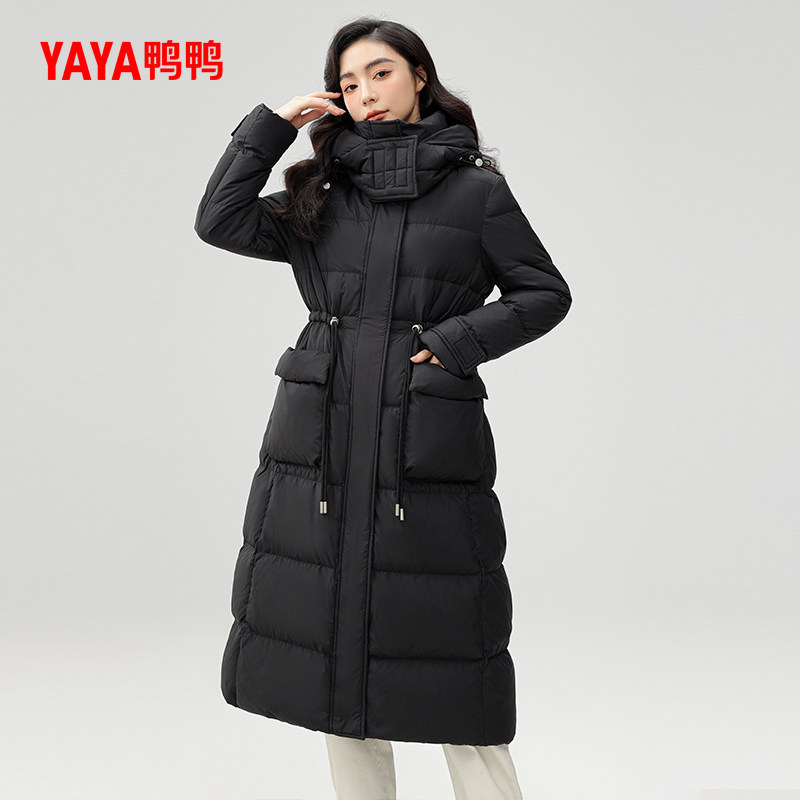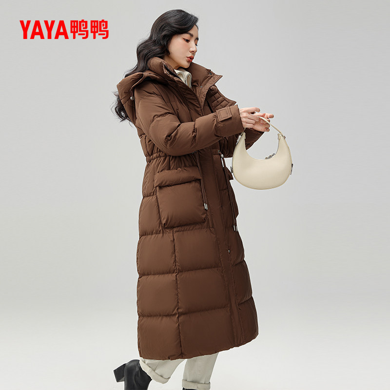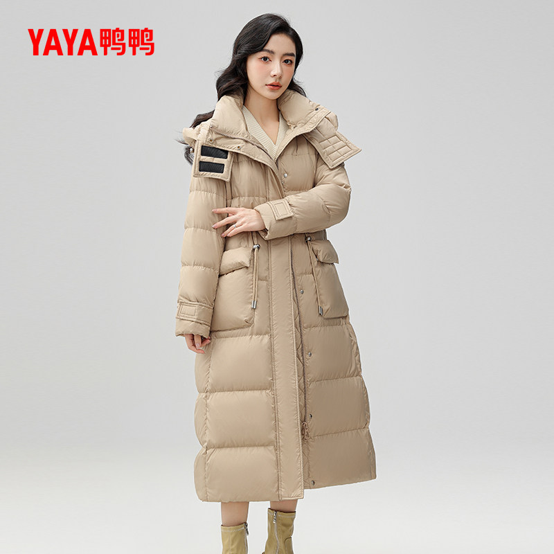 鸭鸭 Зимний пуховик, длинная бархатная куртка с капюшоном, средней длины, увеличенная толщина, на шнурках, утиный пух