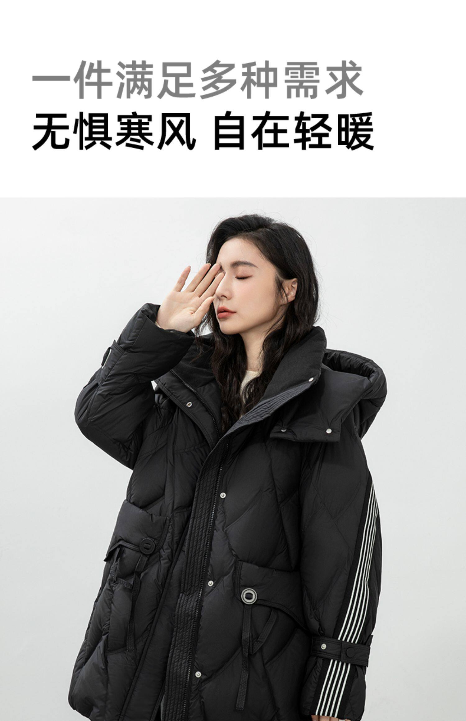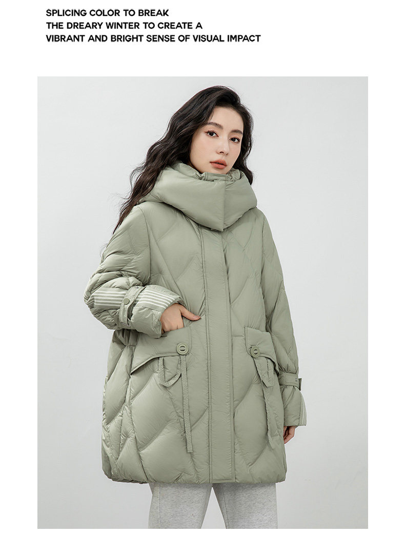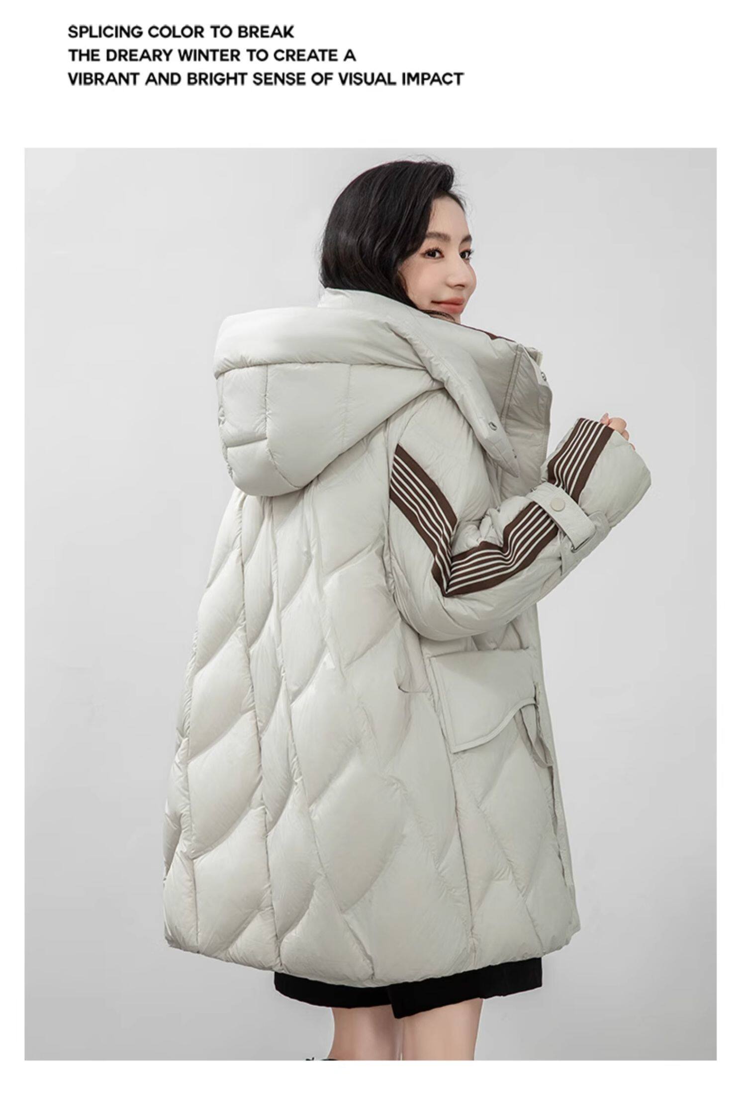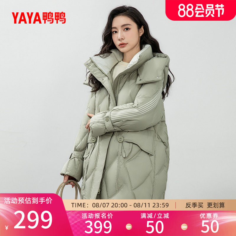 鸭鸭 Пуховик, демисезонная длинная толстовка с капюшоном для отдыха, бархатная удерживающая тепло куртка, средней длины, утиный пух