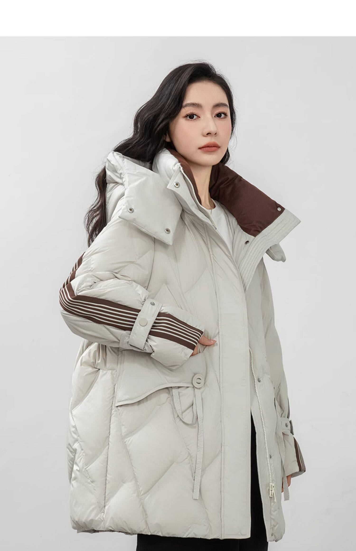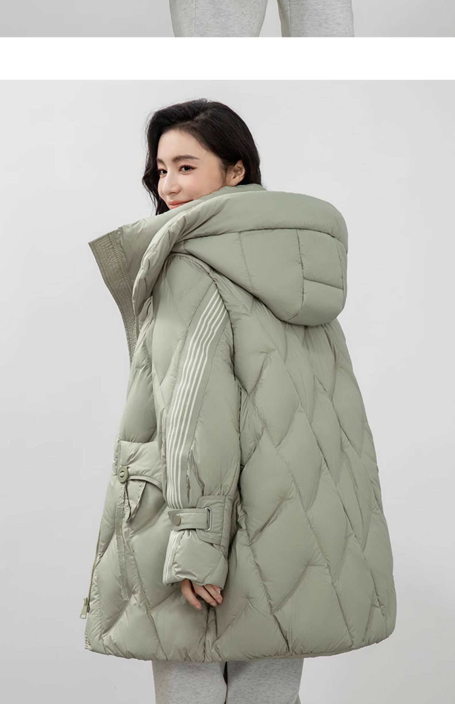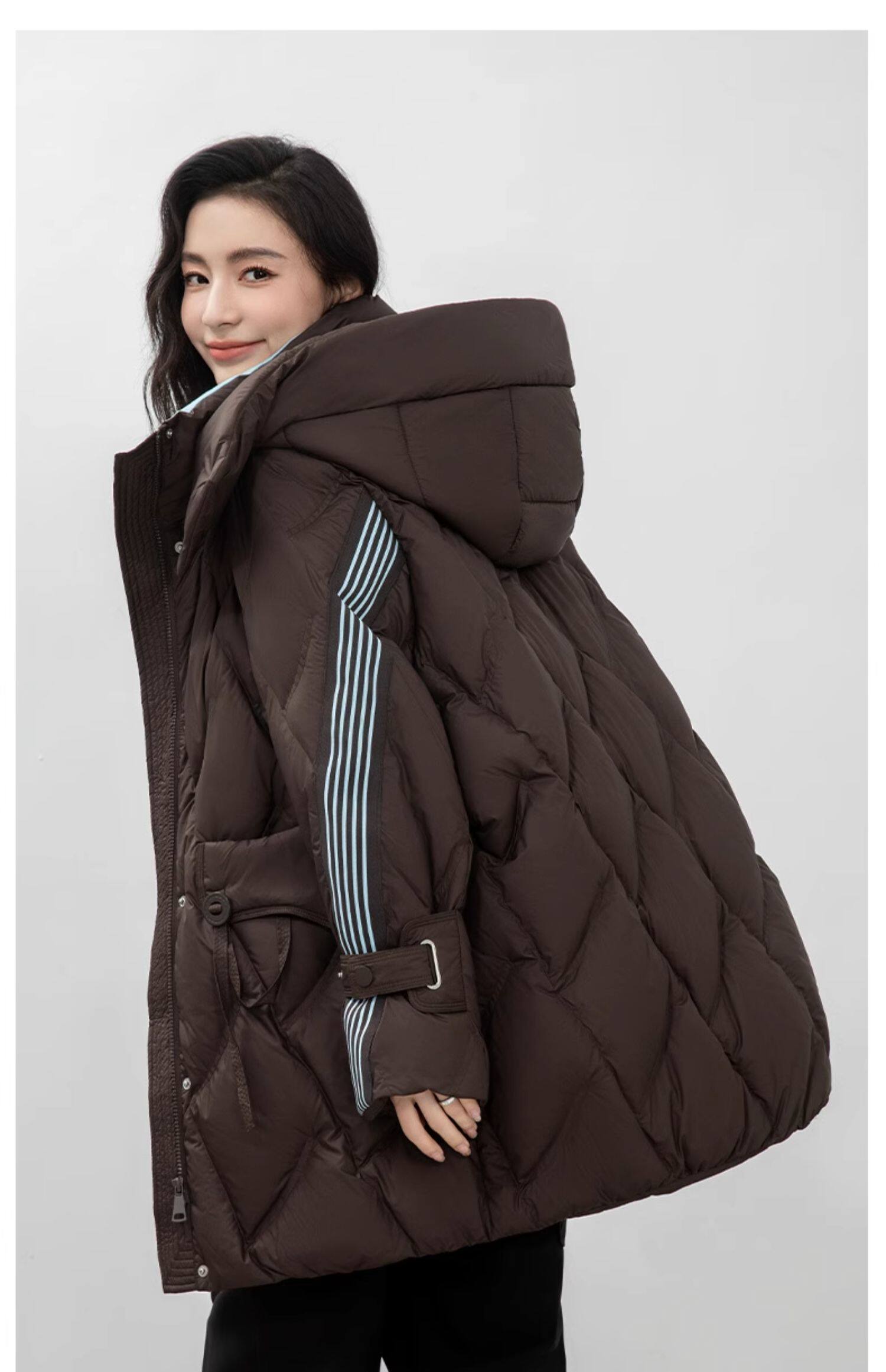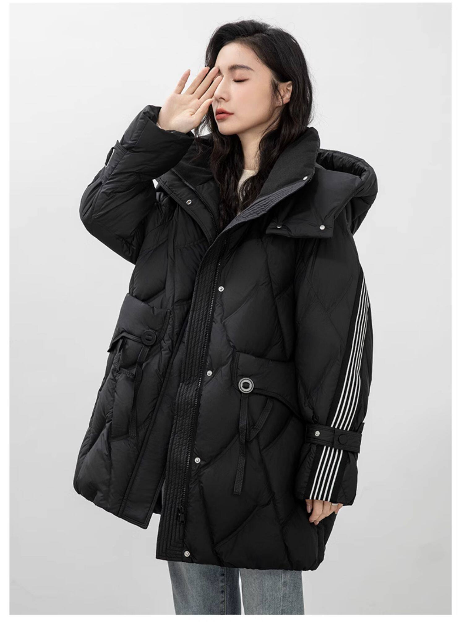 鸭鸭 Пуховик, демисезонная длинная толстовка с капюшоном для отдыха, бархатная удерживающая тепло куртка, средней длины, утиный пух