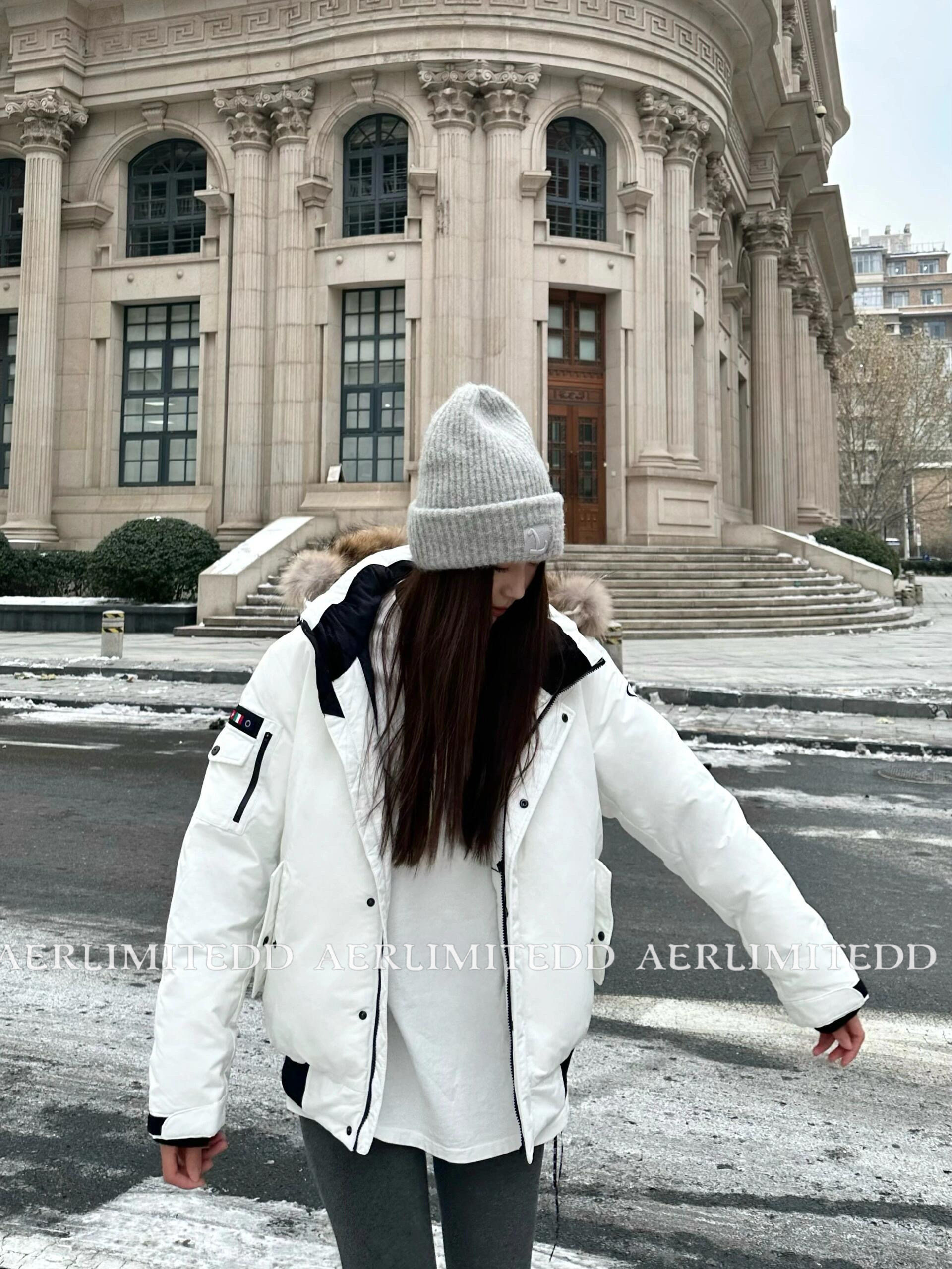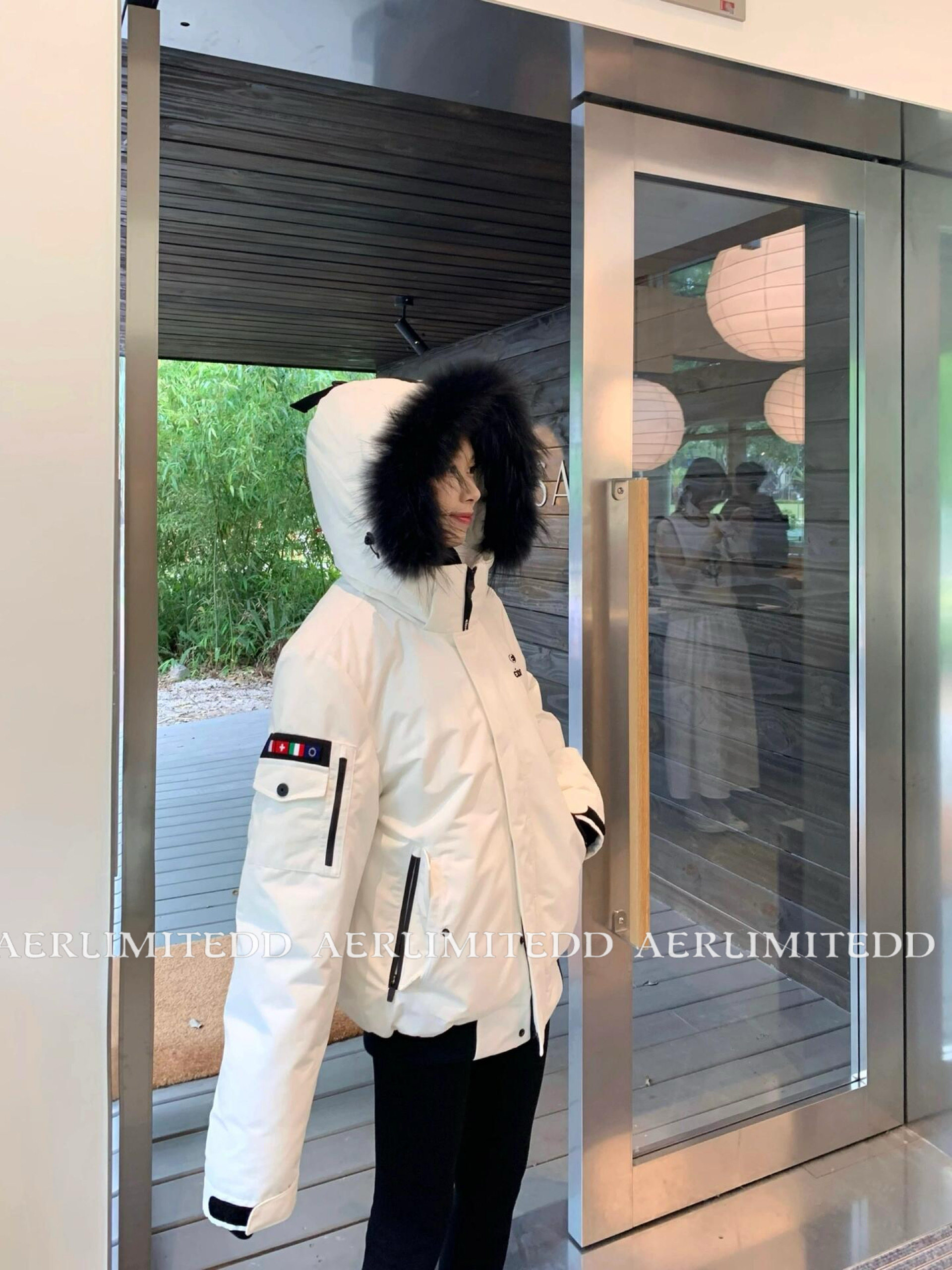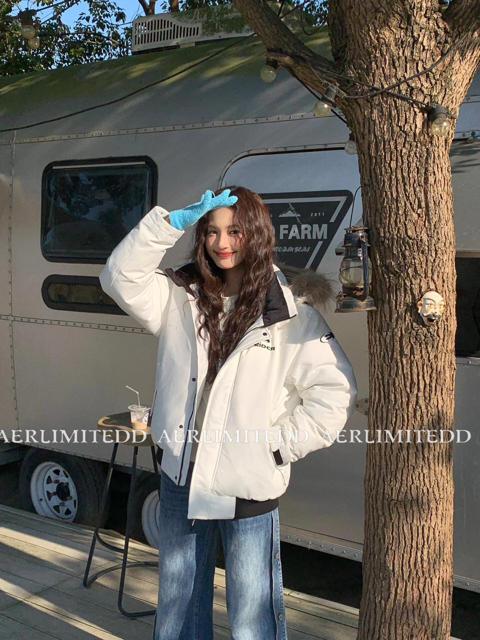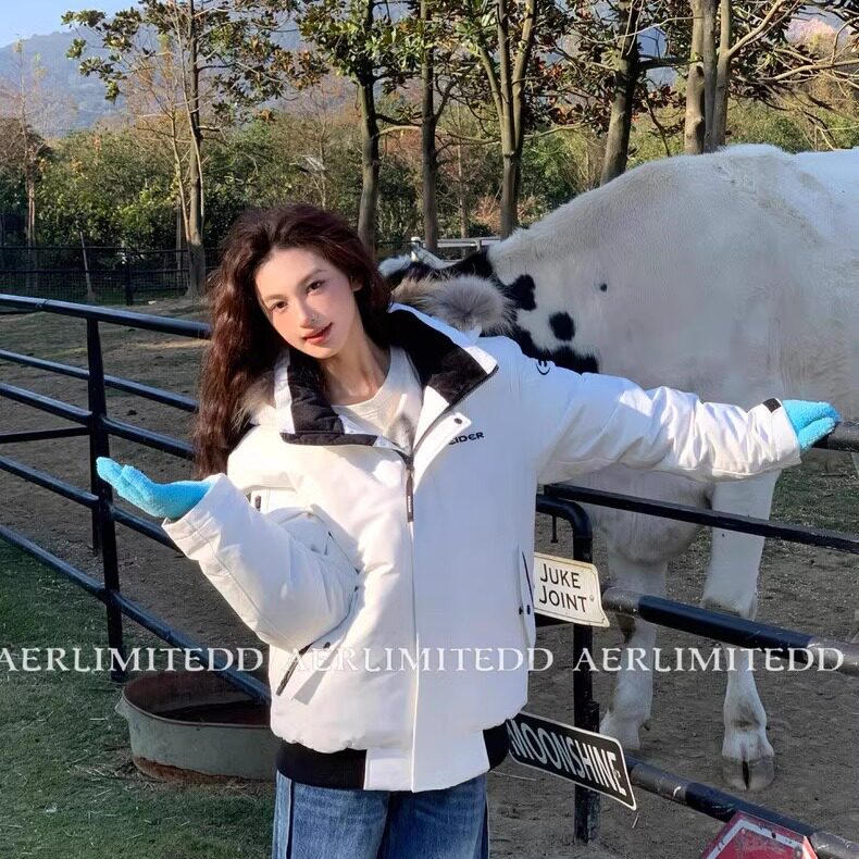 Чжан Юанинг - та же модель!24SS Корейский большой шерстяной воротник белый уток вниз рабочих вниз по куртбу