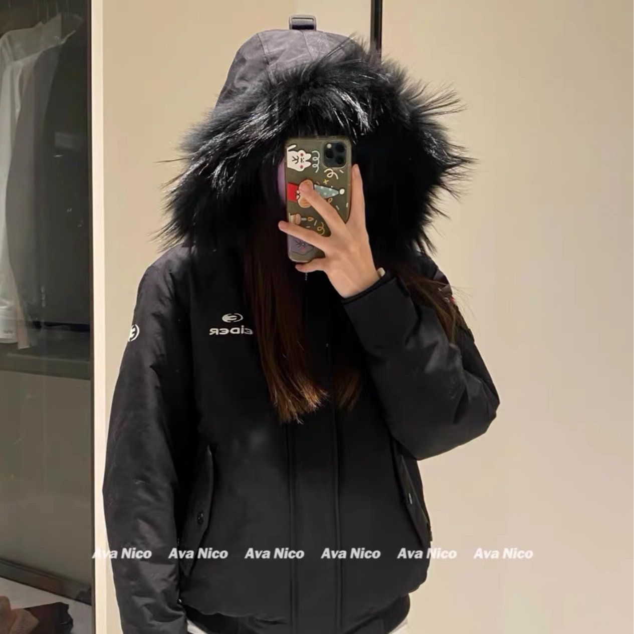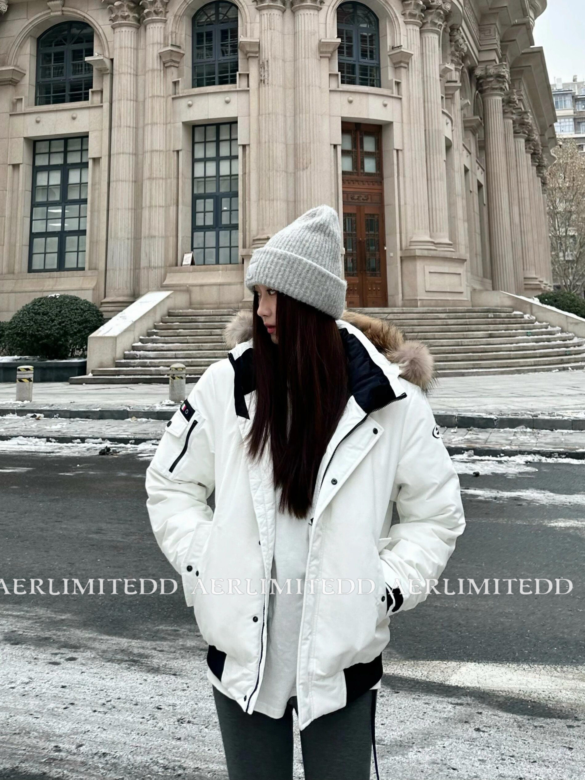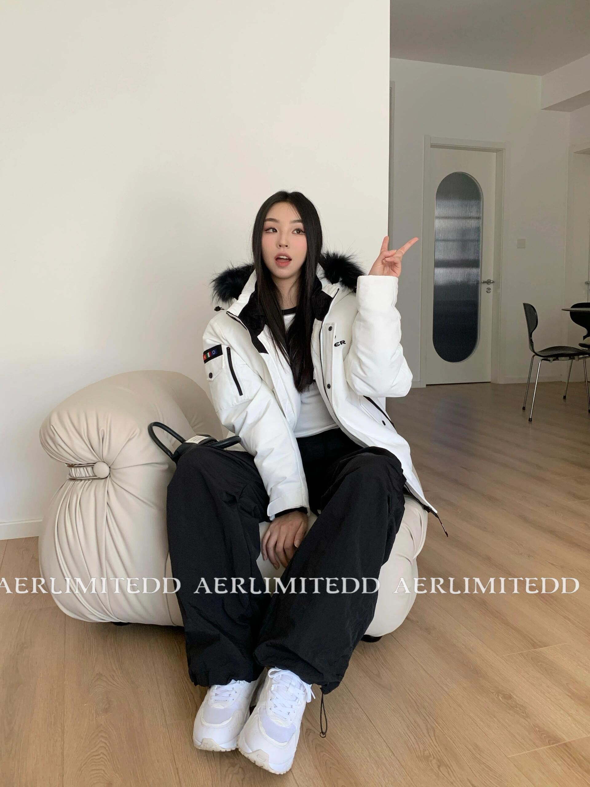 Чжан Юанинг - та же модель!24SS Корейский большой шерстяной воротник белый уток вниз рабочих вниз по куртбу