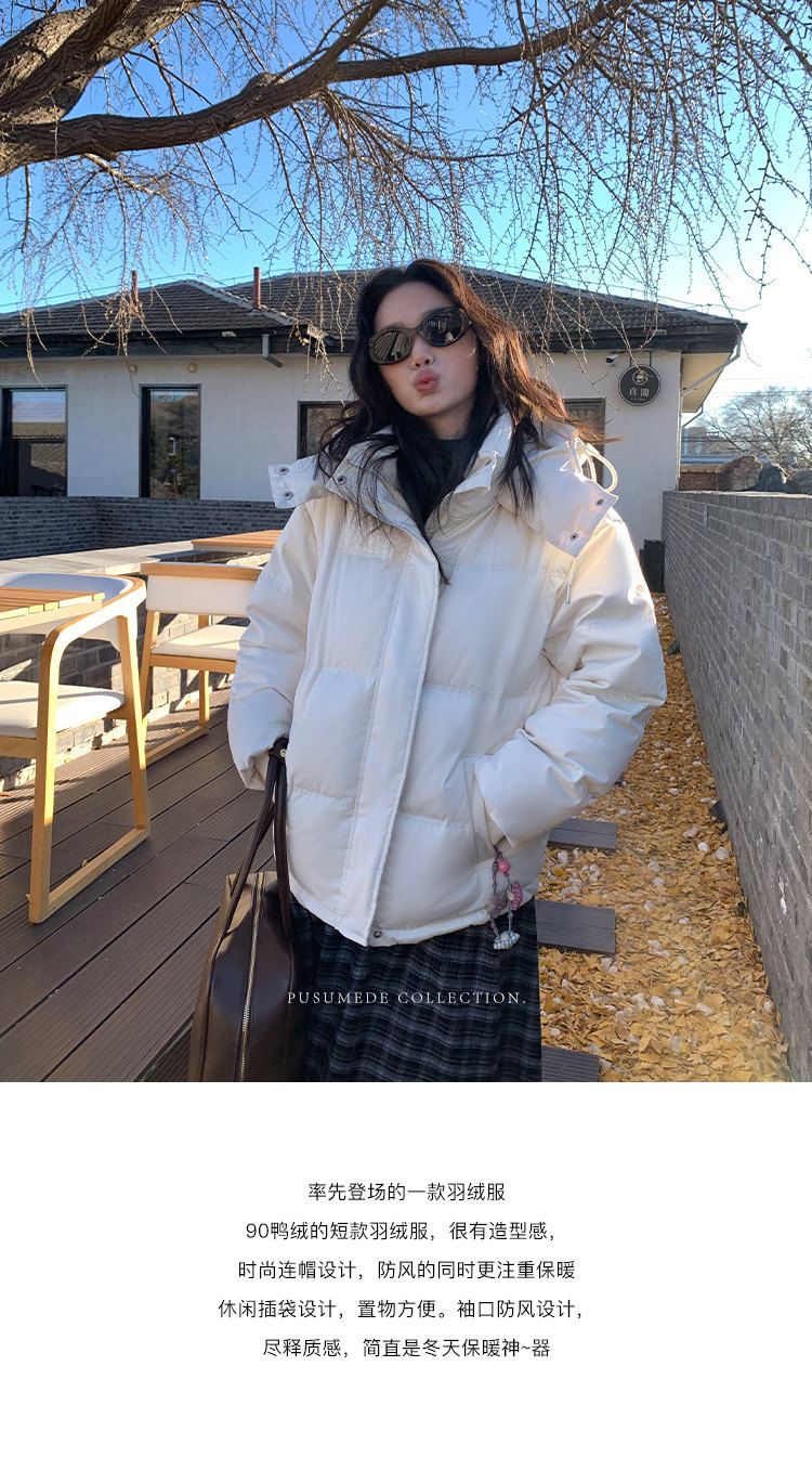 pusumede Черный зимний удерживающий тепло пуховик, бархатная куртка для отдыха, утиный пух, оверсайз