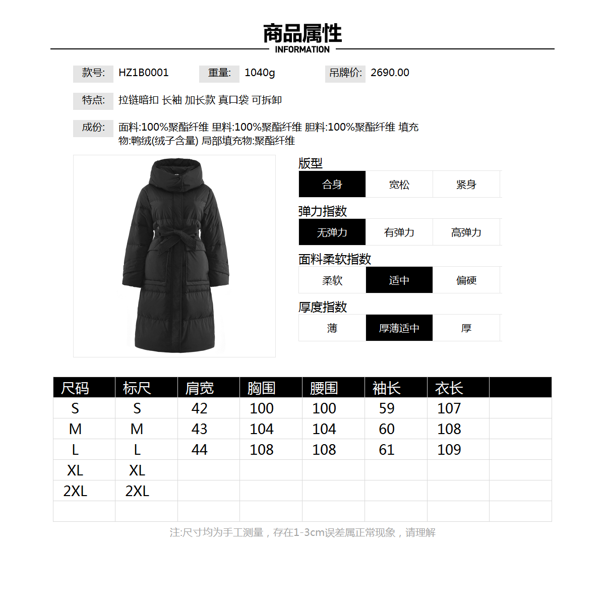 [Горячая распродажа] [He Zhe] 9 Charm Hz1b0001 - это ремень с утиной и длинная куртка, женщина 2024