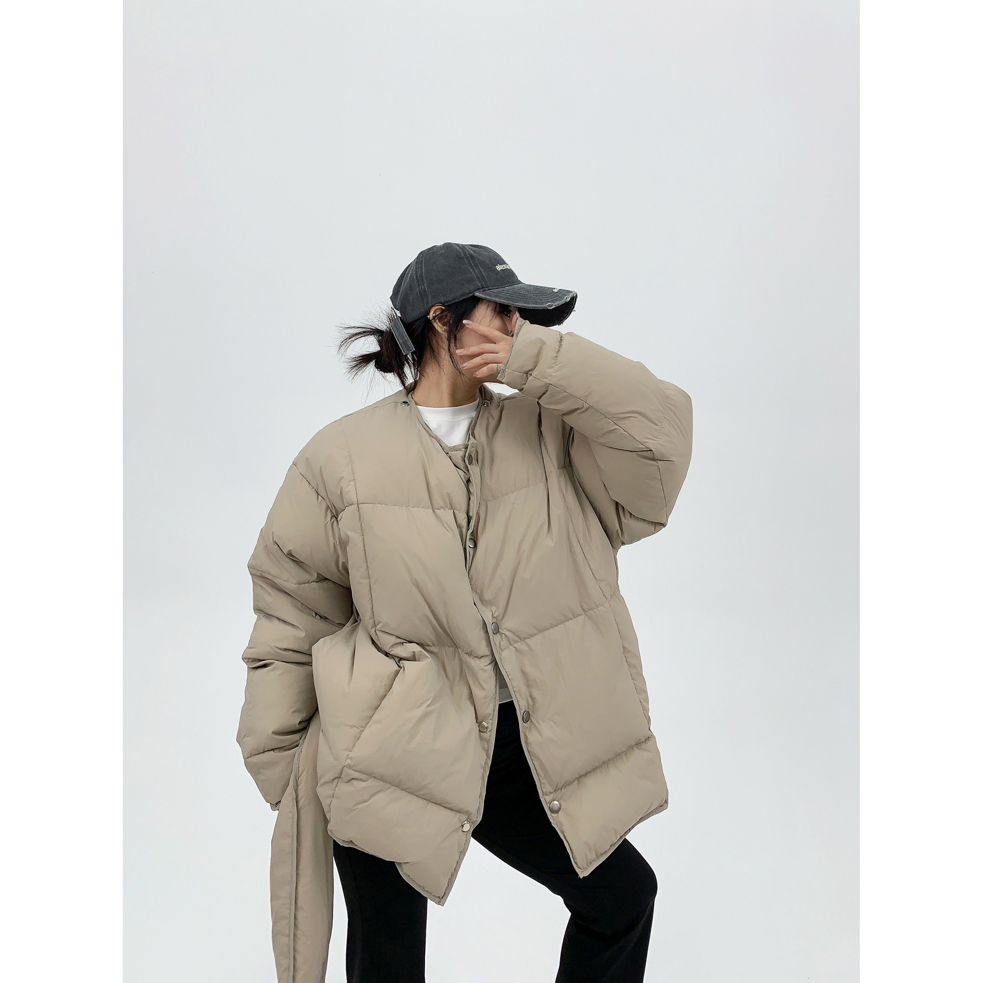 Зимний минималистичный утепленный шарф, пуховик, ретро куртка, в корейском стиле, свободный крой