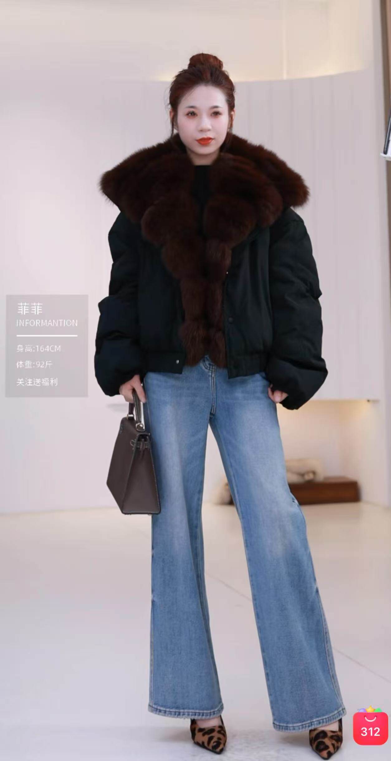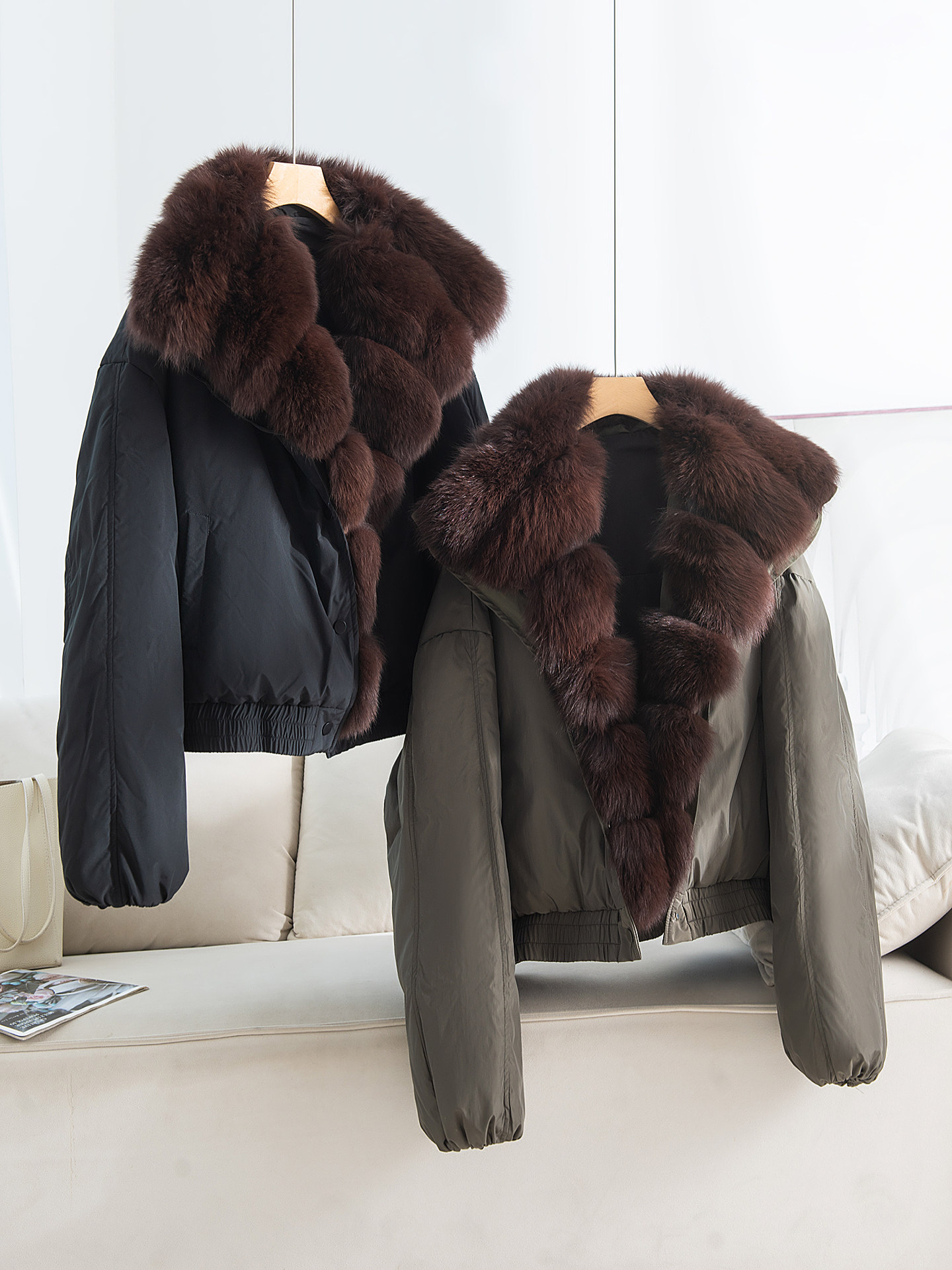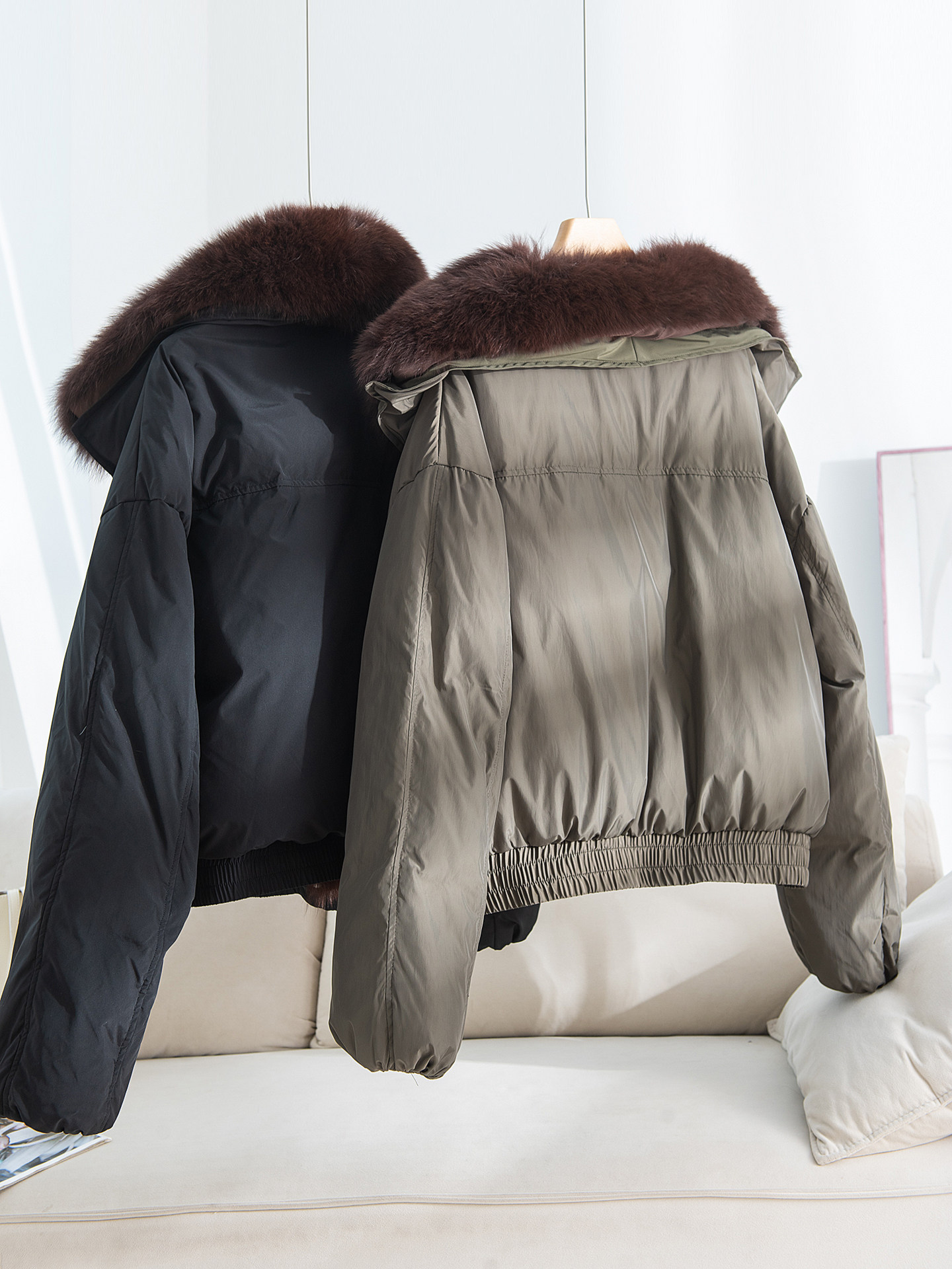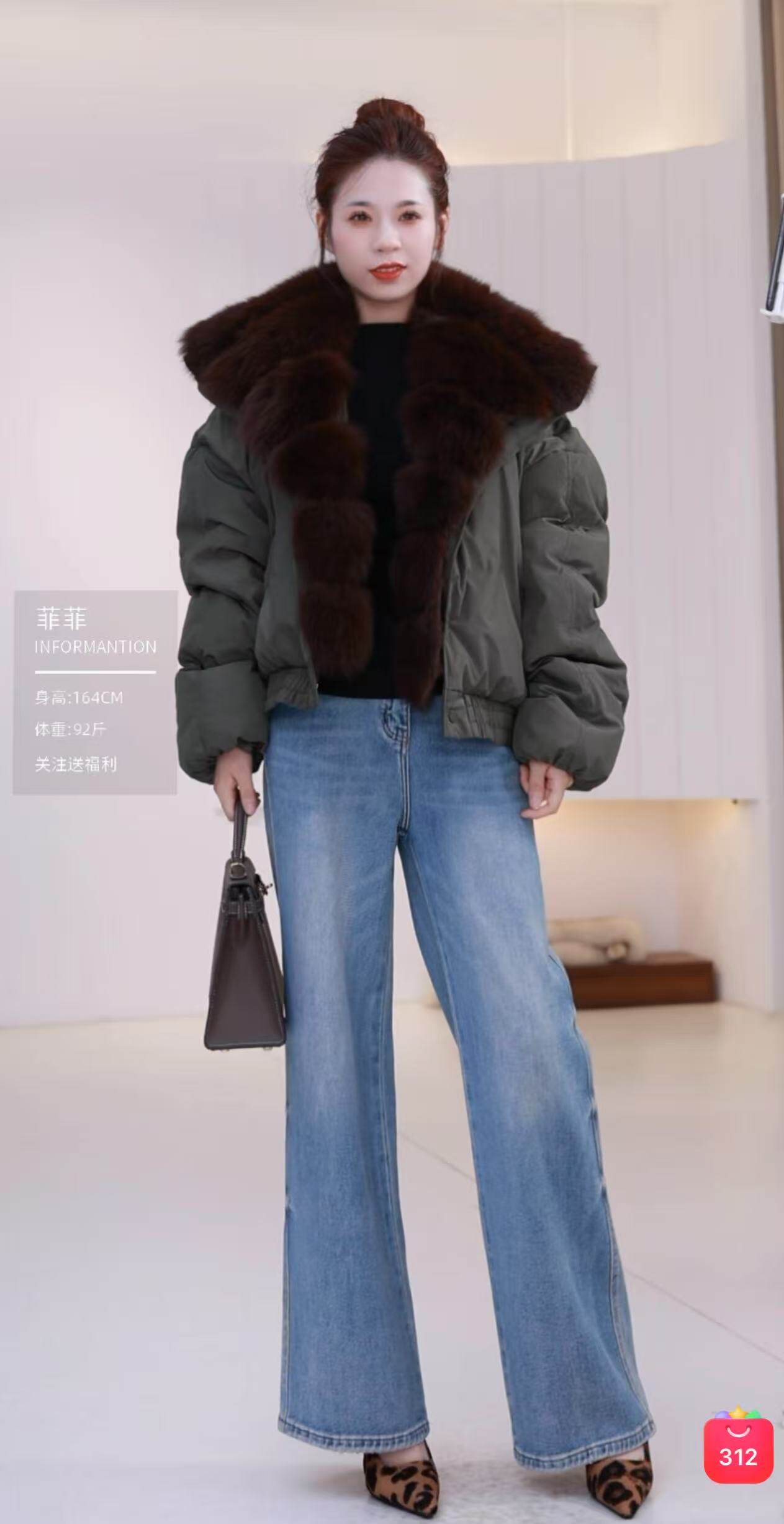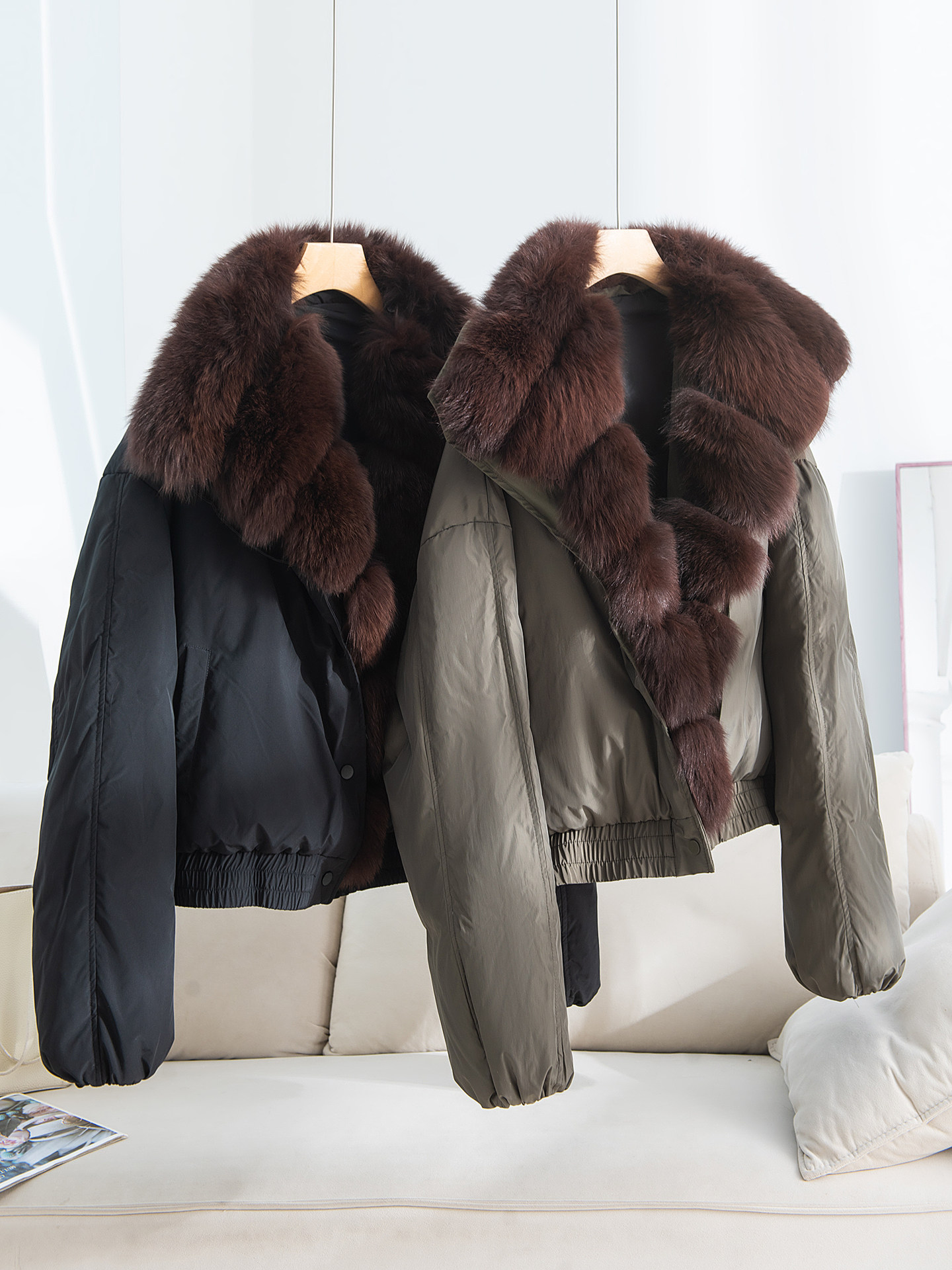 ~[Гусиный пуховик с воротником из жареной лисы] Легкая роскошная и благородная меховая парка-пуховик, короткая куртка AH3650