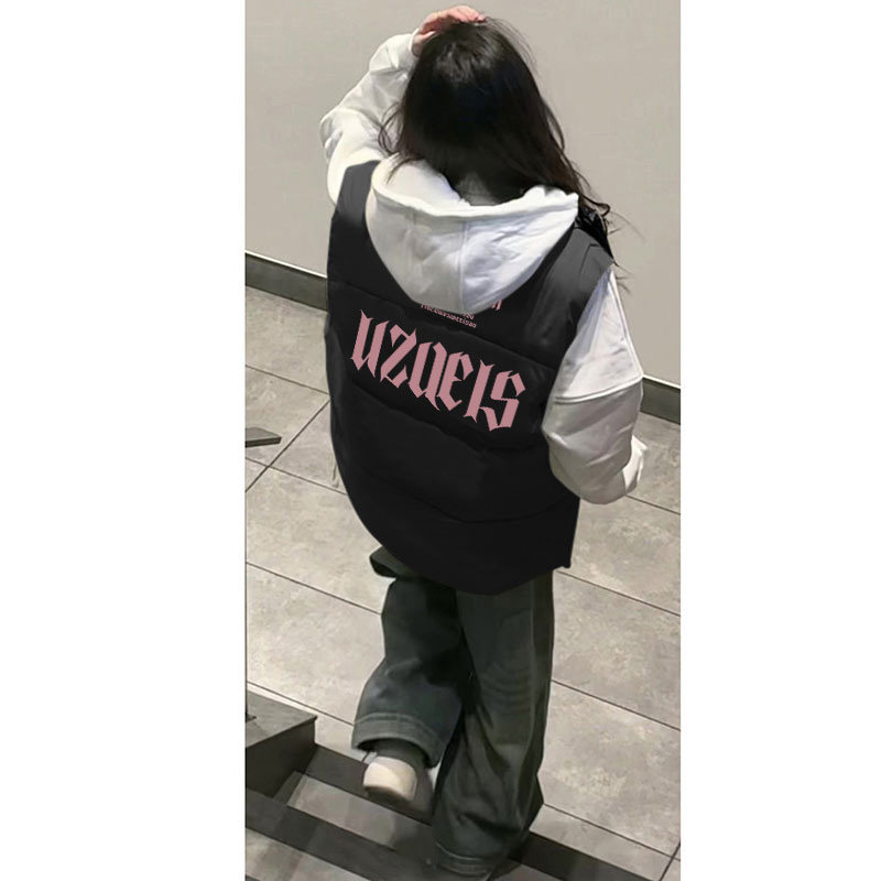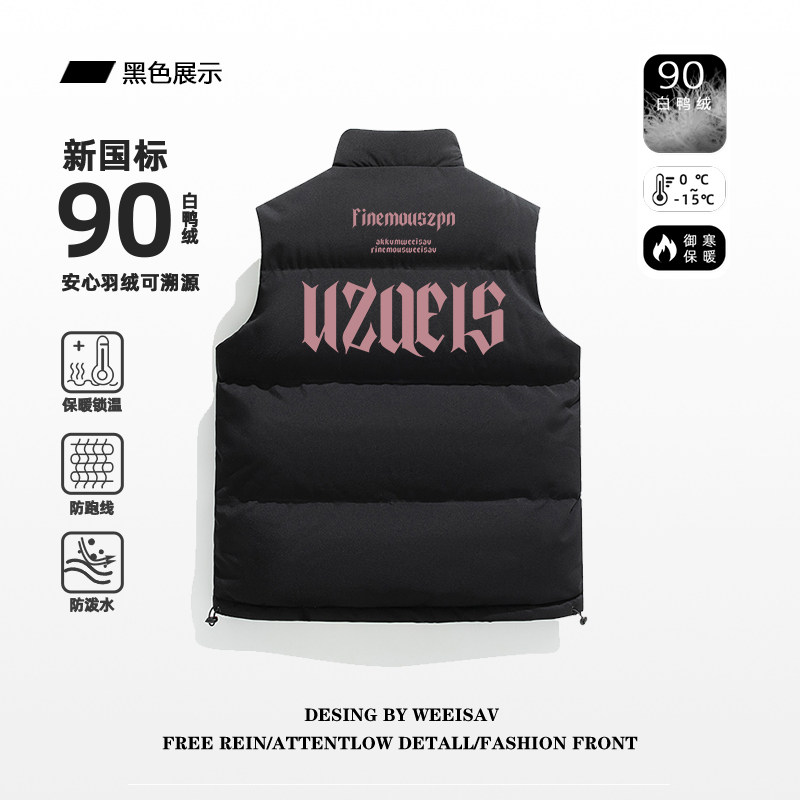 Парная одежда, бархатный жилет с пухом, демисезонная майка топ, черная куртка, в американском стиле, для влюбленных, утиный пух