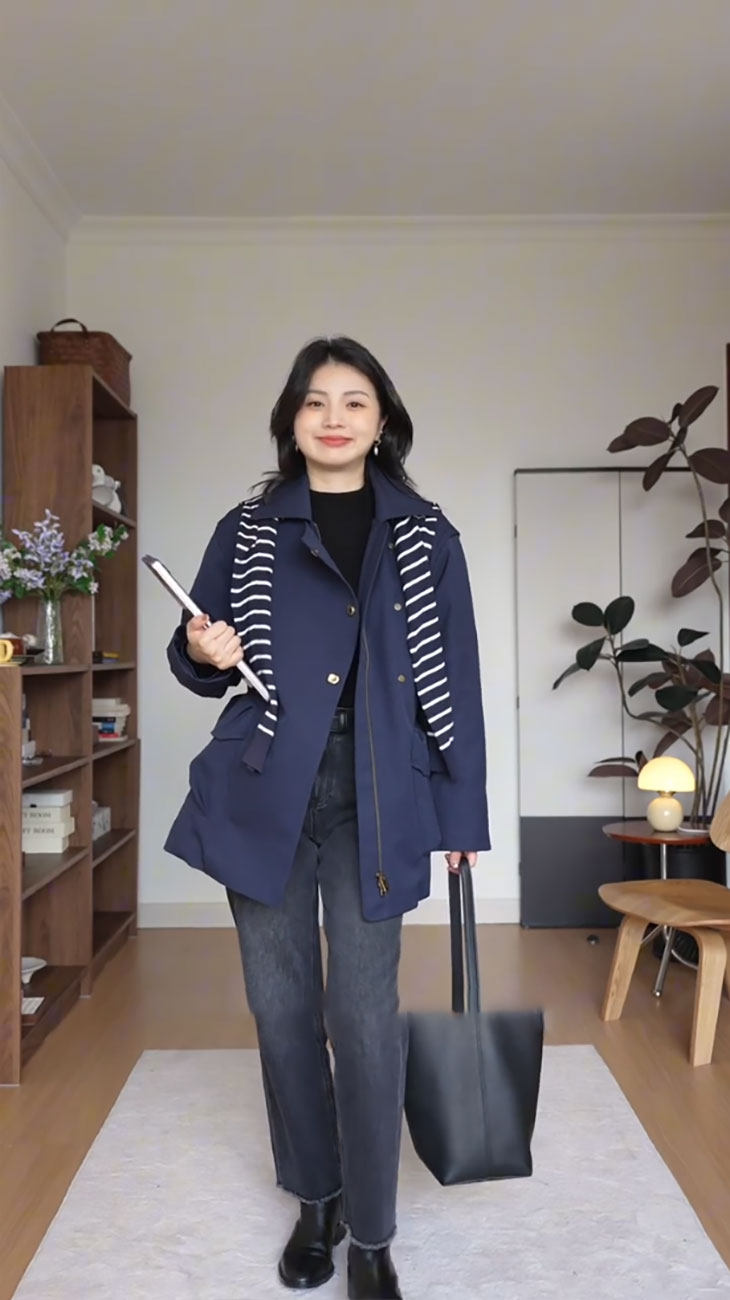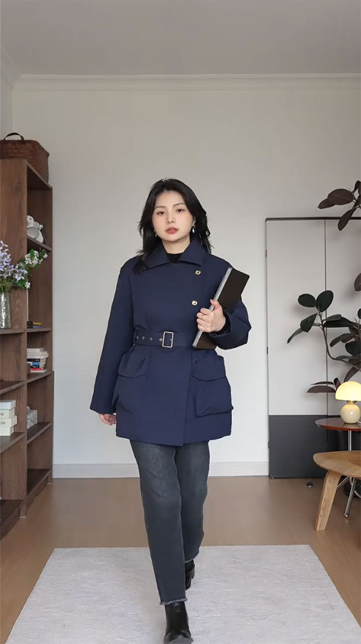 | Цвет: | Синяя куртка, Темно -серые джинсы |