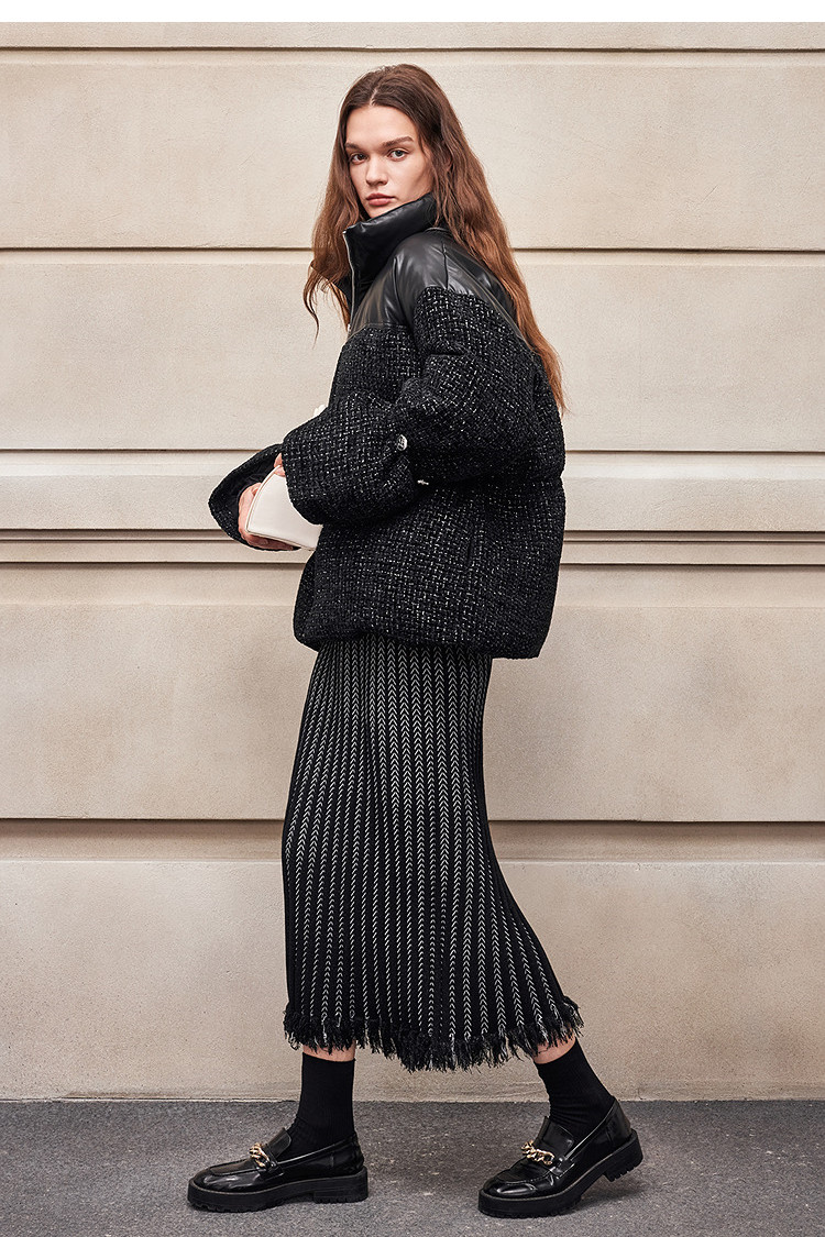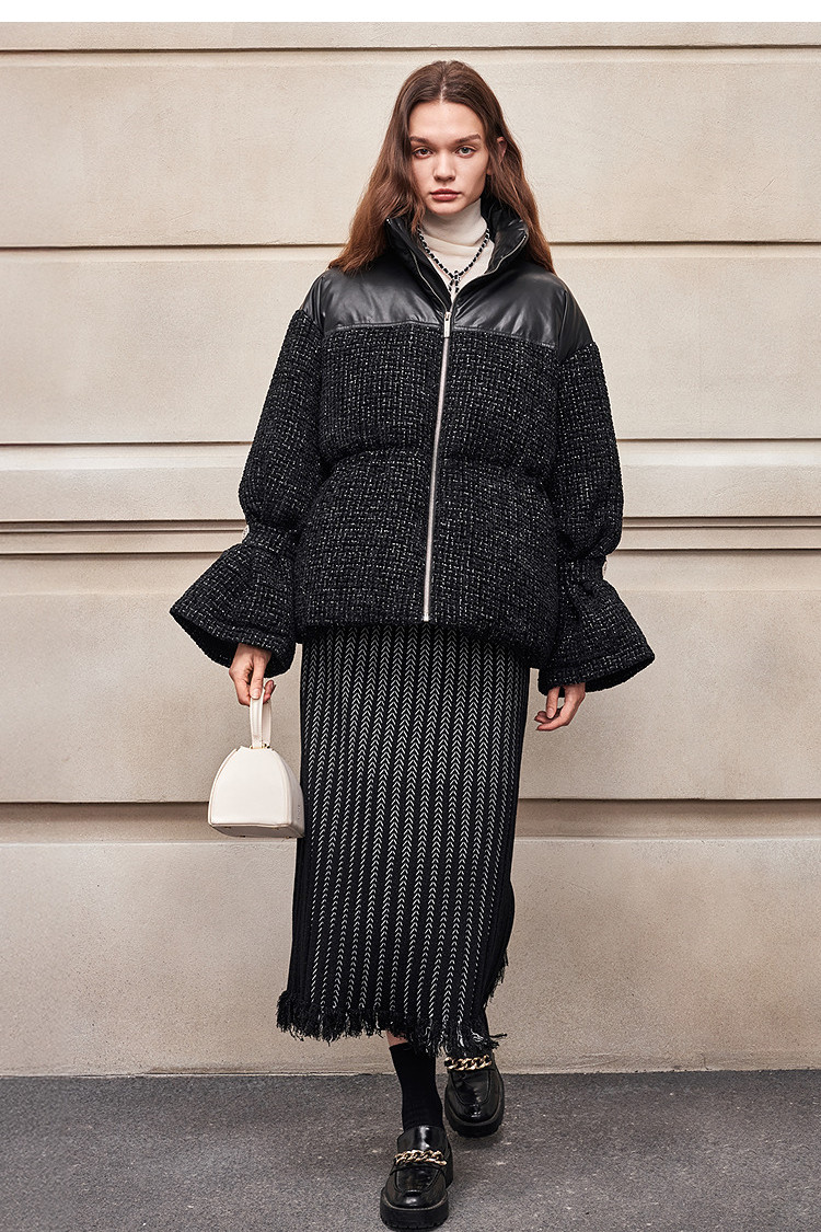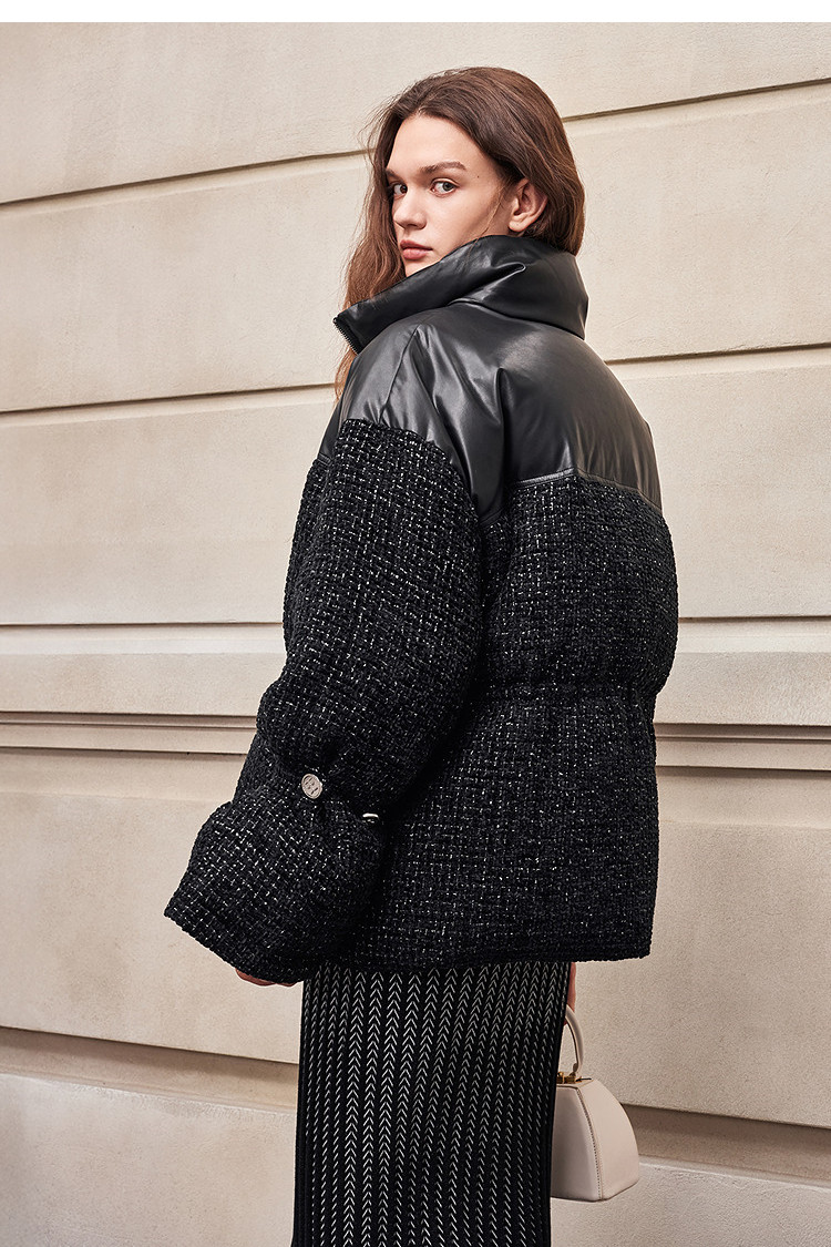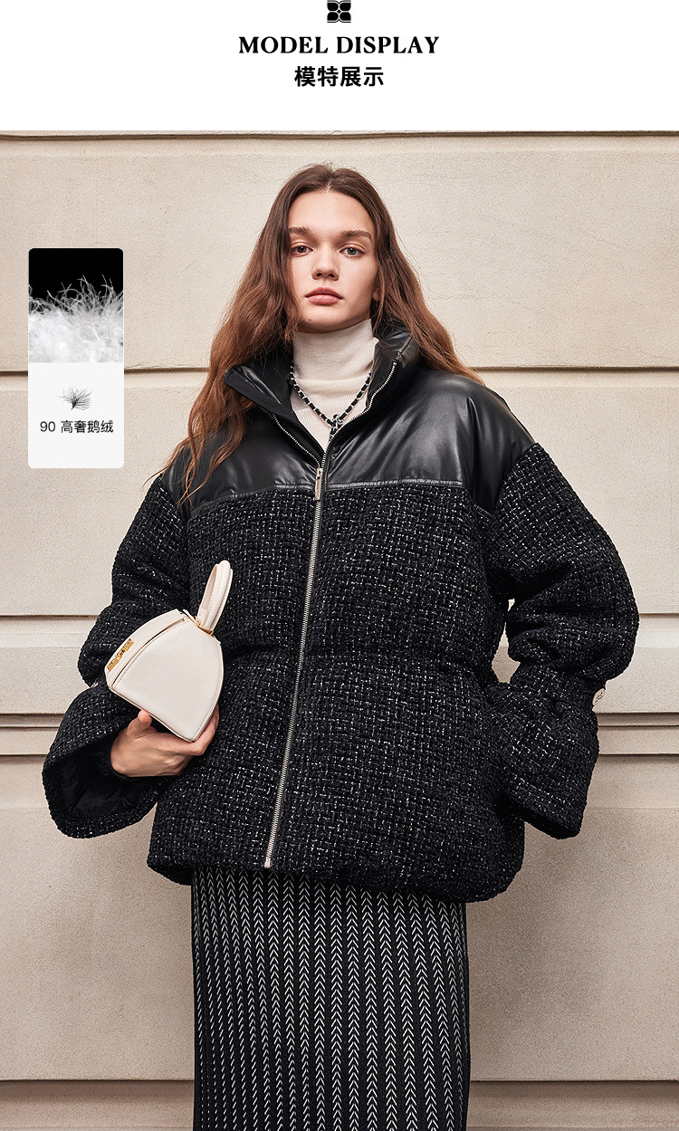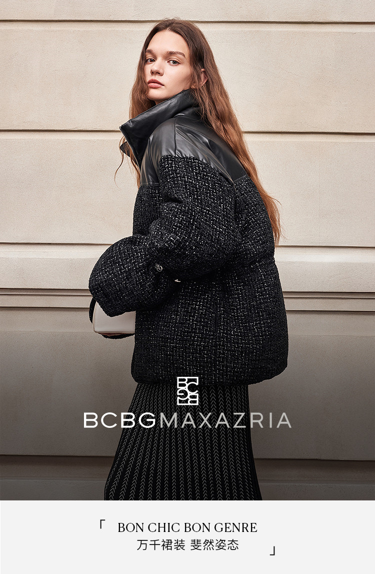 [90 Гусиный пух] BCBG Женский универсальный твидовый пуховик для поездок на работу, модный экологически чистый кожаный твидовый пуховик с небольшим ароматом