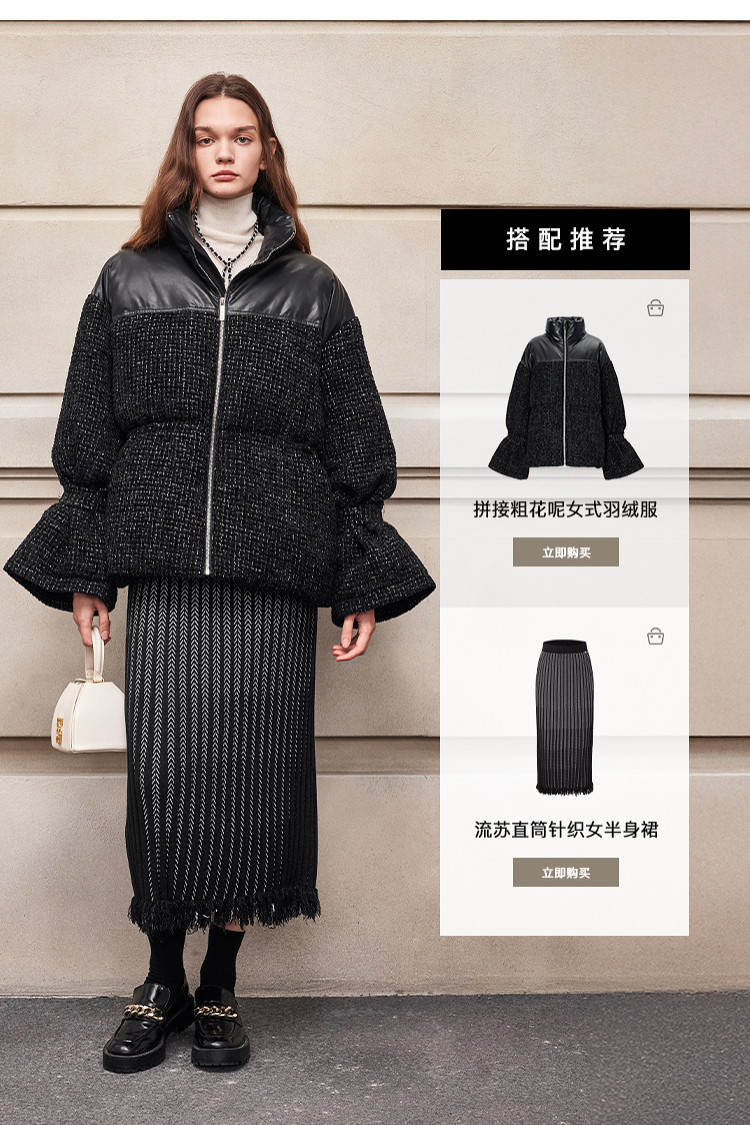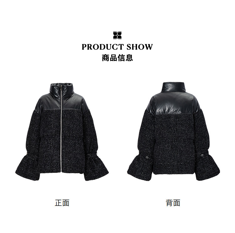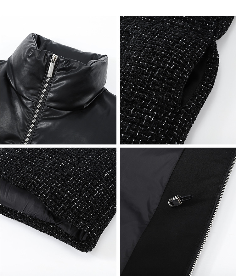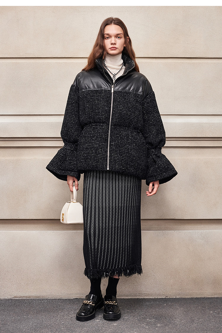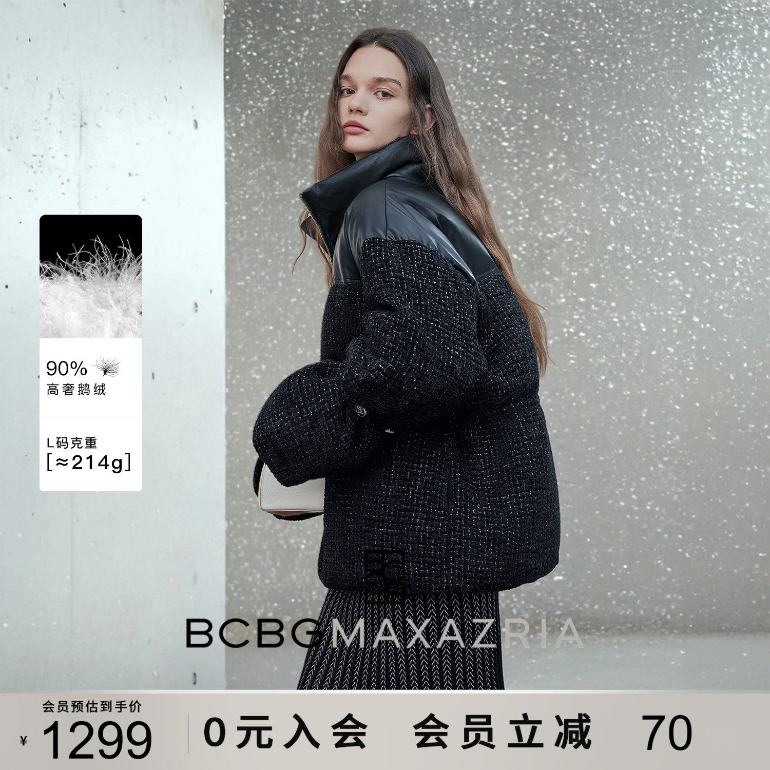 [90 Гусиный пух] BCBG Женский универсальный твидовый пуховик для поездок на работу, модный экологически чистый кожаный твидовый пуховик с небольшим ароматом