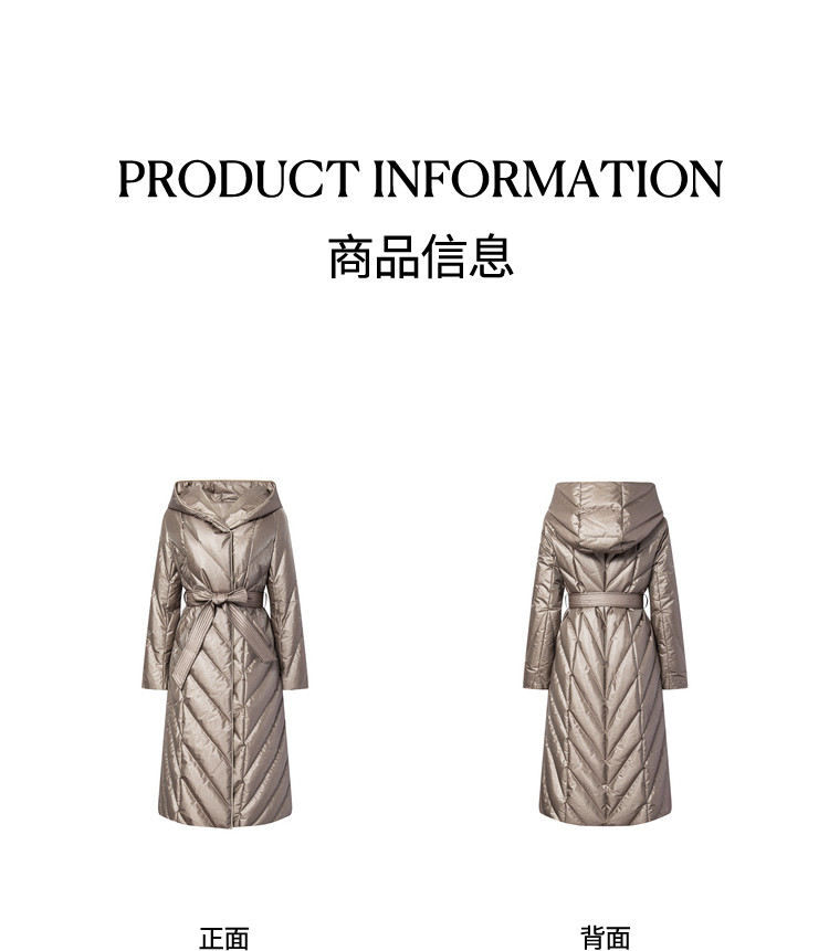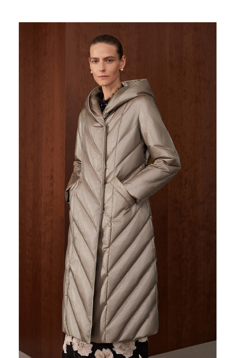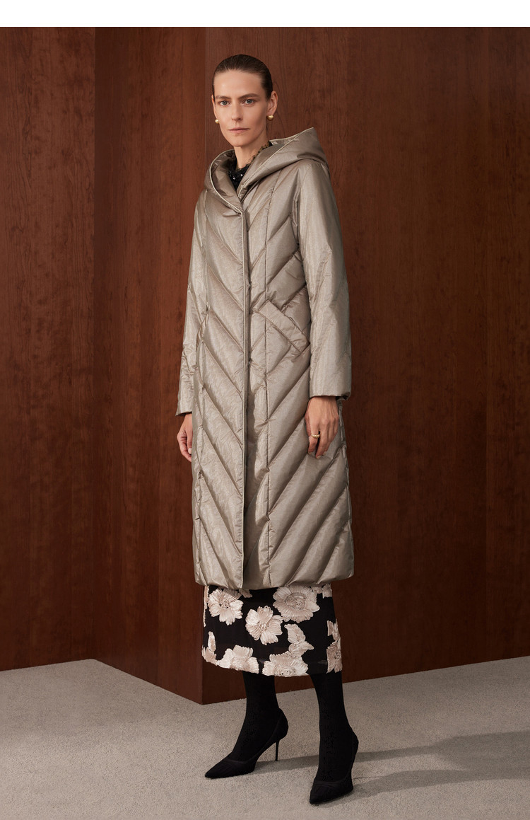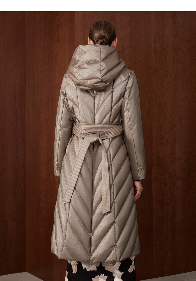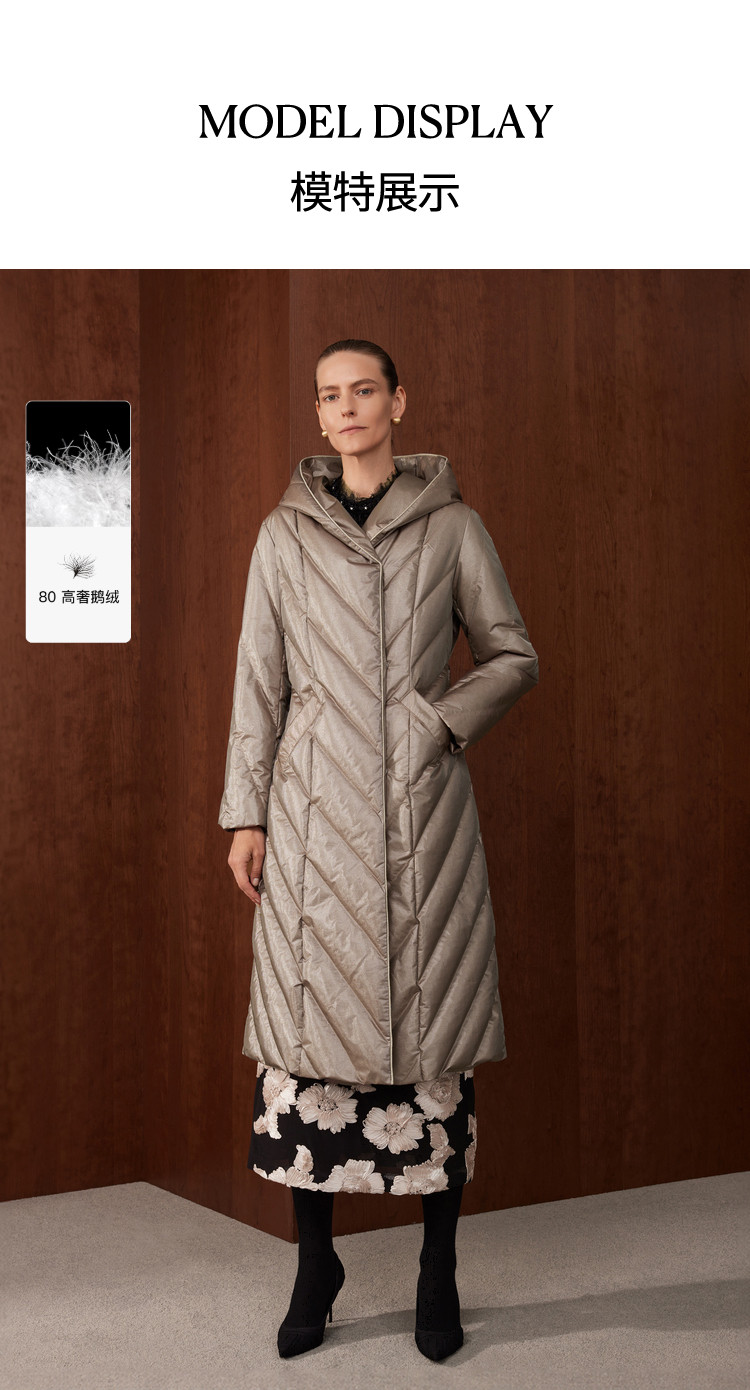 [Высокороскошный гусиный пух] Женская одежда BCBG простая, повседневная, простая, длинный пуховик с капюшоном и рисунком пшеничных ушей на зиму.