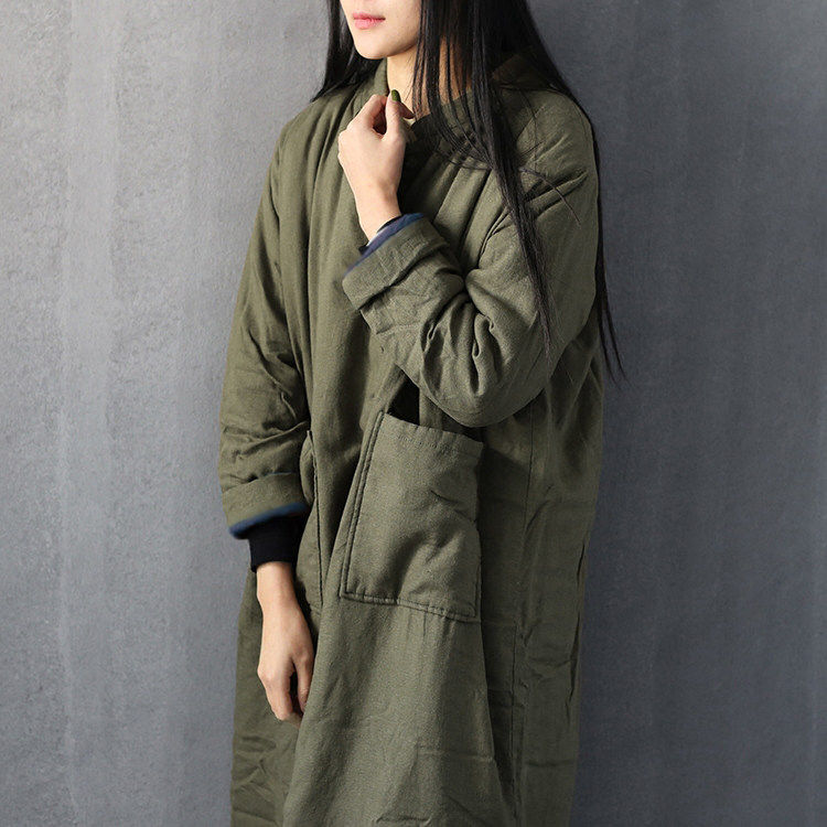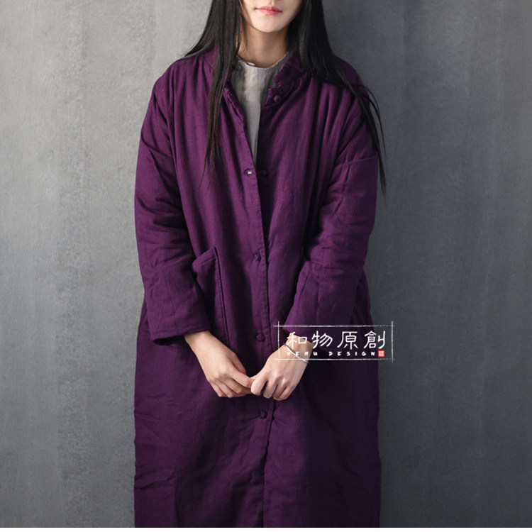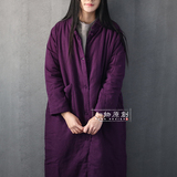 Зимние ретро длинные стеганые джинсы с начесом, пуховик, удерживающая тепло куртка, из хлопка и льна, средней длины, китайский стиль