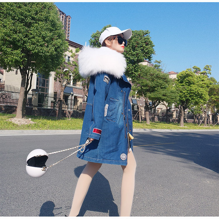 Длинная джинсовая утепленная куртка, коллекция 2022, средней длины, с вышивкой