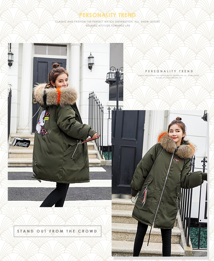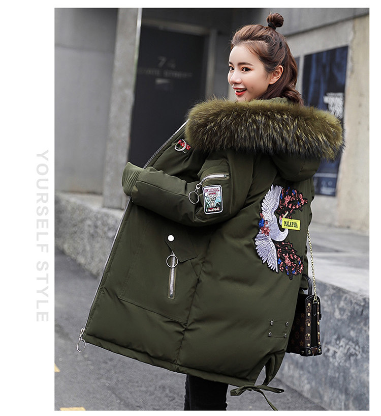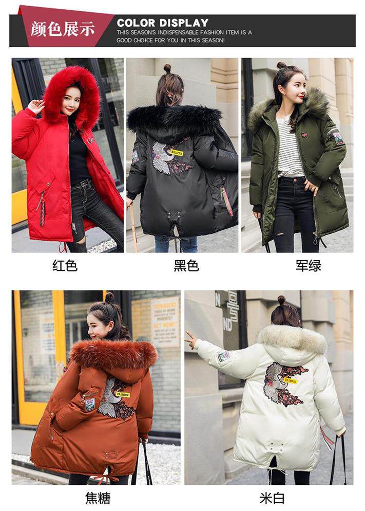 Демисезонный длинный утепленный удерживающий тепло пуховик, куртка, с вышивкой, в корейском стиле