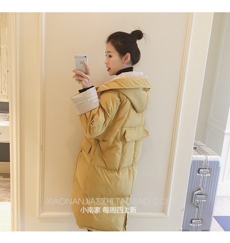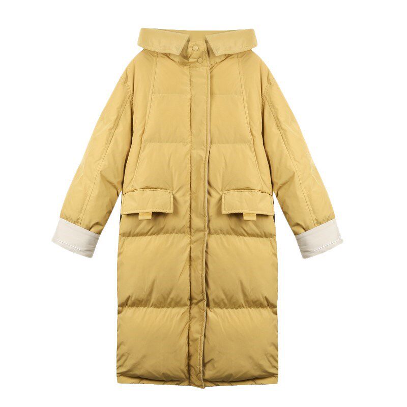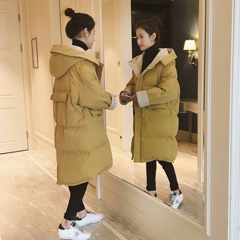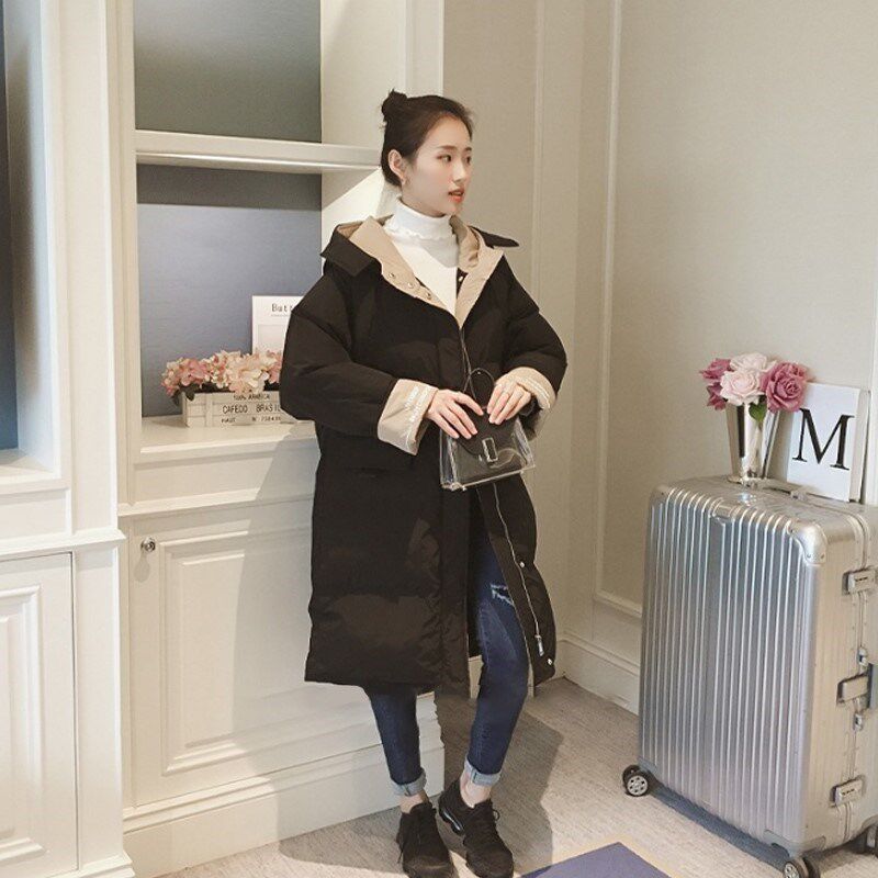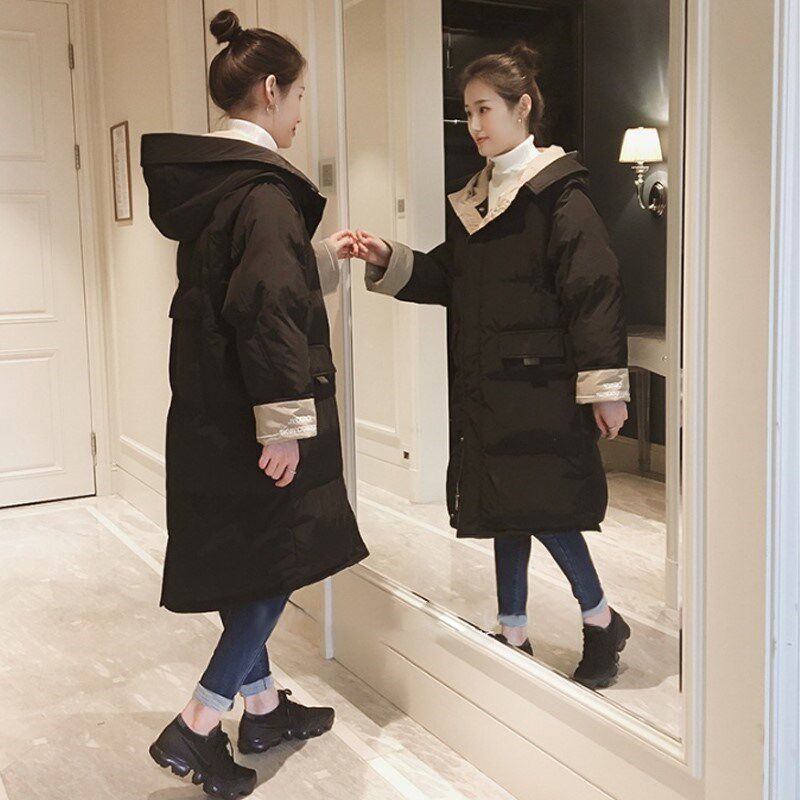 Зимний длинный пуховик с капюшоном, куртка, 2019, в корейском стиле, оверсайз, увеличенная толщина, средней длины