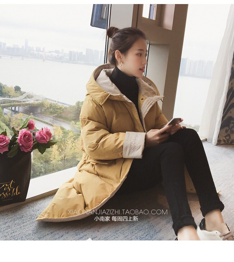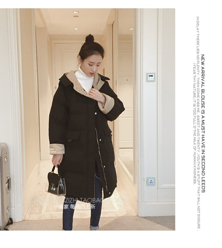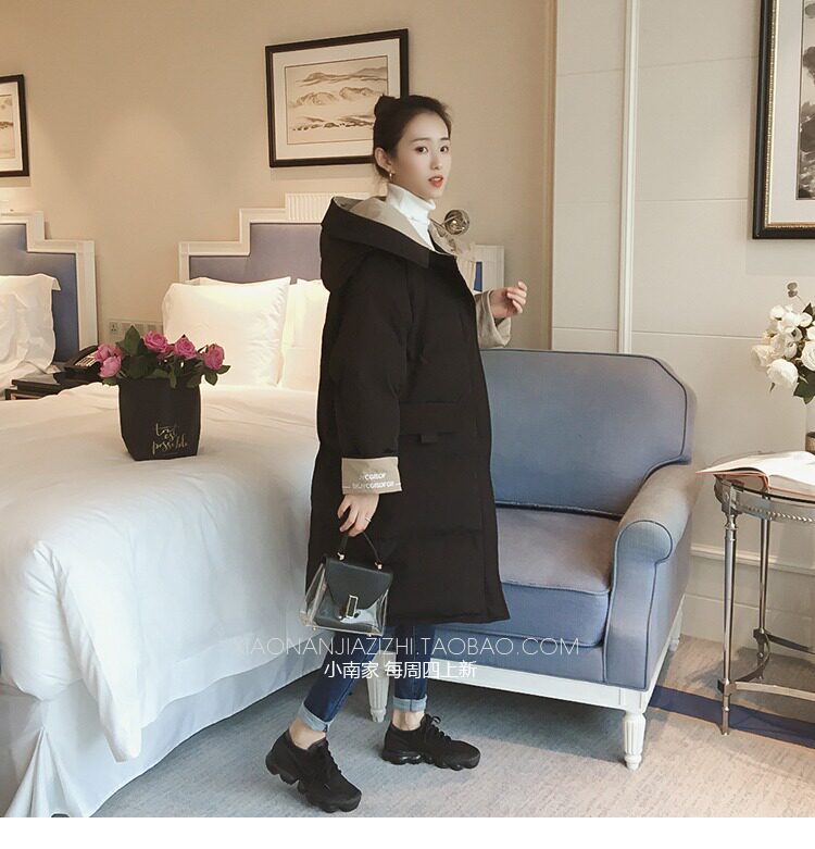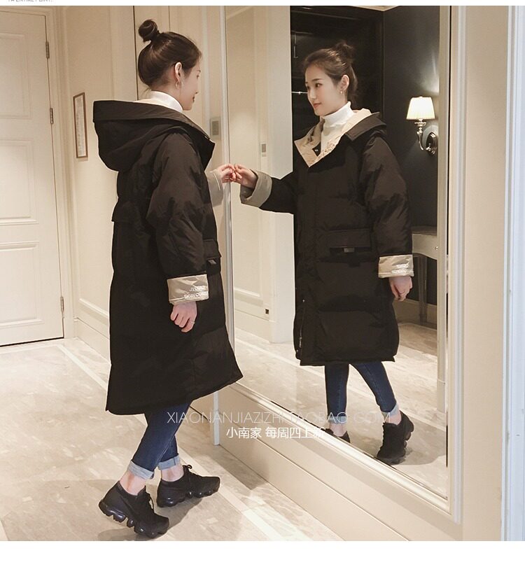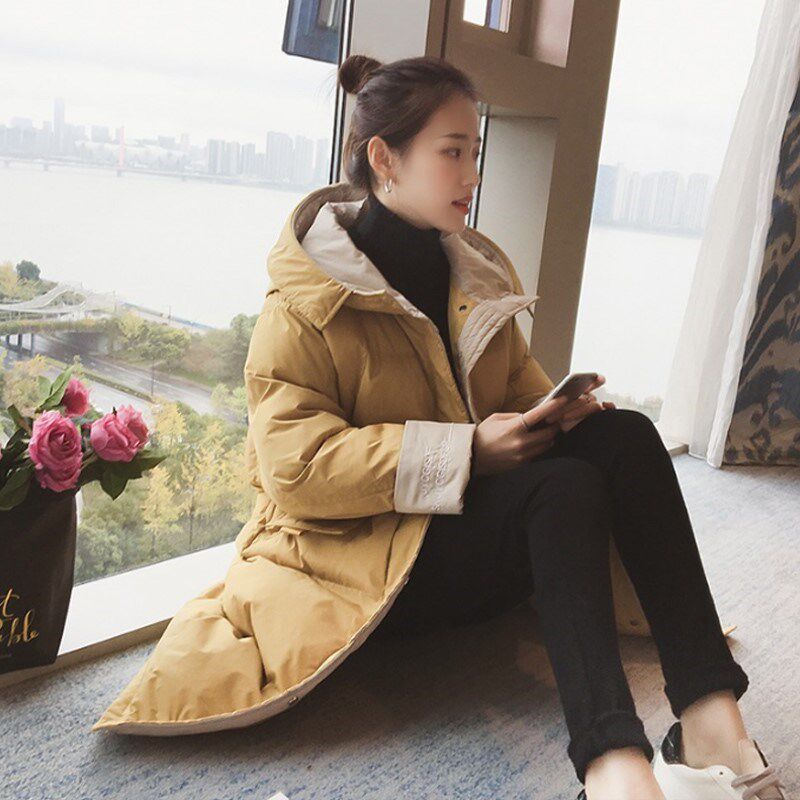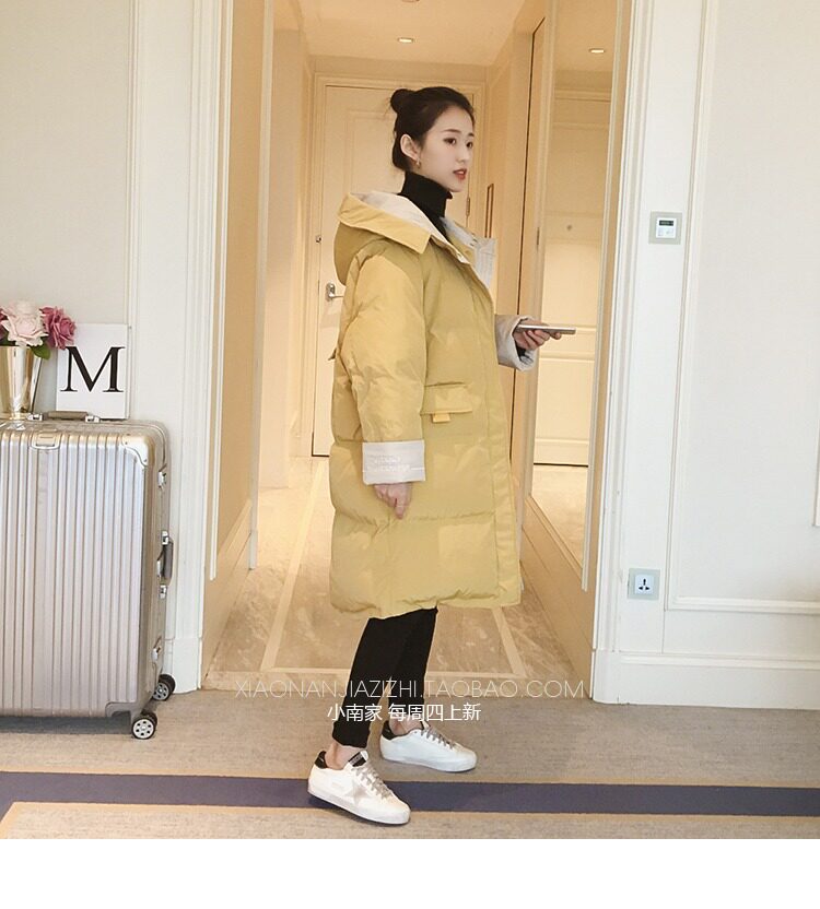 Зимний длинный пуховик с капюшоном, куртка, 2019, в корейском стиле, оверсайз, увеличенная толщина, средней длины