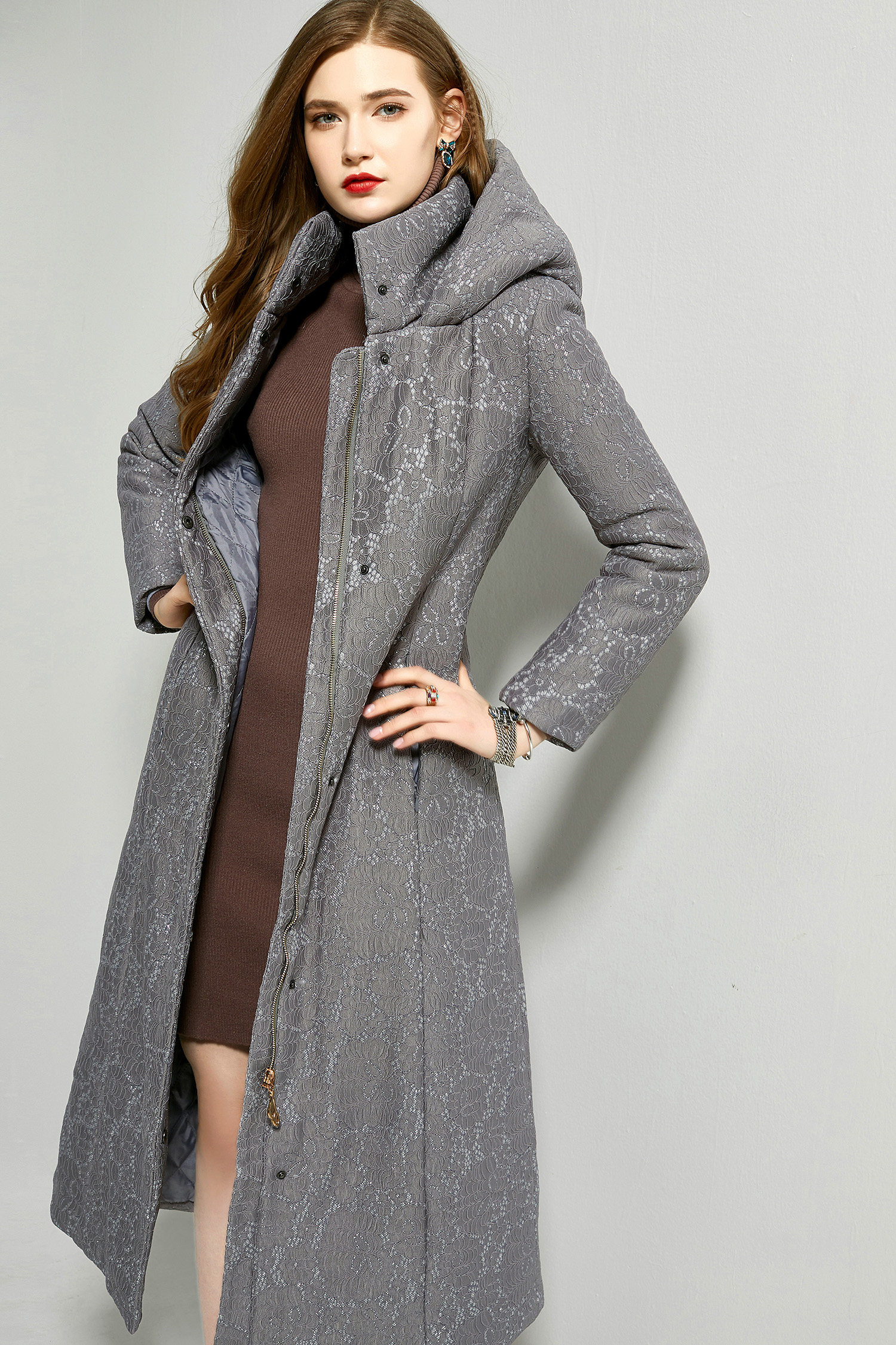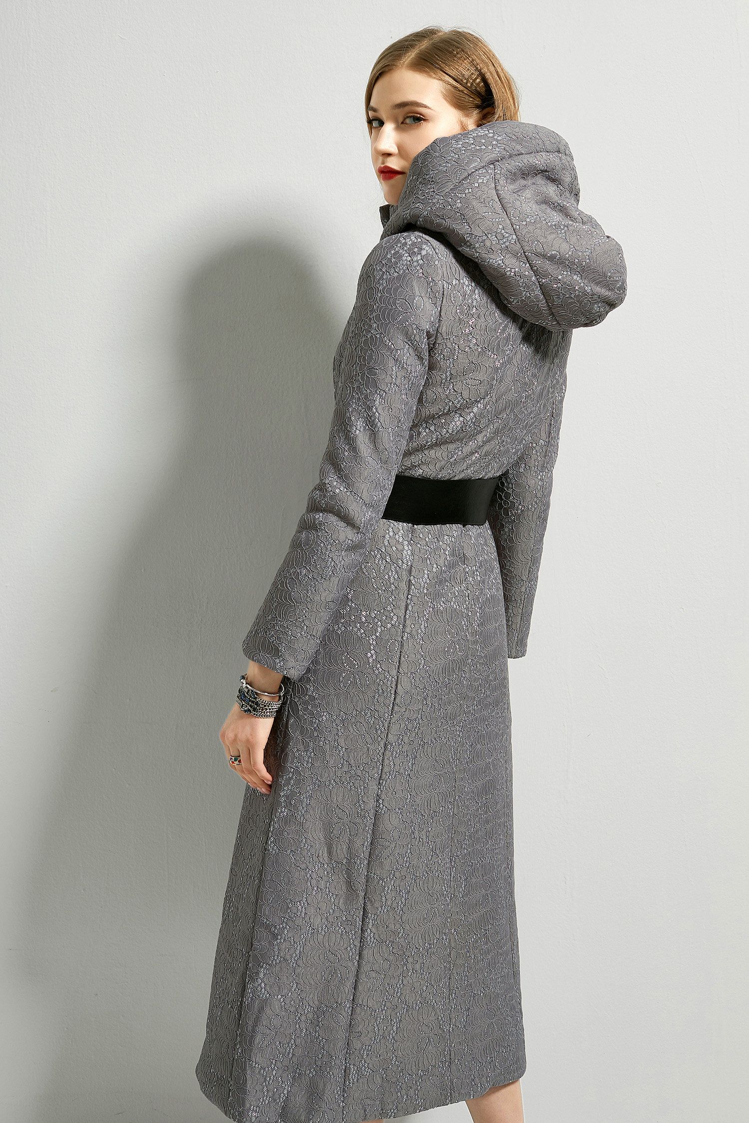 Ветрозащитная толстовка с капюшоном, длинный кружевной пуховик, средней длины, большой размер