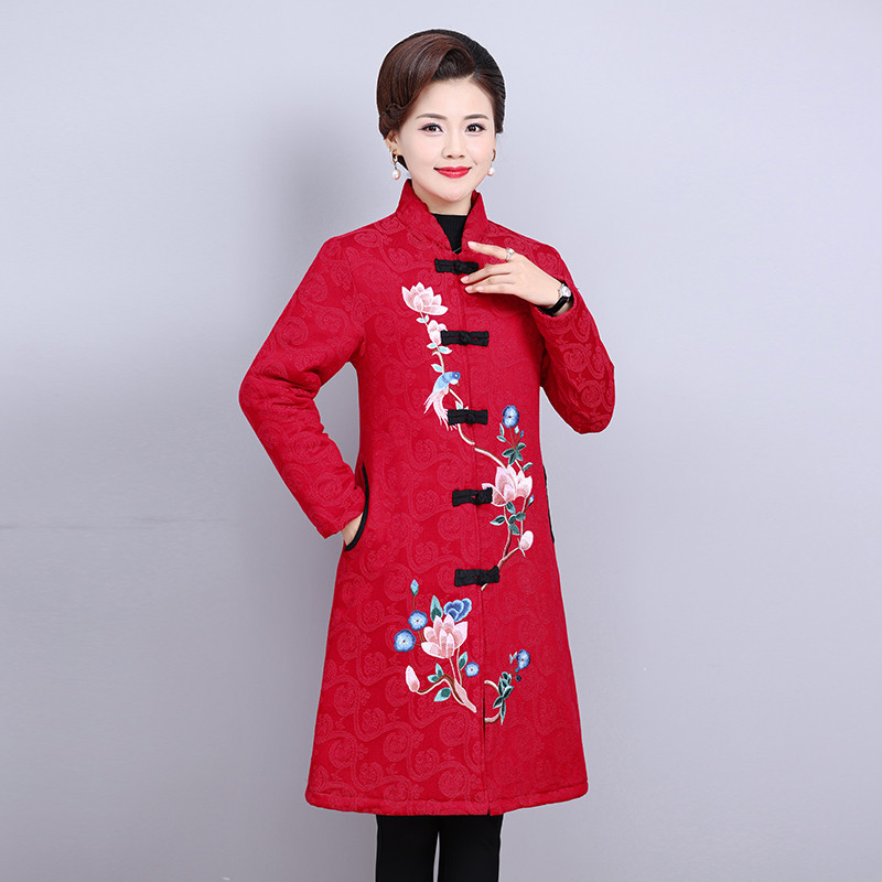 Демисезонный длинный пуховик, куртка для матери, для среднего возраста, средней длины, 40 лет, китайский стиль