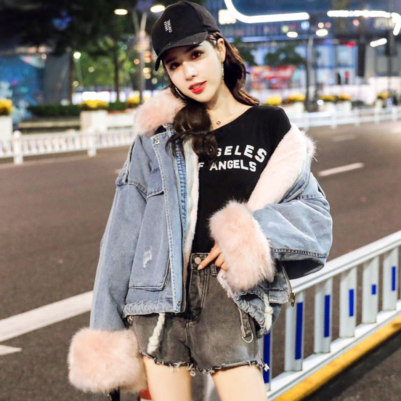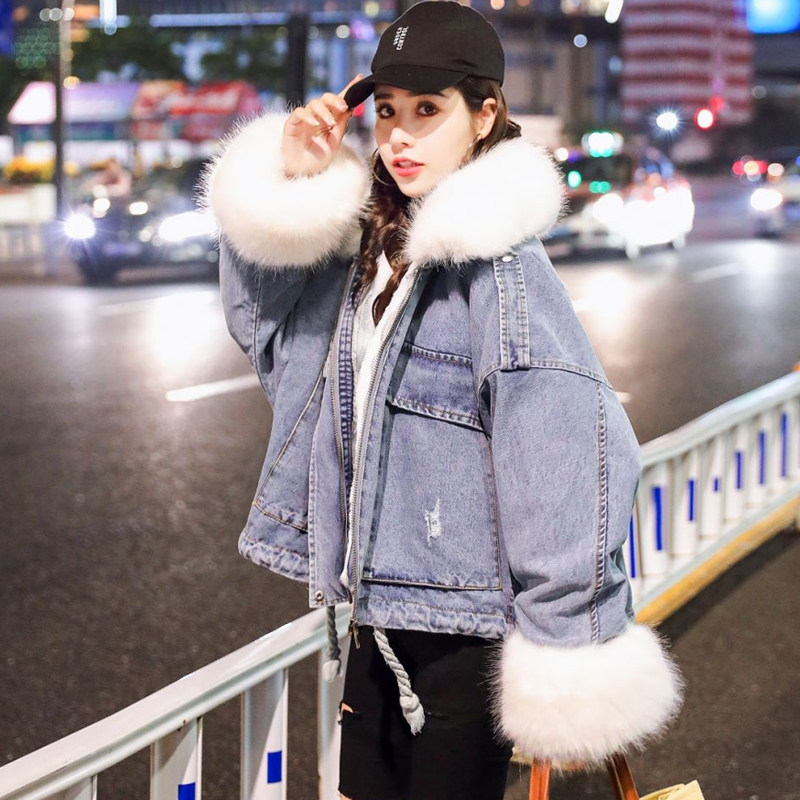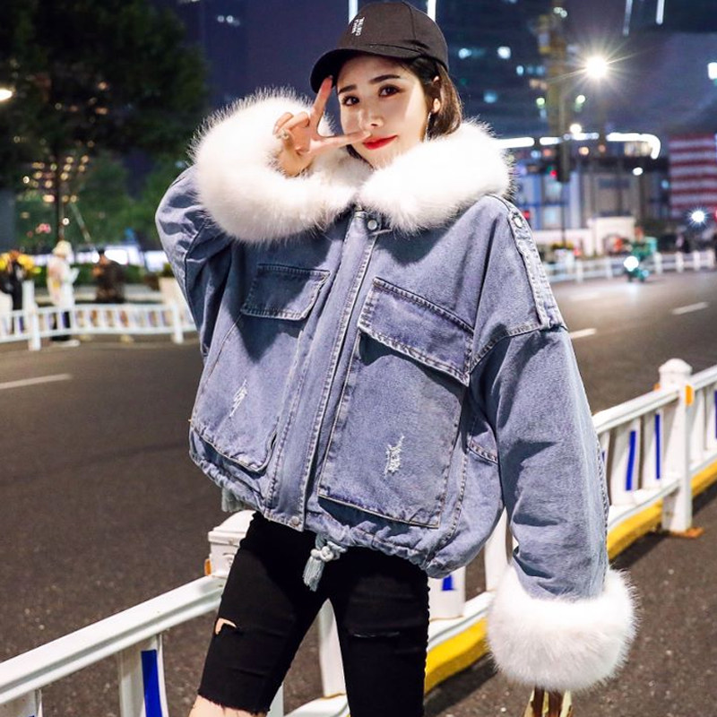 Tide, джинсовый утепленный короткий пуховик, зимняя куртка, 2019, в корейском стиле