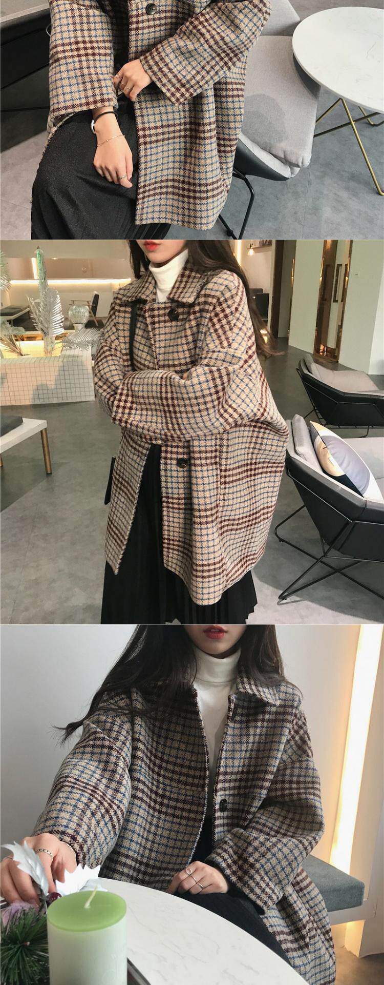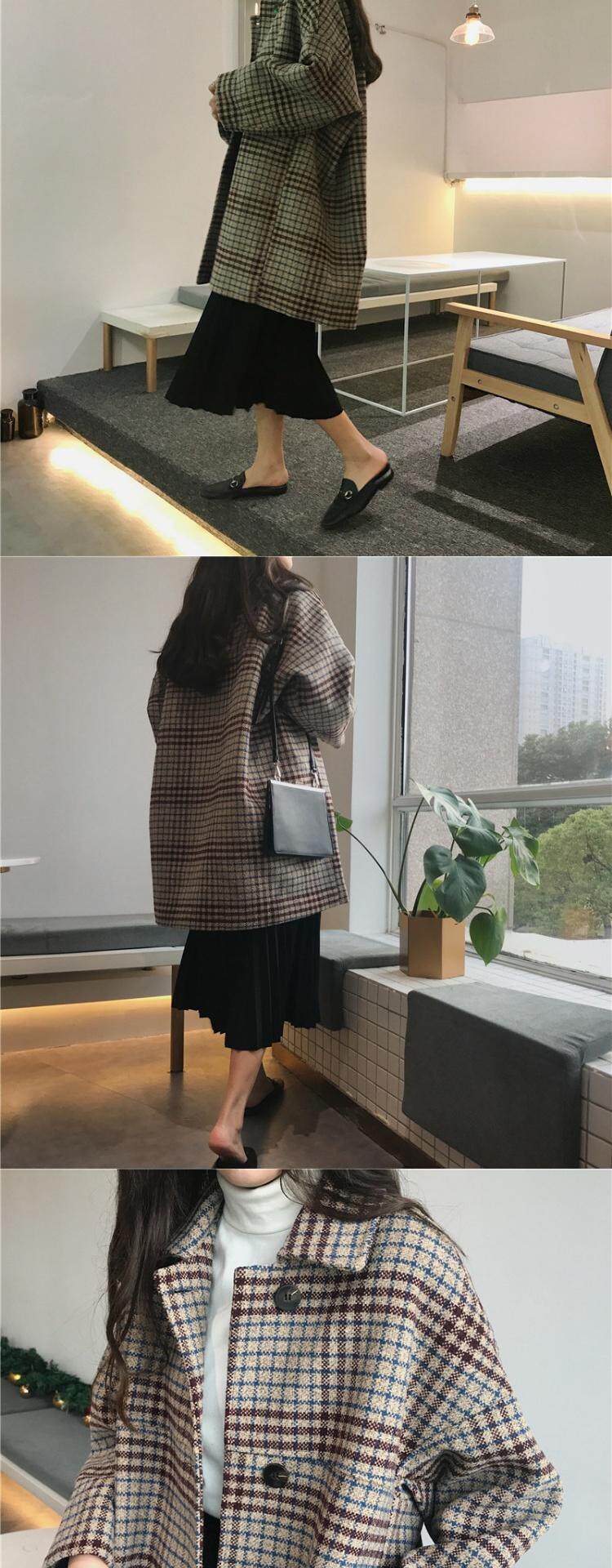 Шерстяное демисезонное пальто, стеганый длинный ретро лонгслив, куртка, 2020, в корейском стиле, увеличенная толщина, средней длины