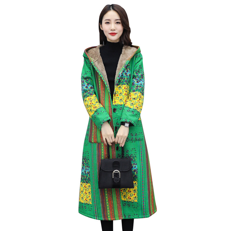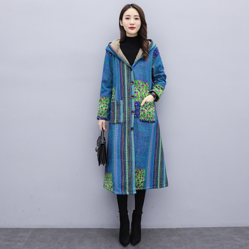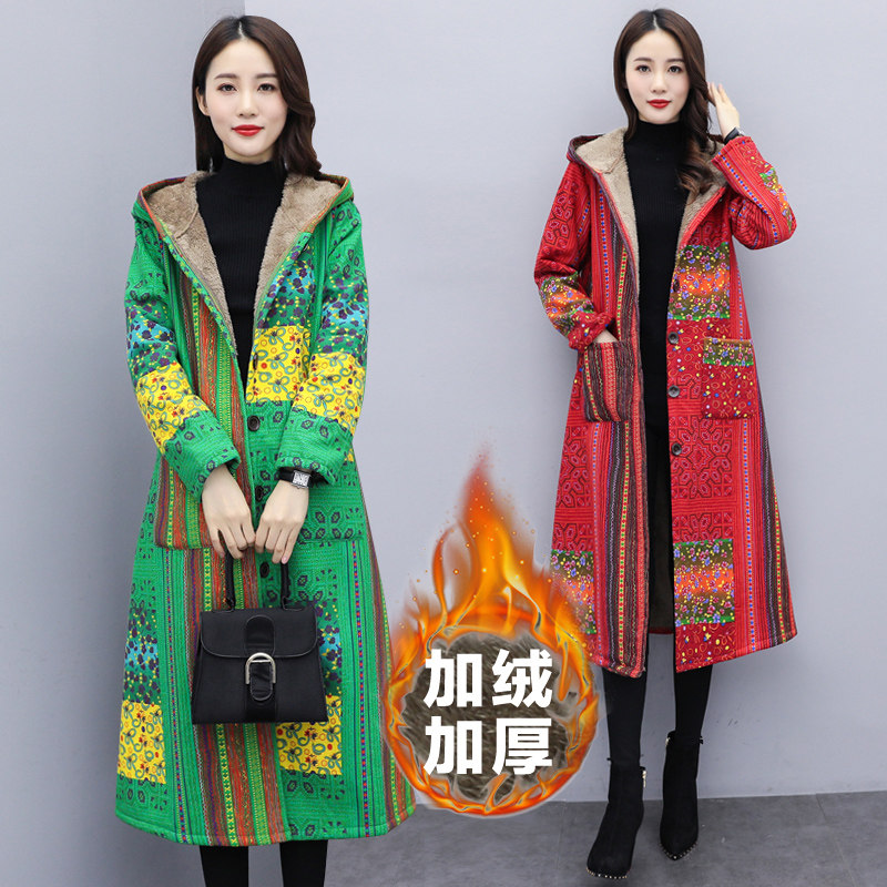 Зимняя этническая ретро флисовая куртка, стеганая удерживающая тепло длинная толстовка с капюшоном, 2020, этнический стиль, большой размер, средней длины, городской стиль